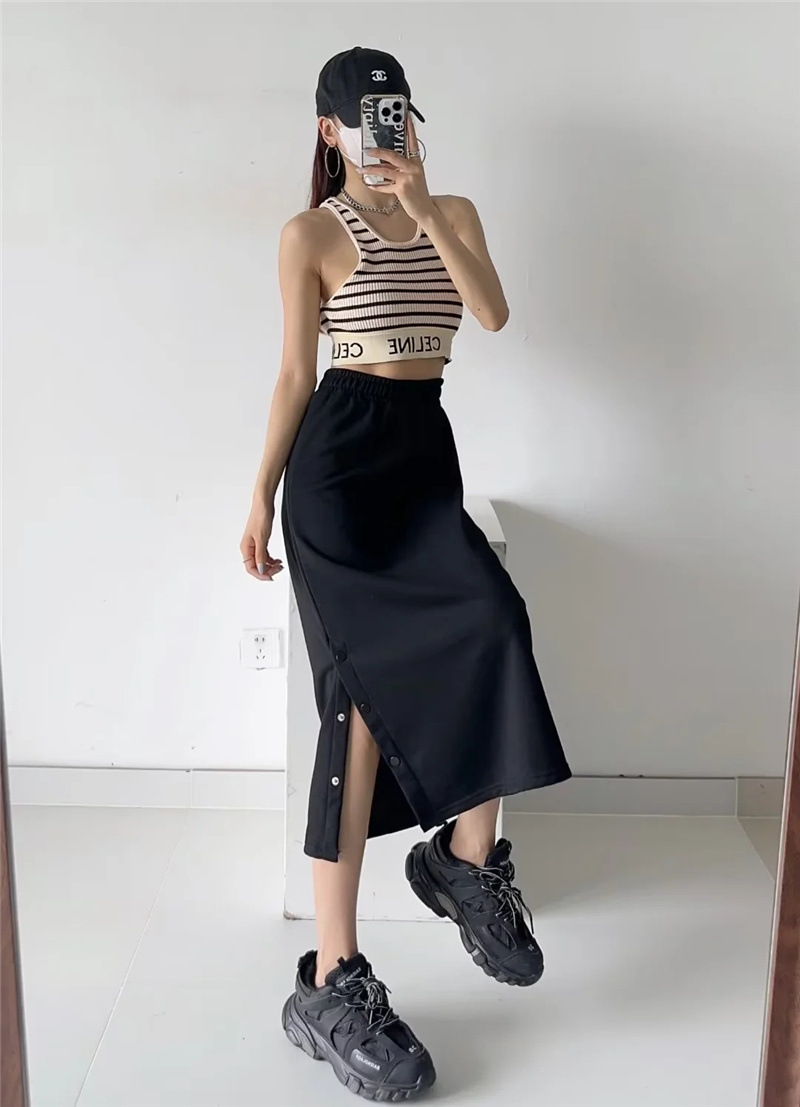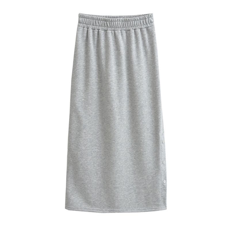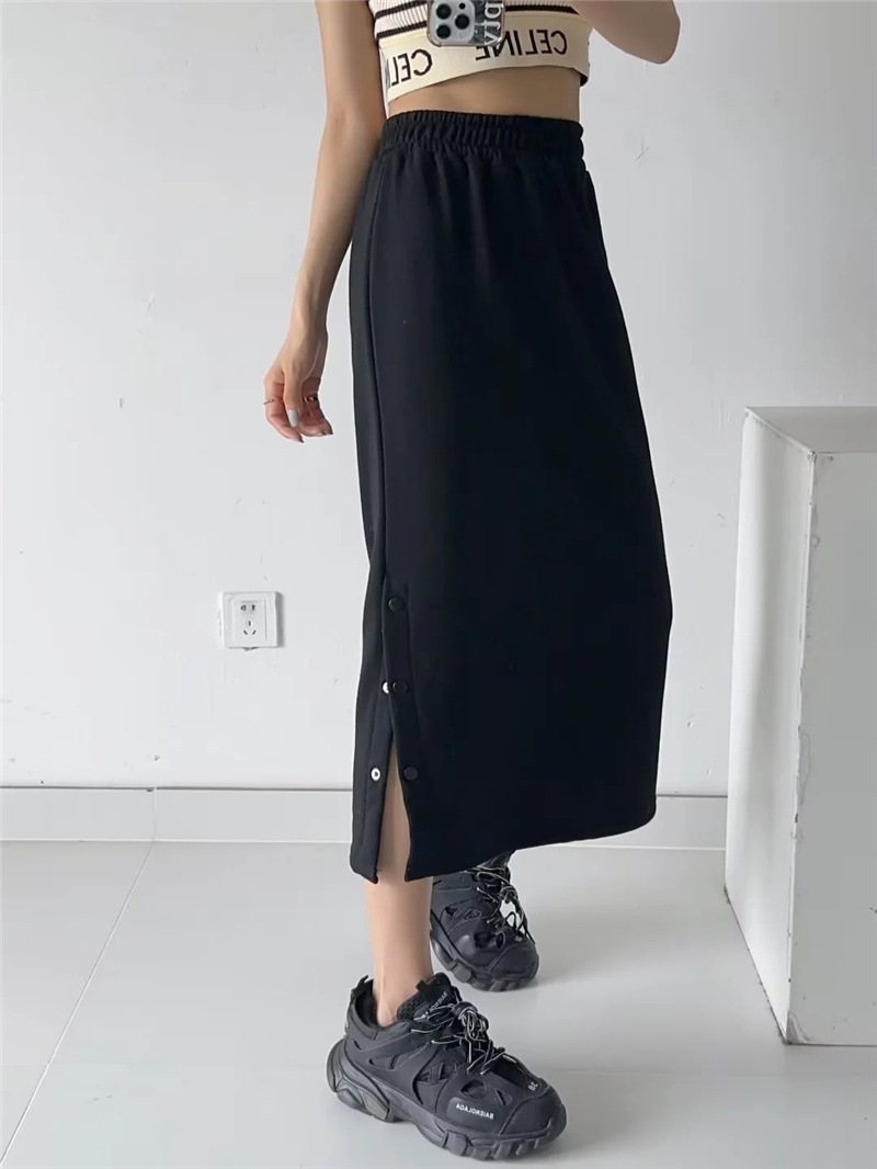 디자인 센스 사이드 슬릿 버튼 스커트 가을 새로운 스타일 느슨한 허리 엉덩이 모든 매치 우아한 롱 스커트 웨이 스커트스토어 가기