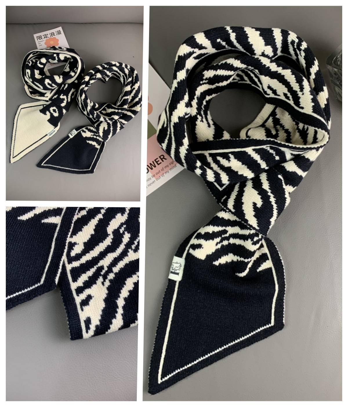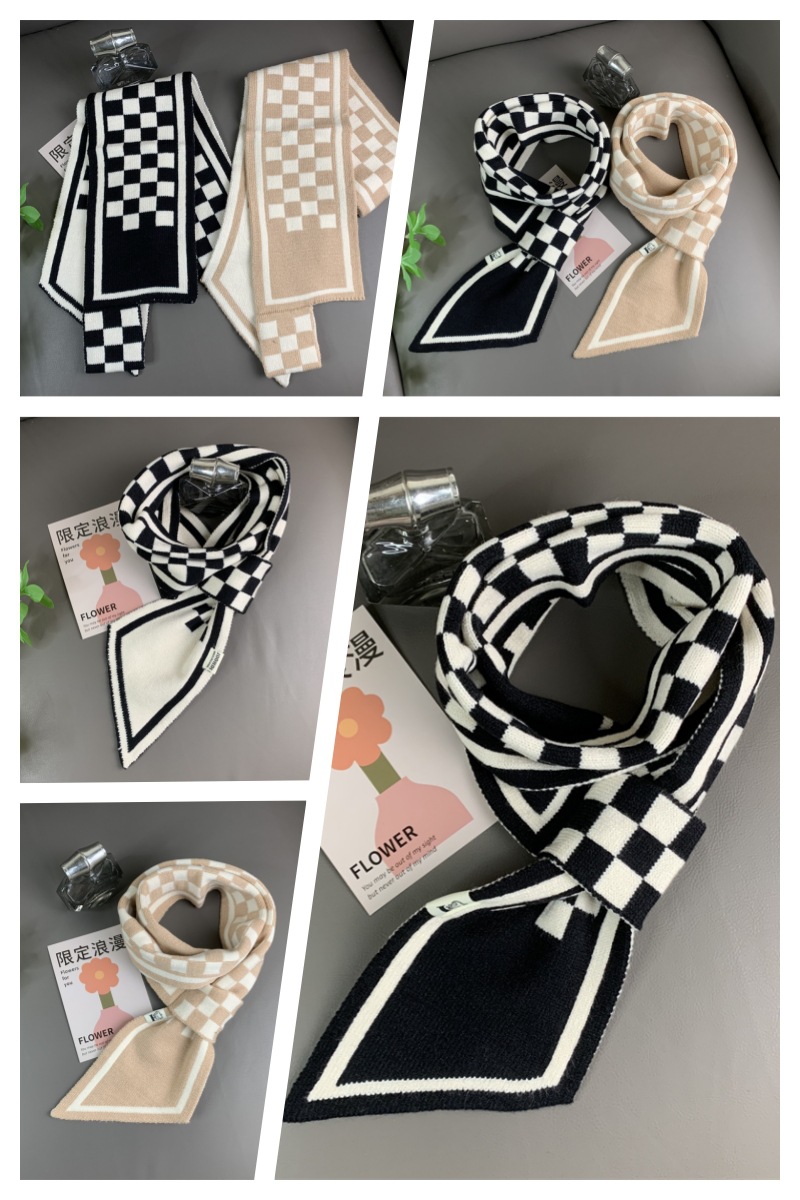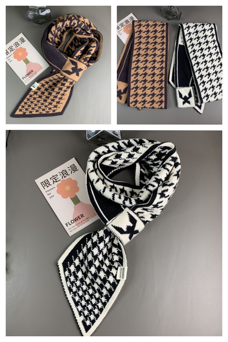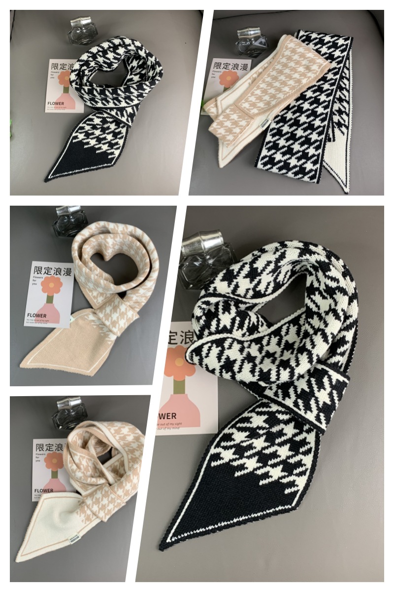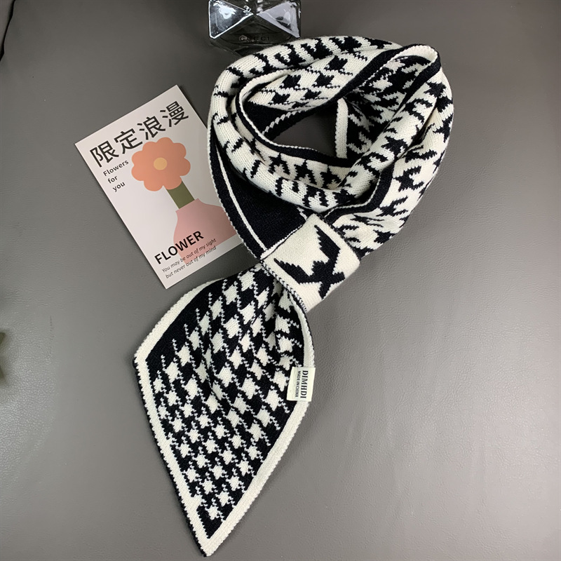 라이브 폭발 한국 스타일 Houndstooth 니트 작은 스카프 여자의 겨울 캐시미어 작은 스카프 선물 따뜻한 스카프