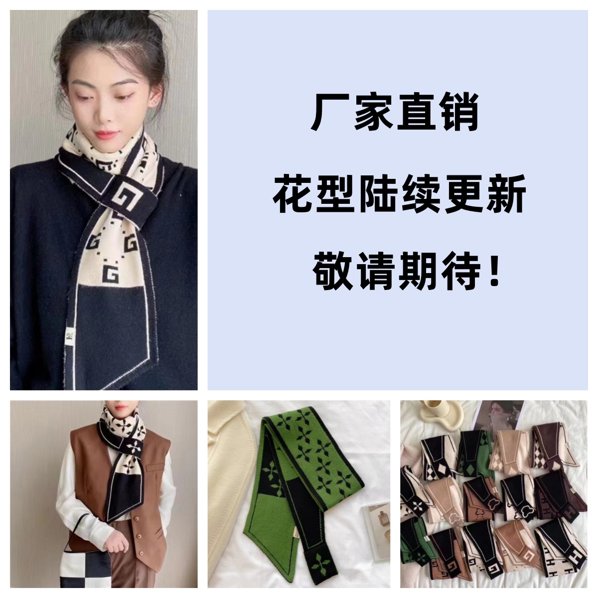 라이브 폭발 한국 스타일 Houndstooth 니트 작은 스카프 여자의 겨울 캐시미어 작은 스카프 선물 따뜻한 스카프스토어 가기