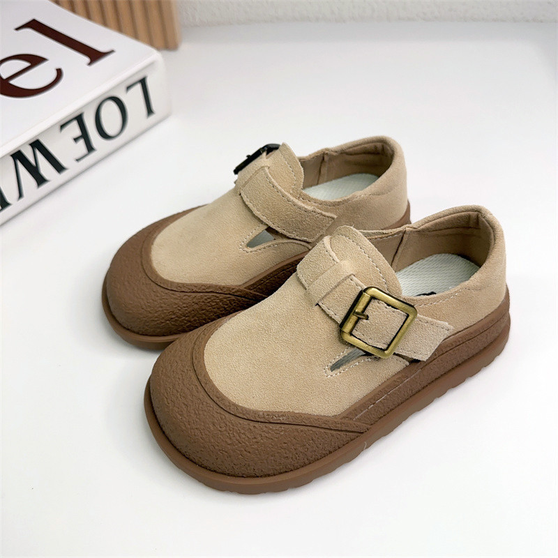 레트로 어린이 캐주얼 신발 2021 봄 새로운 큰 머리 추악한 귀여운 소년과 소녀 가죽 신발 단일 신발 누벅 가죽 트렌드