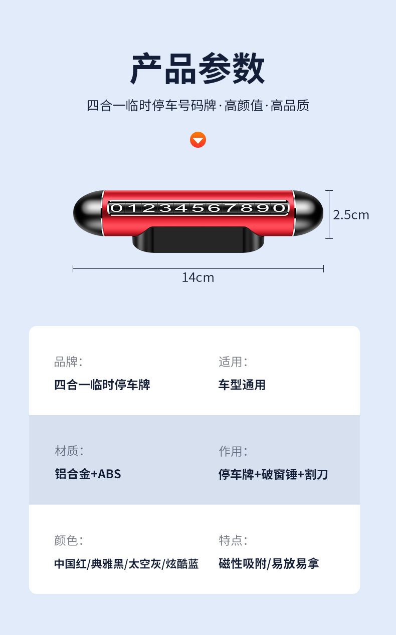 차량탑재 임시 주차 번호판 쓰리인원 자기 흡입 자동차 안전 망치 주차 플레이트 윈도우 브레이커 수중 유리창 깨기