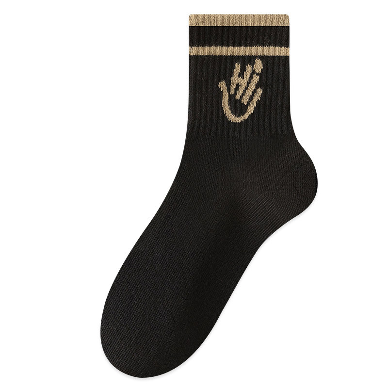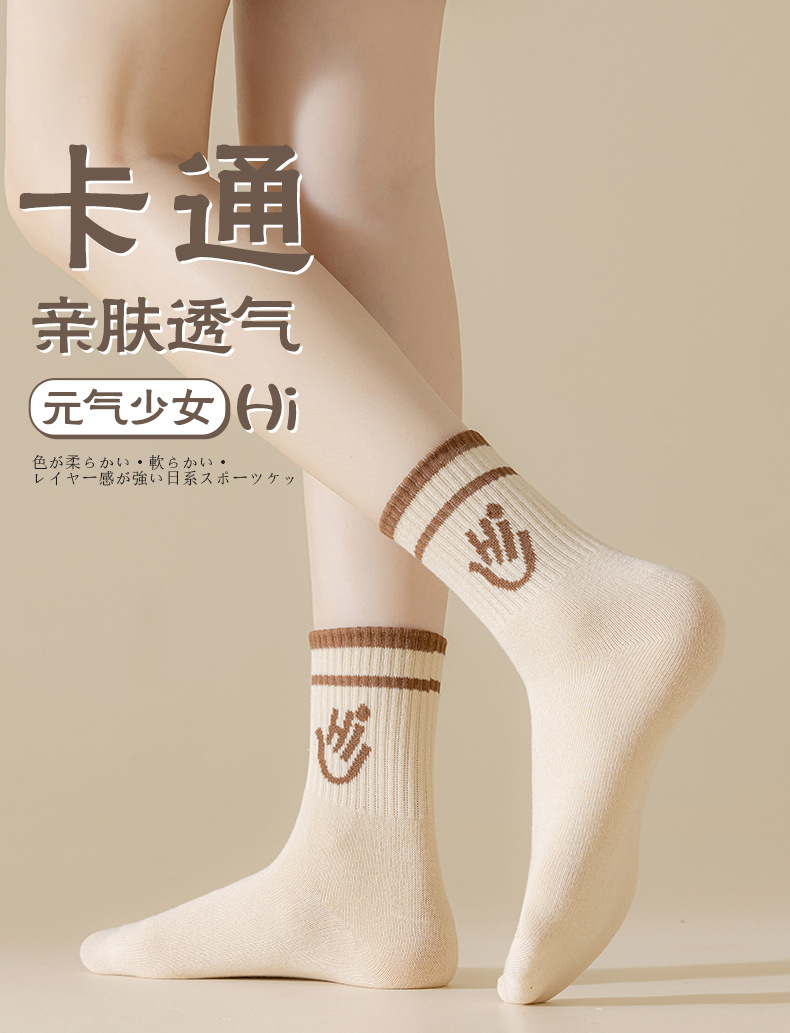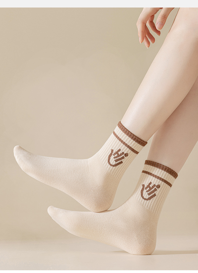 봄과 가을 새로운 편지 미드 튜브 양말 여성 양말 스마일 팜 양말 뼈없는 스포츠 양말 Zhuji 양말 면 양말