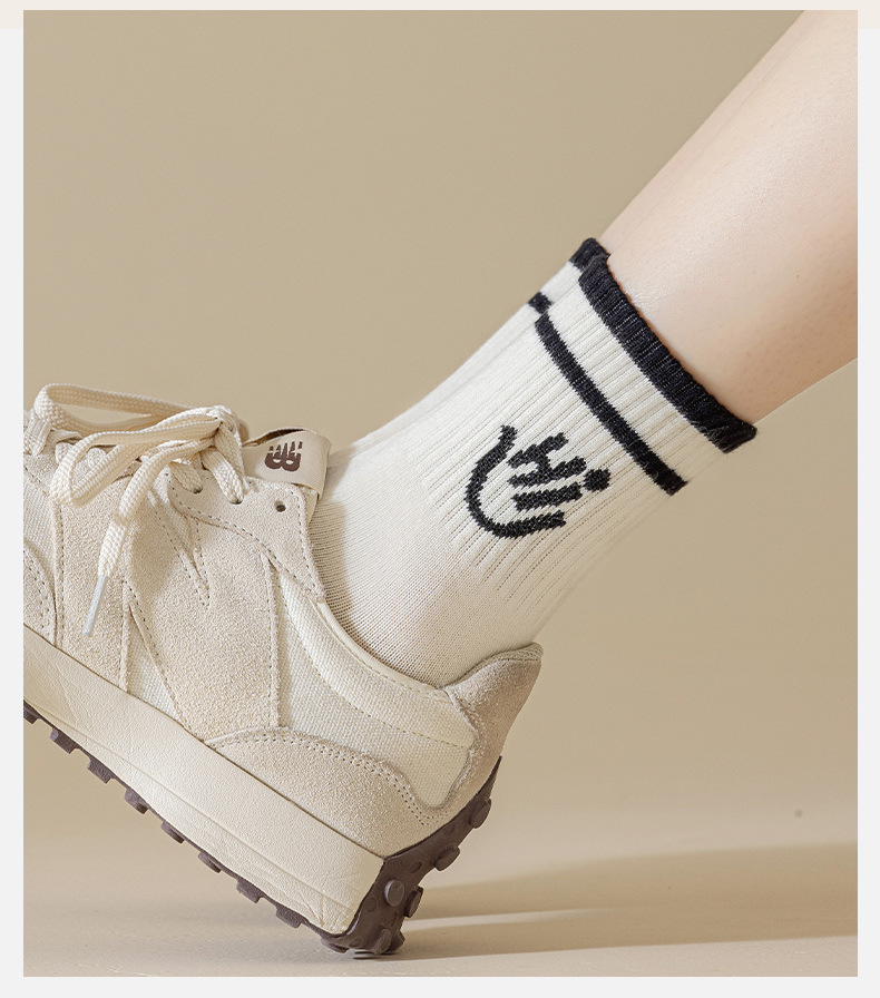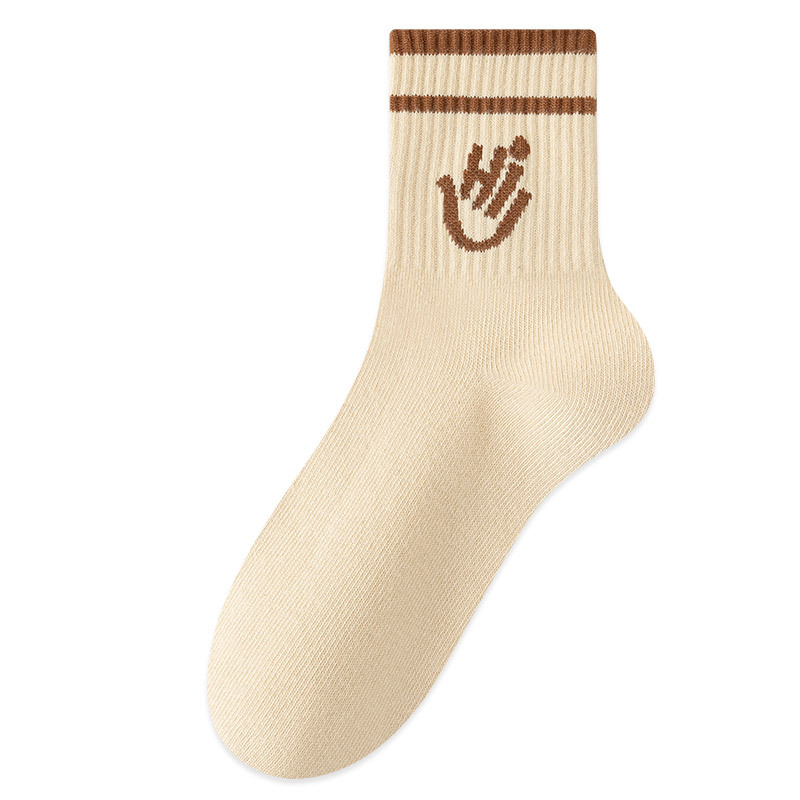 봄과 가을 새로운 편지 미드 튜브 양말 여성 양말 스마일 팜 양말 뼈없는 스포츠 양말 Zhuji 양말 면 양말스토어 가기