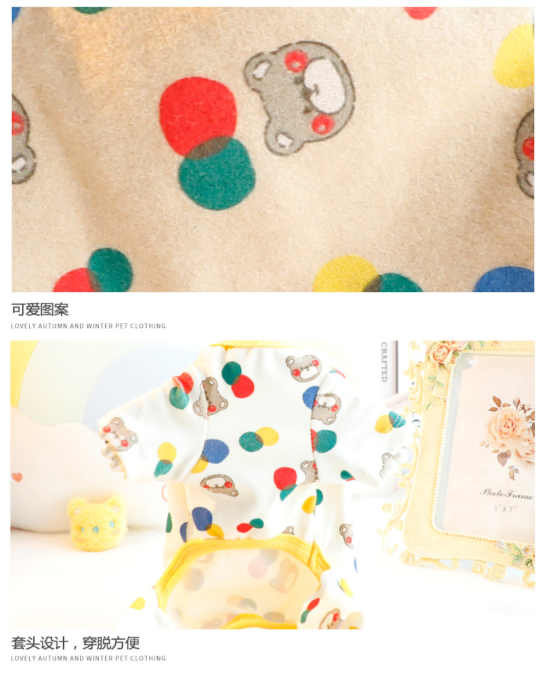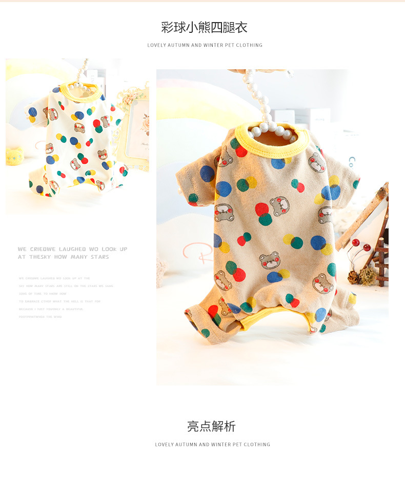 개 옷 가을과 겨울 옷 기본 셔츠 컬러 볼 베어 네 발 가정 옷 잠옷 작은 개 테디 애완 동물 5362