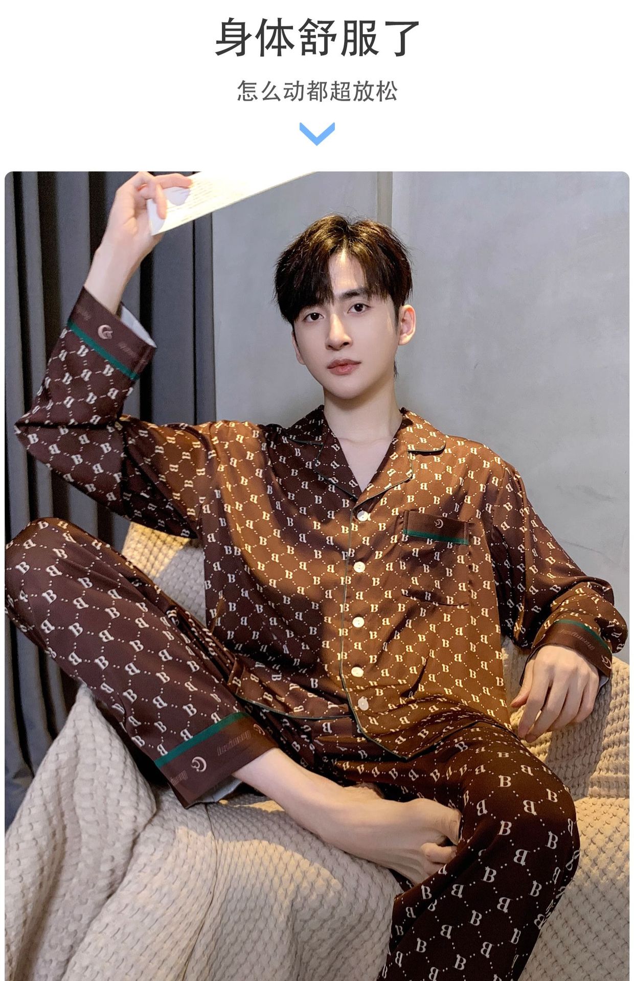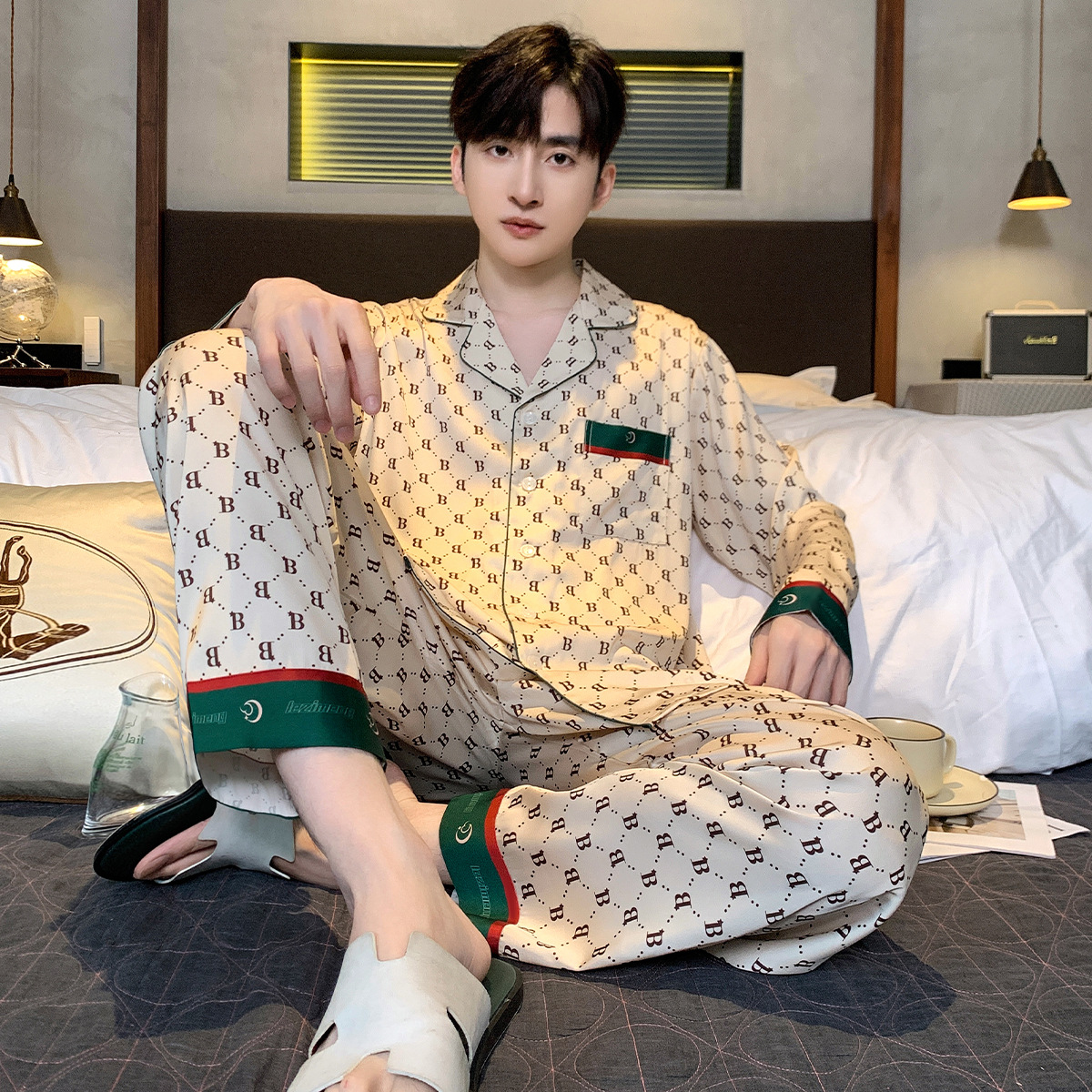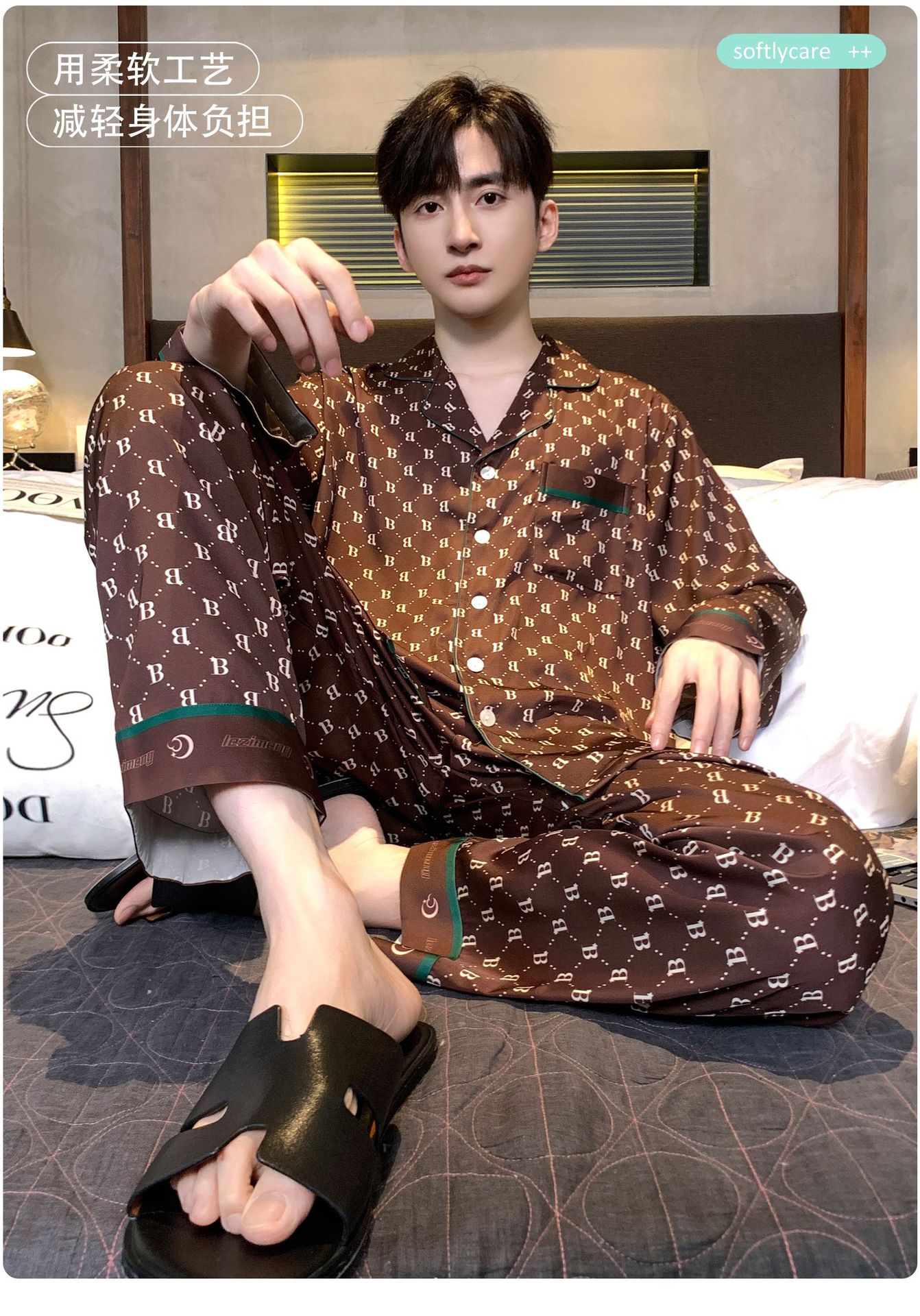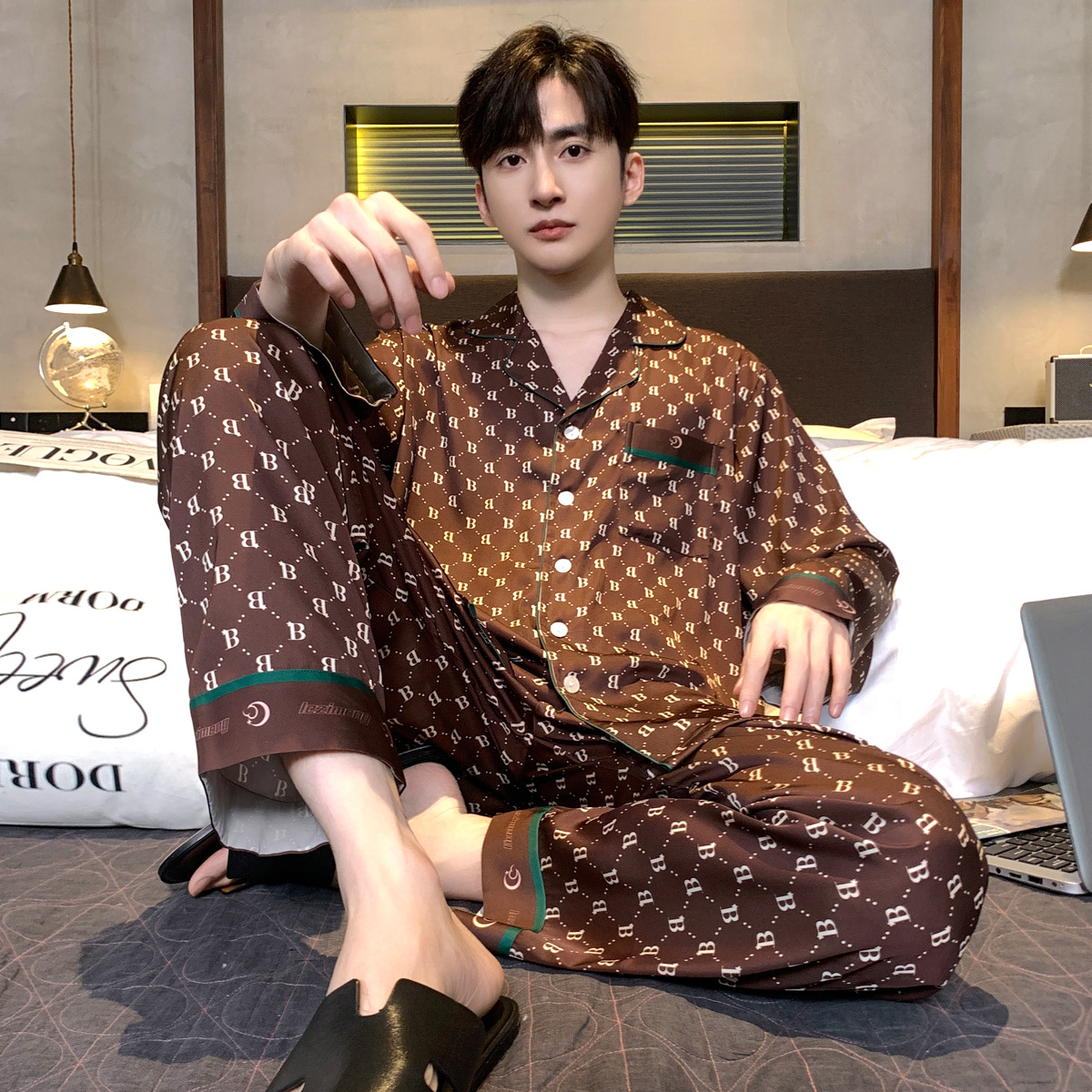 잠옷 남성용 아이스 실크 긴 소매 봄과 가을 여름 얇은 인공 실크 홈웨어 남성용 세트 2023 뉴스토어 가기