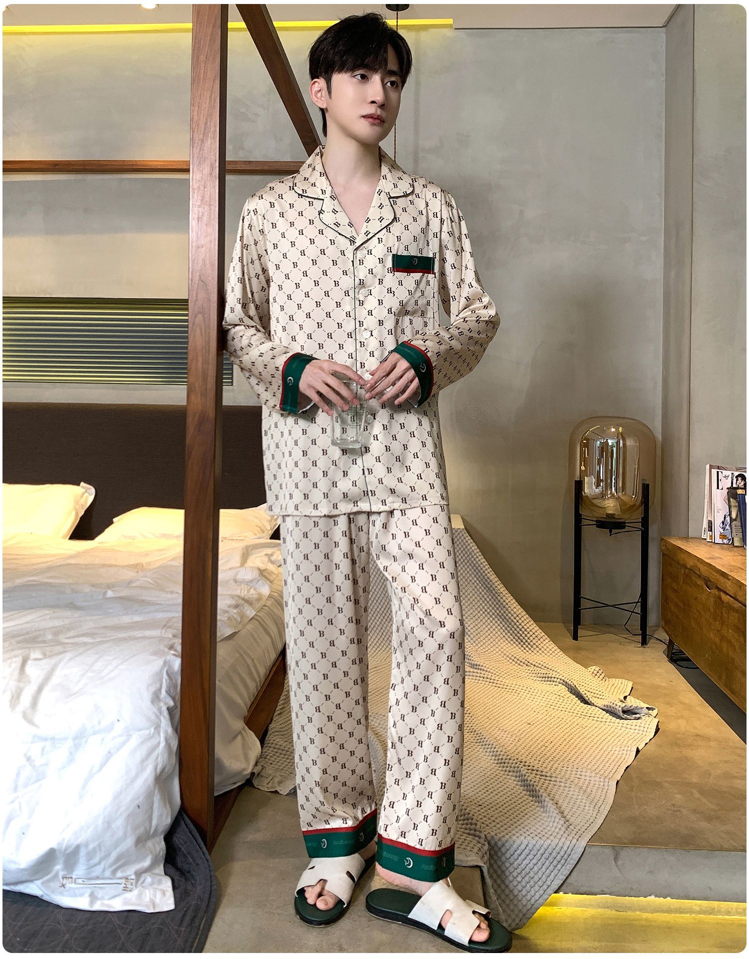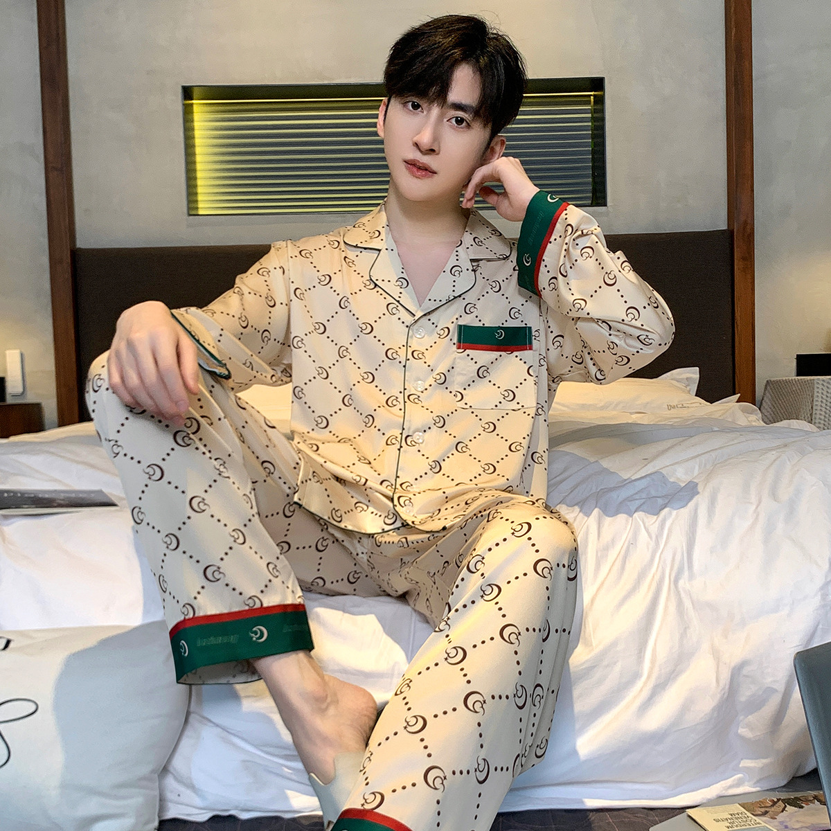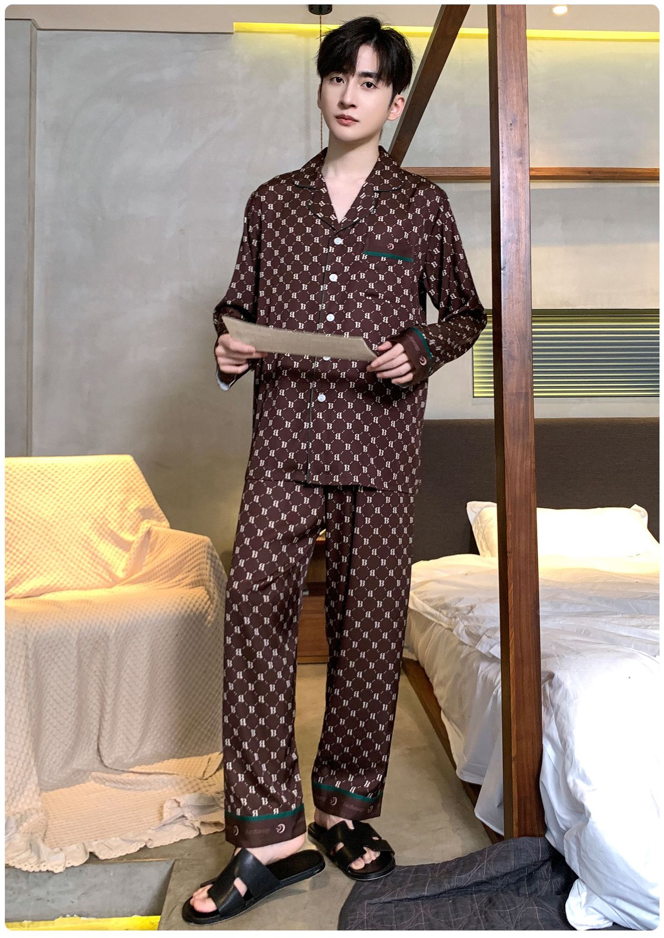 잠옷 남성용 아이스 실크 긴 소매 봄과 가을 여름 얇은 인공 실크 홈웨어 남성용 세트 2023 뉴스토어 가기