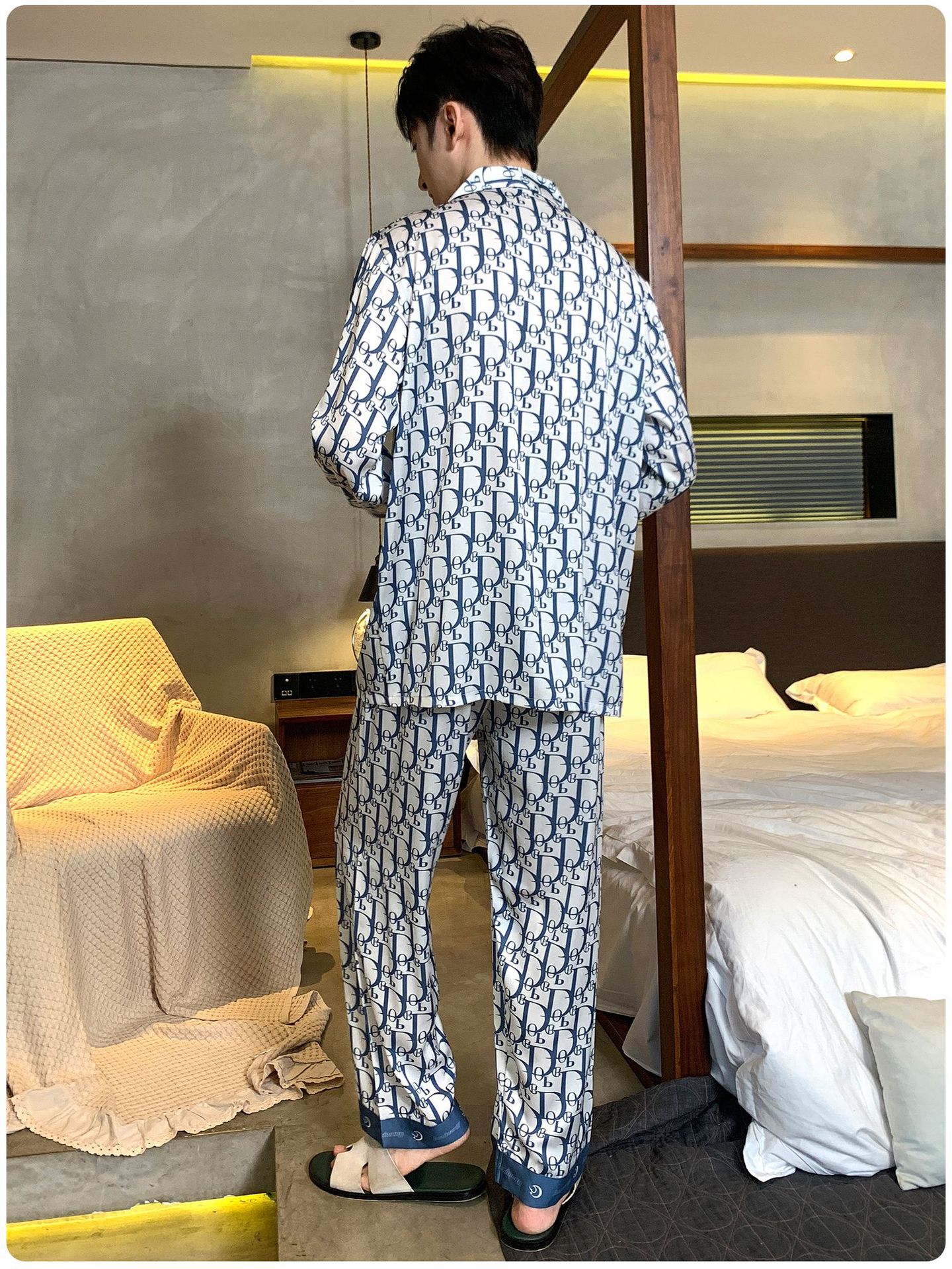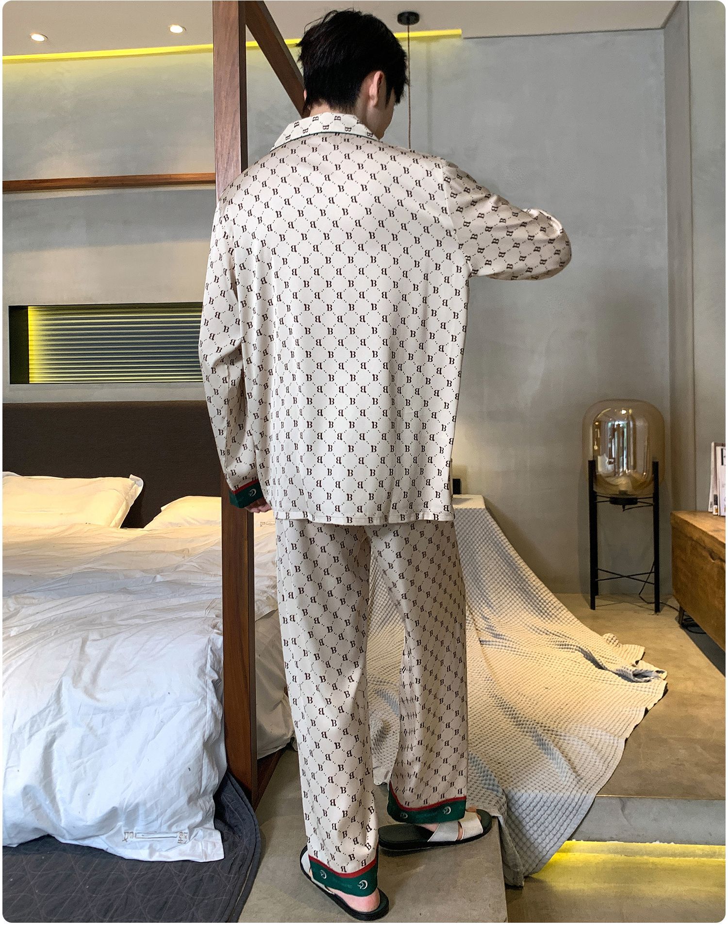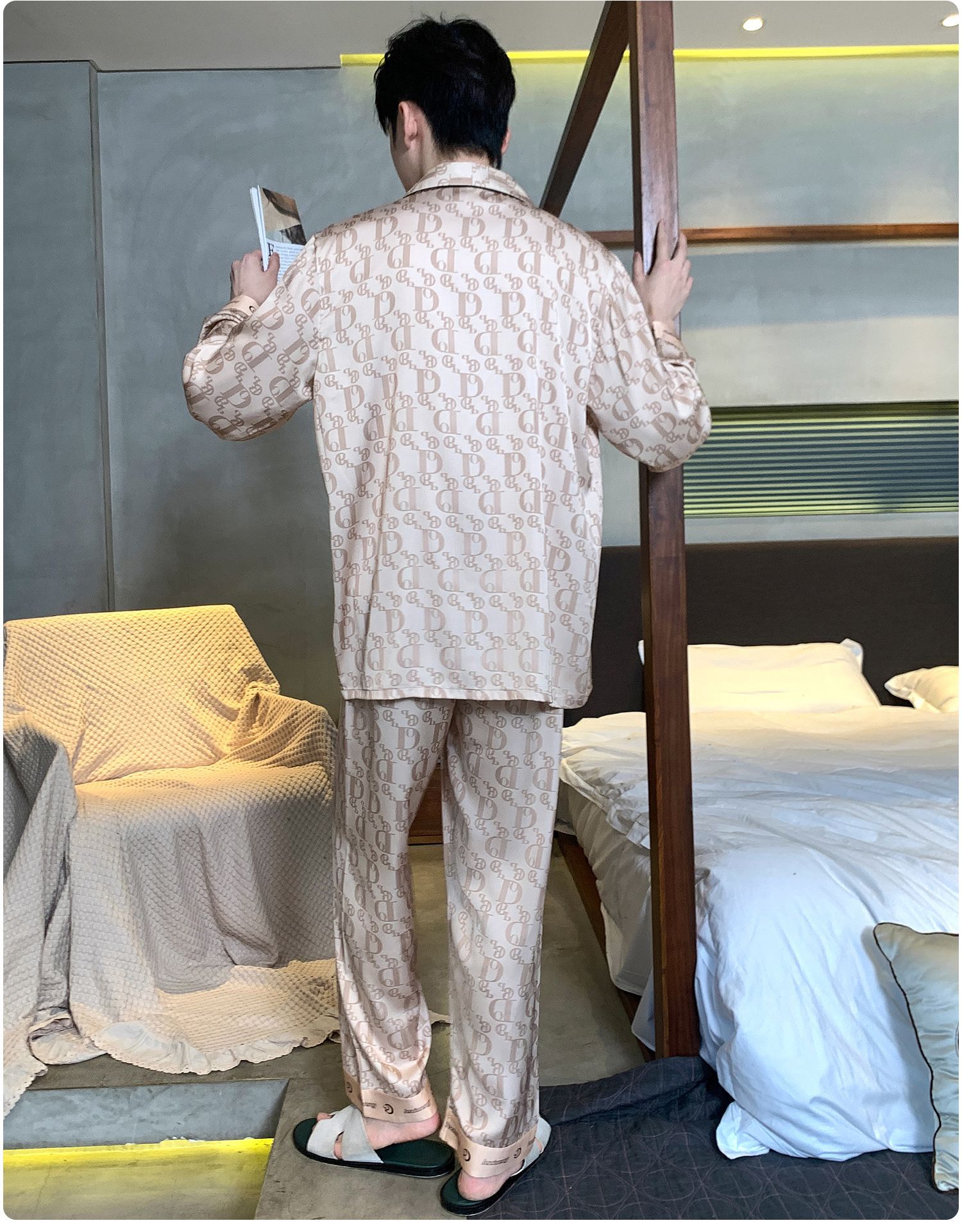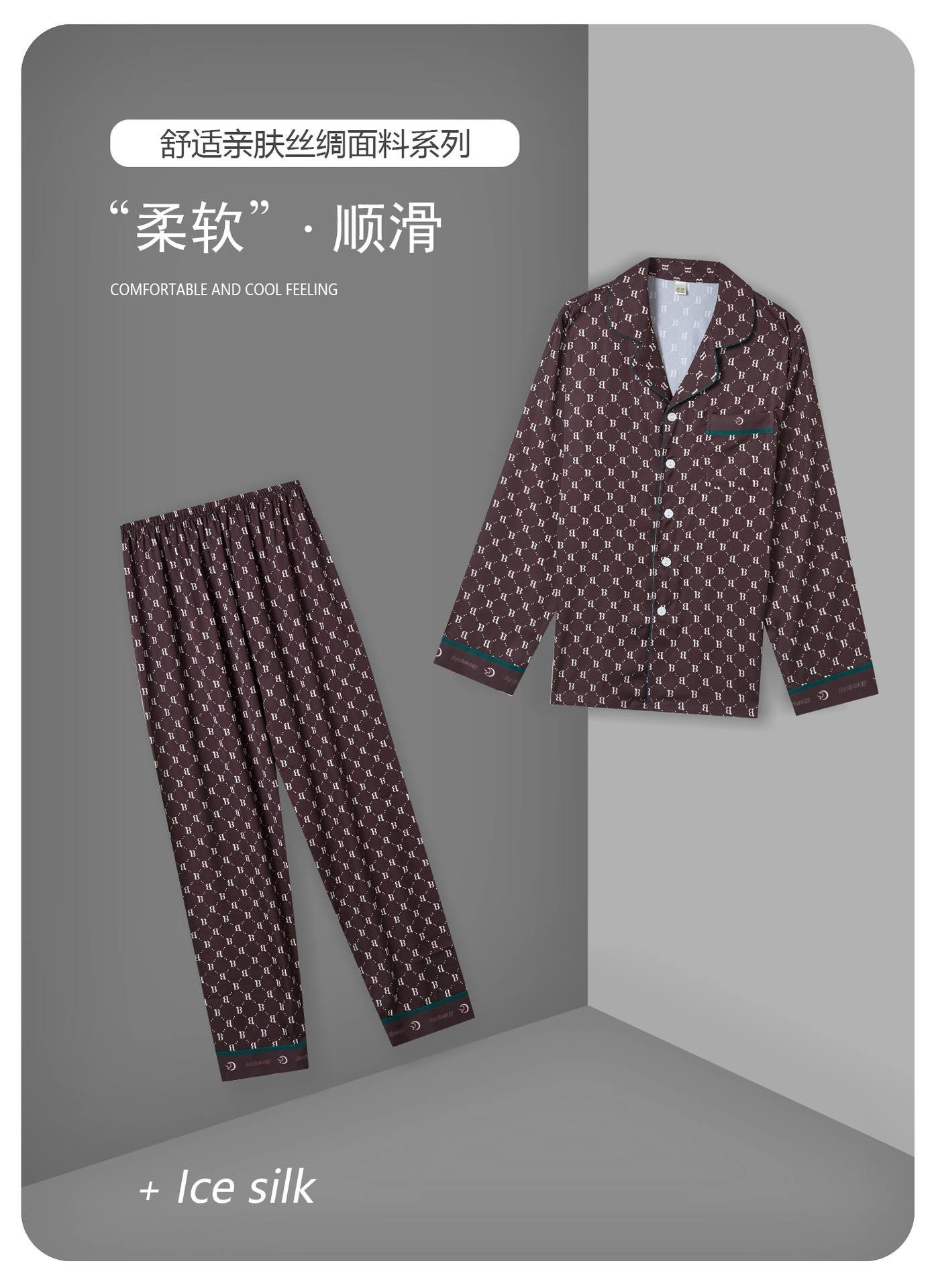 잠옷 남성용 아이스 실크 긴 소매 봄과 가을 여름 얇은 인공 실크 홈웨어 남성용 세트 2023 뉴스토어 가기