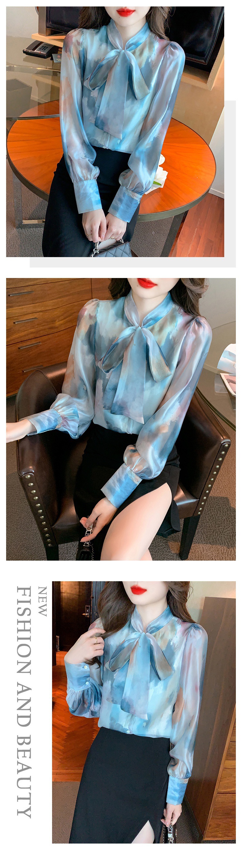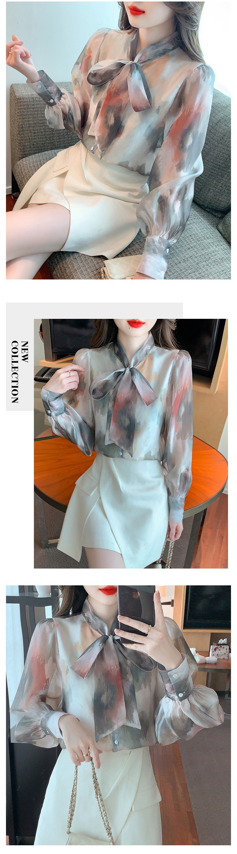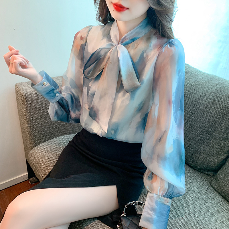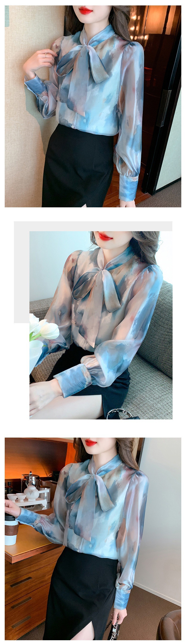 리얼 샷 플로럴 쉬폰 셔츠 여성용 긴팔 2023 새로운 우아한 패션 탑 나비 셔츠스토어 가기