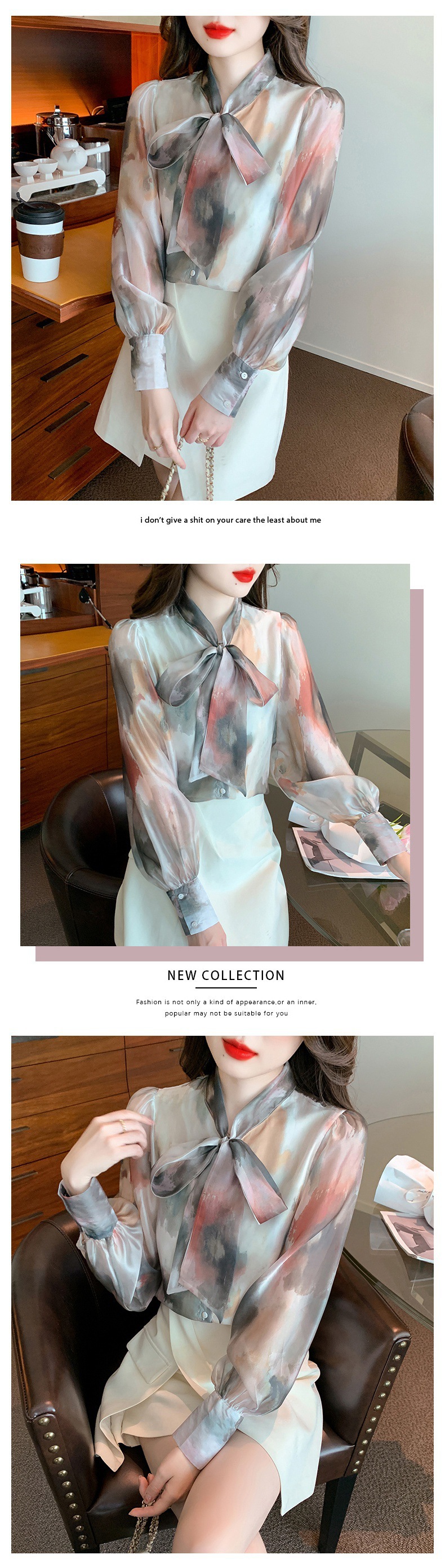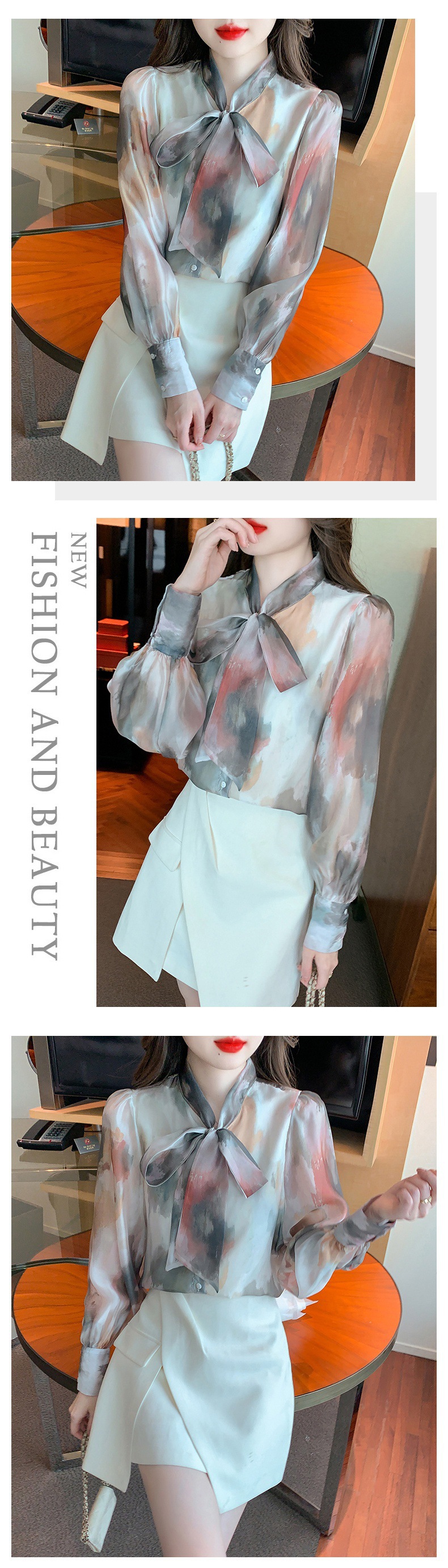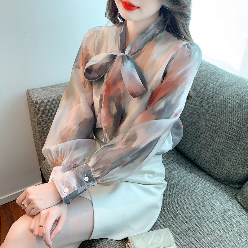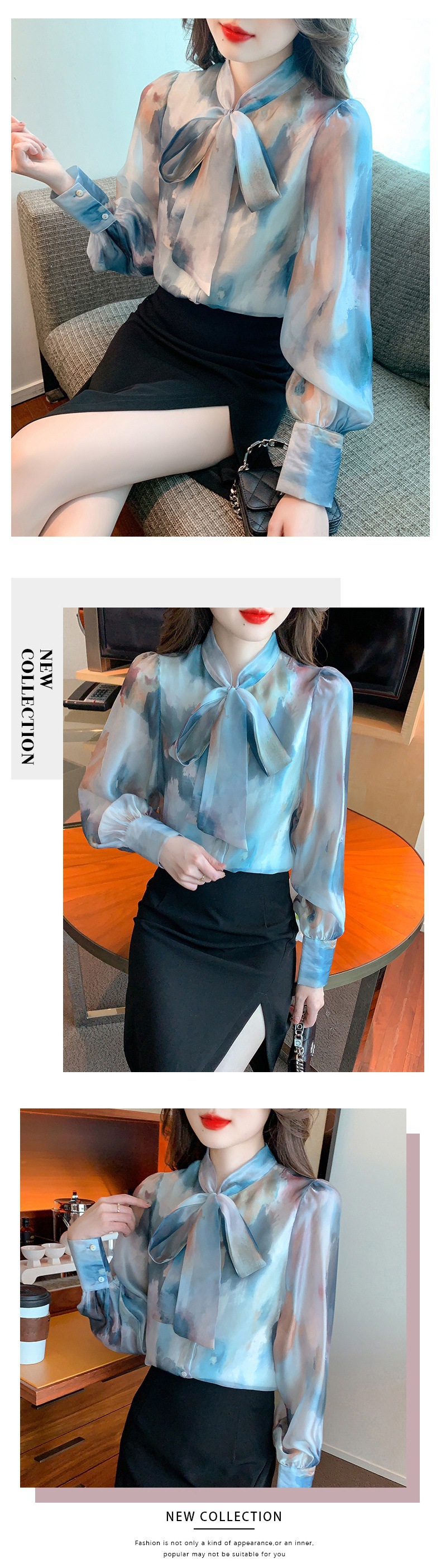 리얼 샷 플로럴 쉬폰 셔츠 여성용 긴팔 2023 새로운 우아한 패션 탑 나비 셔츠스토어 가기