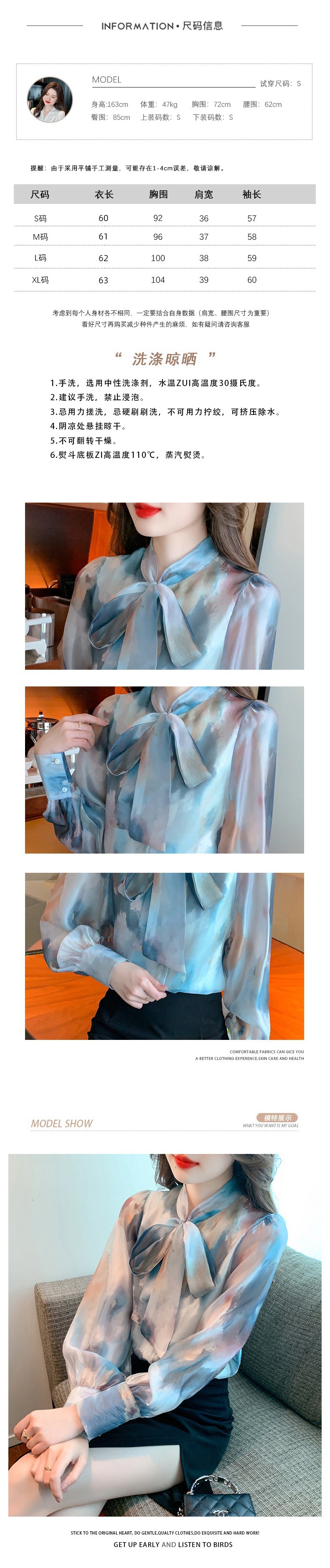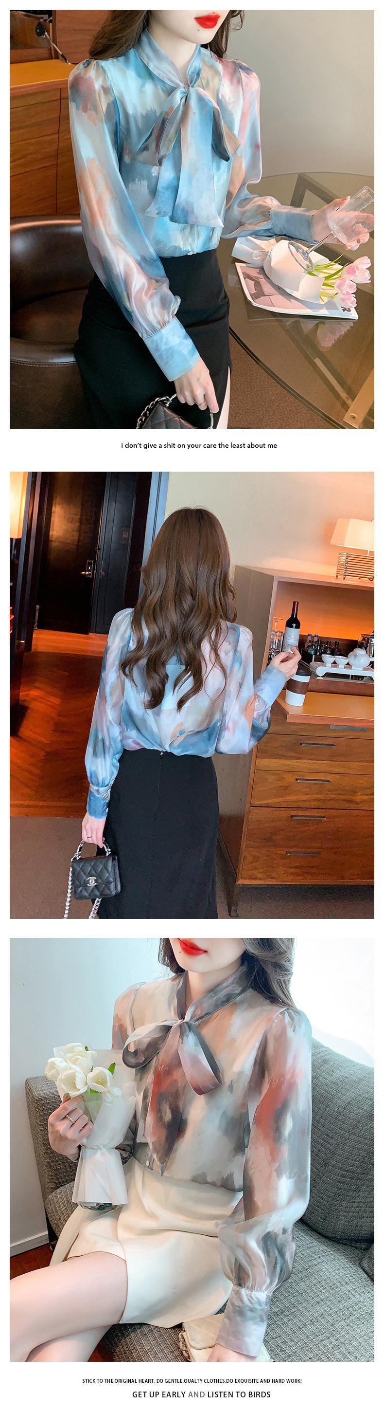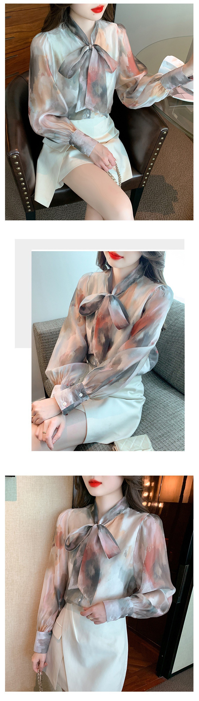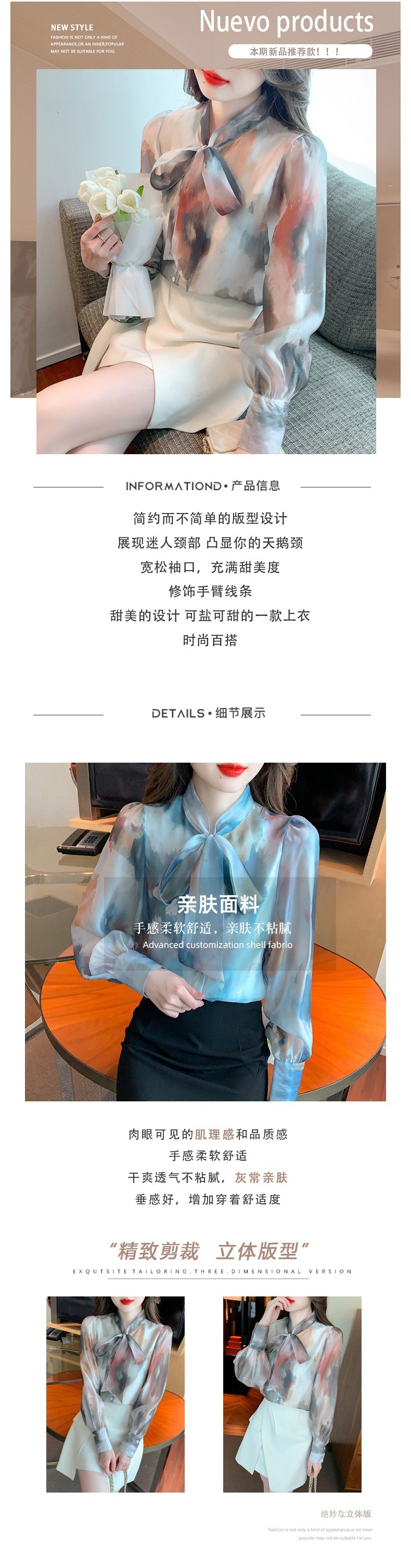 리얼 샷 플로럴 쉬폰 셔츠 여성용 긴팔 2023 새로운 우아한 패션 탑 나비 셔츠스토어 가기