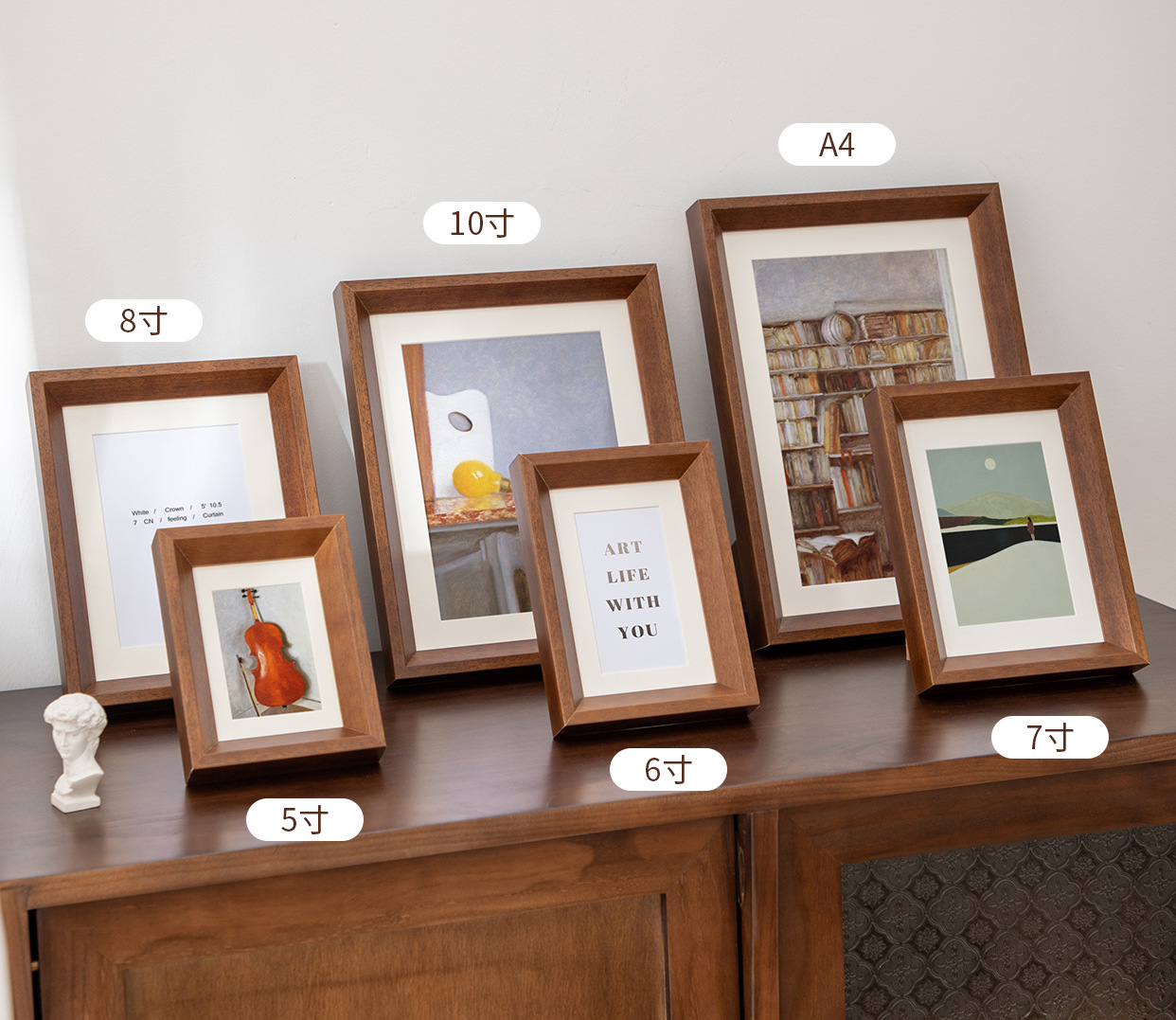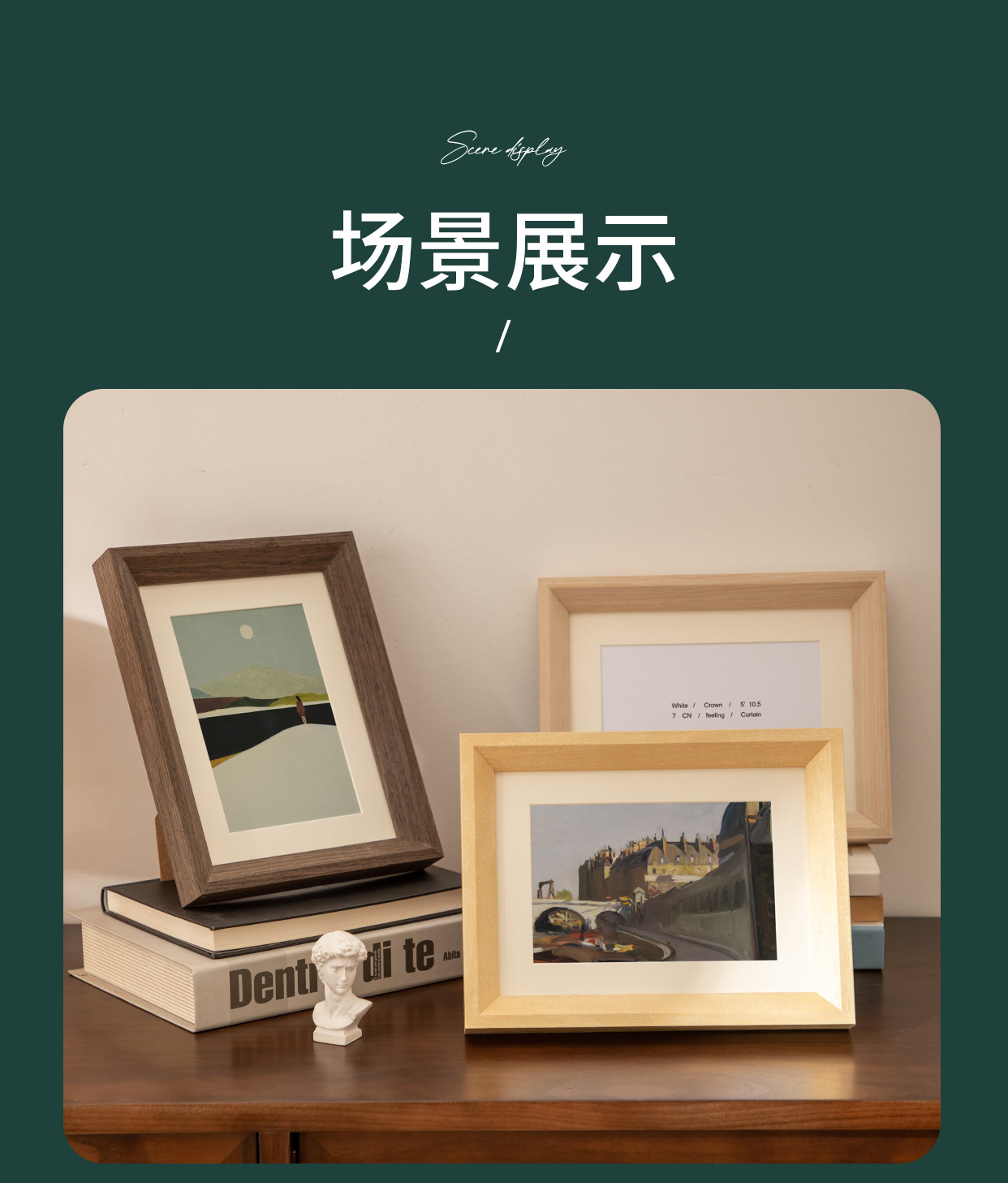 나무 사진 프레임 MDF 밀도 보드 교수형 벽 테이블 도매 7inch 8inch A4 비즈니스 라이센스 프레임 중국어 서예 프레임스토어 가기