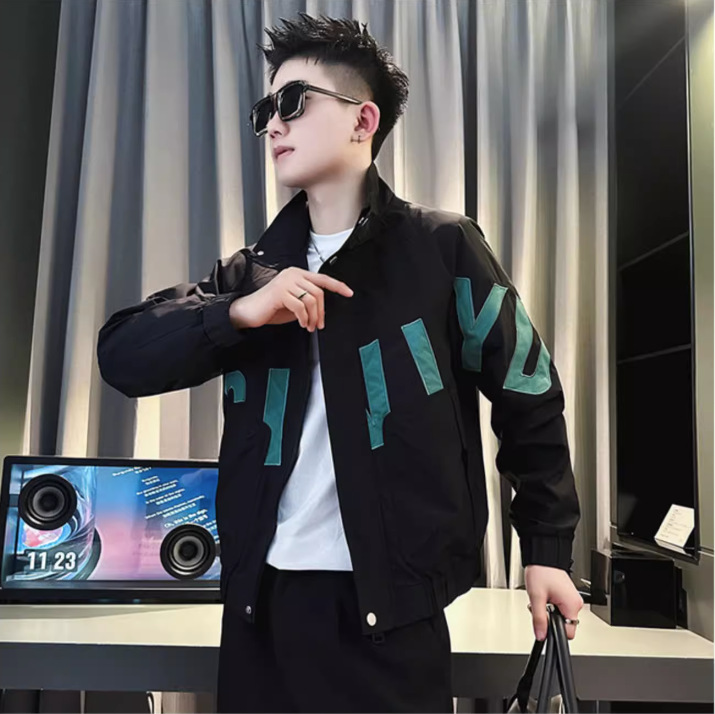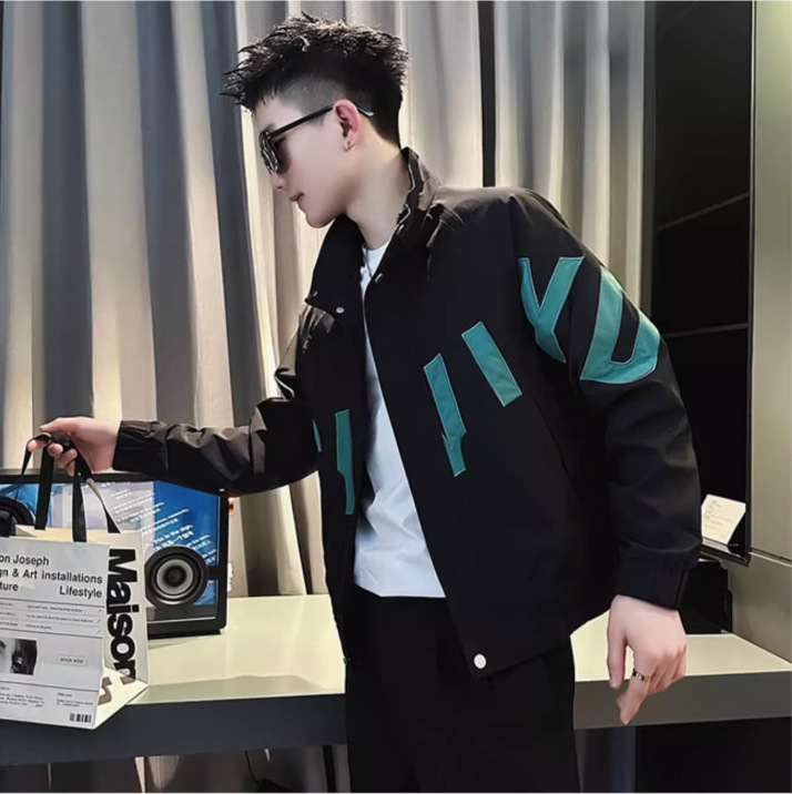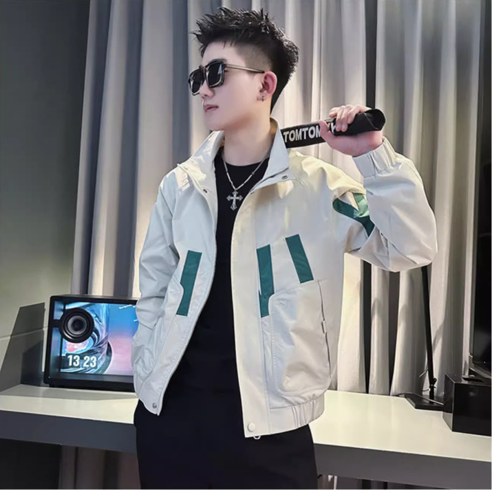 남자의 Ruffian 잘 생긴 코트 봄과 가을 Ruffian 잘 생긴 코트 남자 의류 2023 새로운 패션 브랜드 대비 색상 칼라 재킷