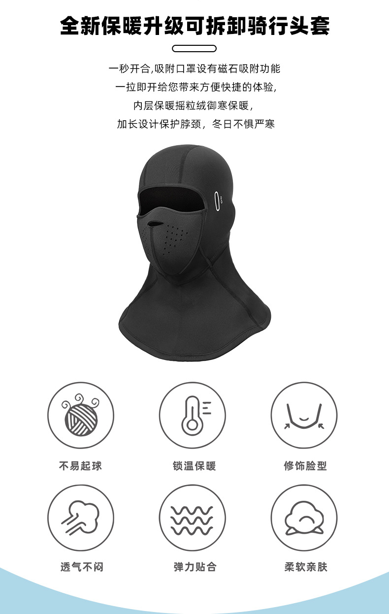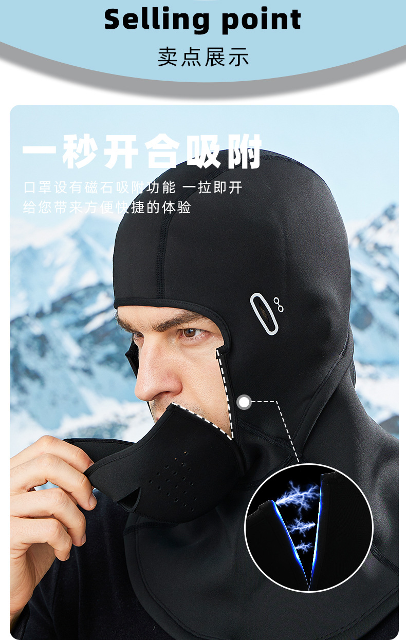 겨울 스키 마스크 자기 흡입 야외 냉동 방지 차가운 얼굴 보호 등산 기모 따뜻한 방풍 라이닝 헤드 기어