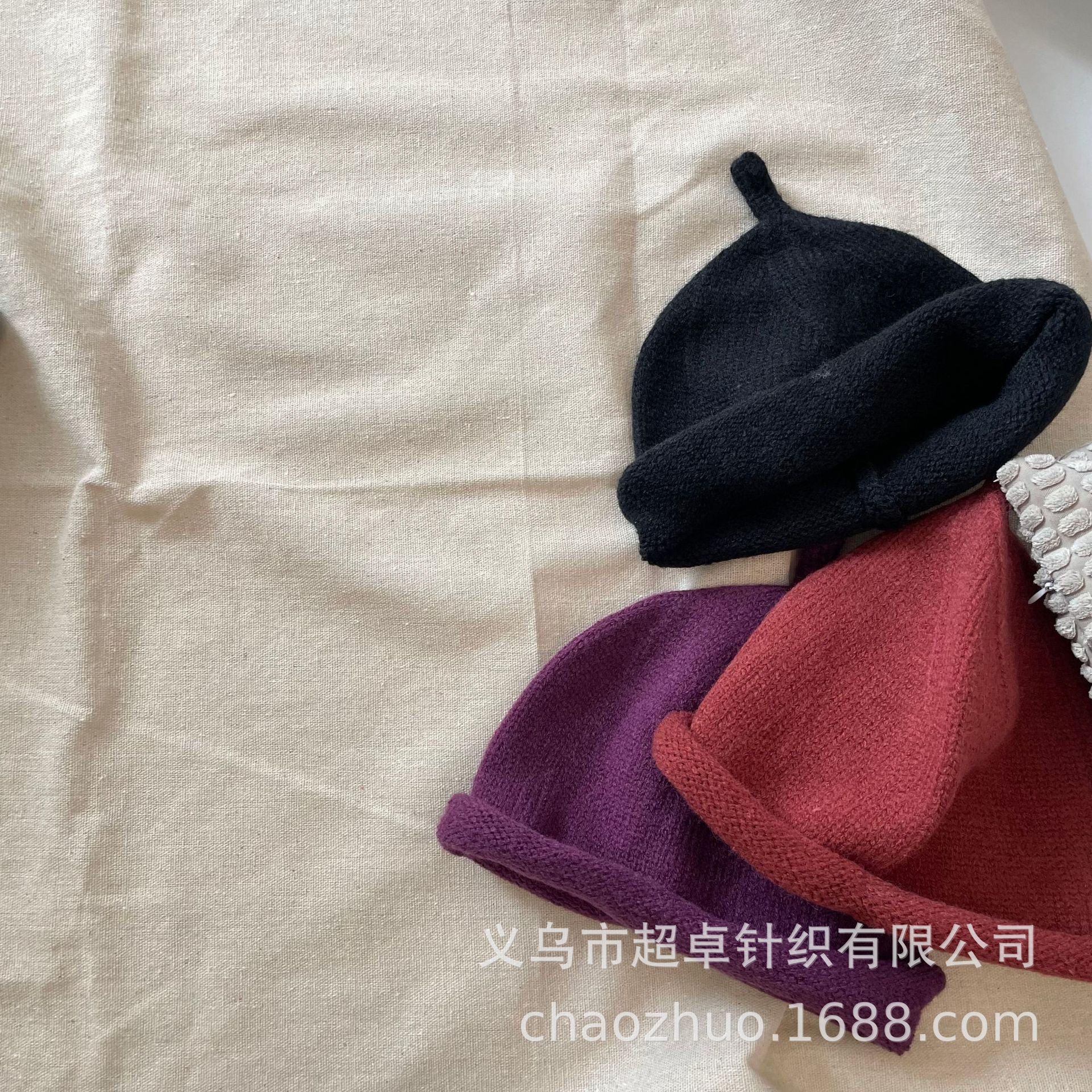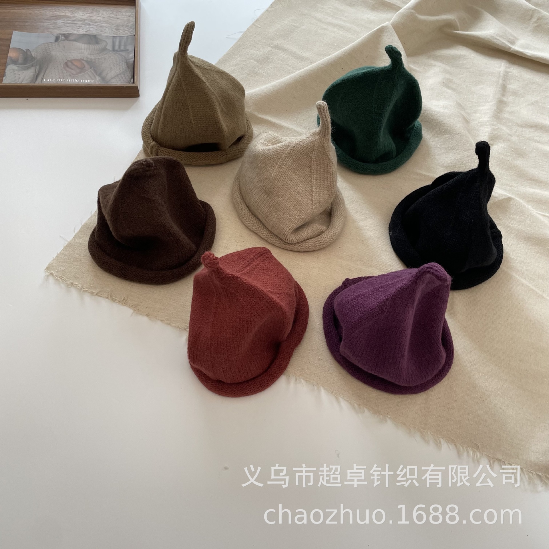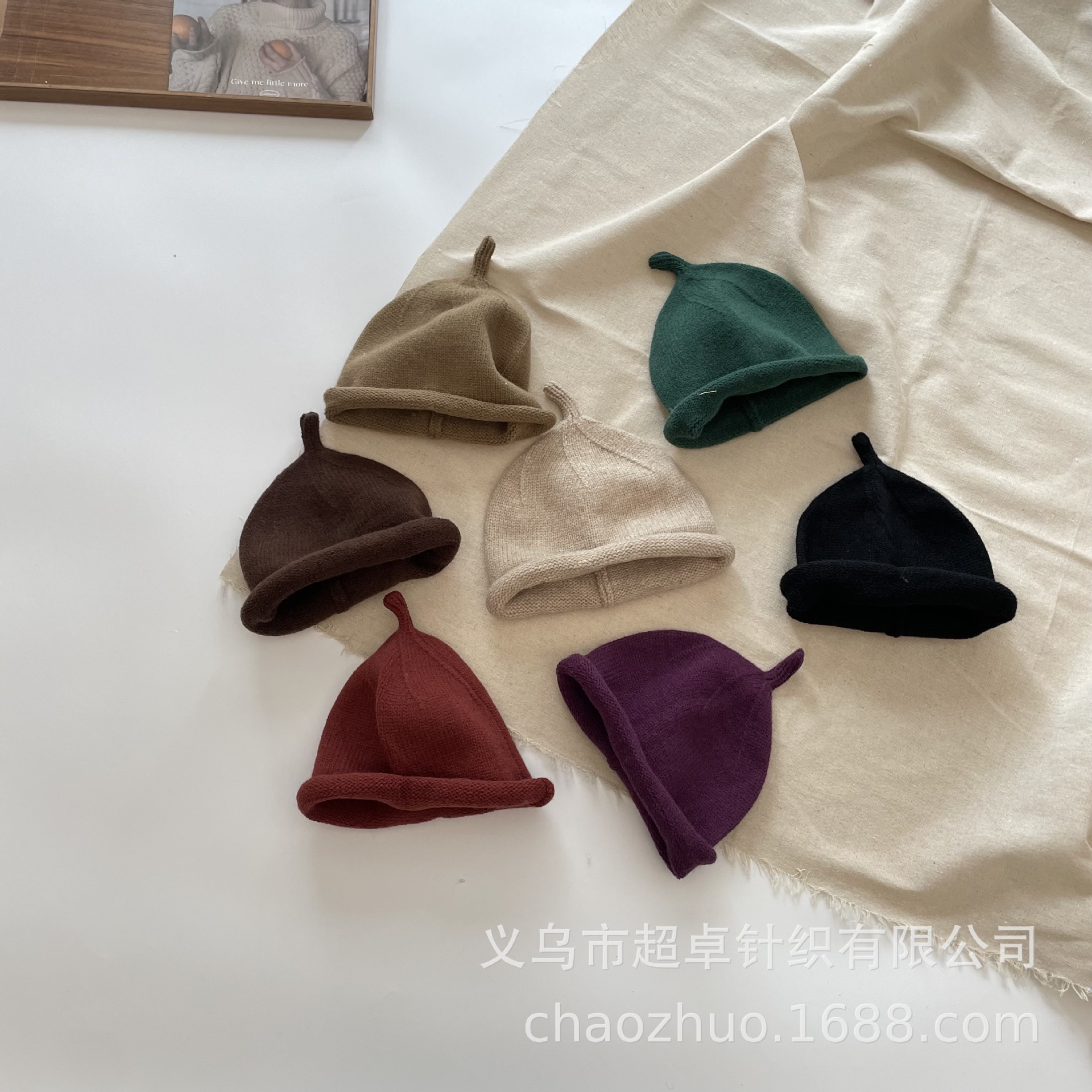 초가을 방한모자 한국 스타일 겨울 모직모자 귀여운 어린이 젖꼭지 모자 남아 여아 니트모자