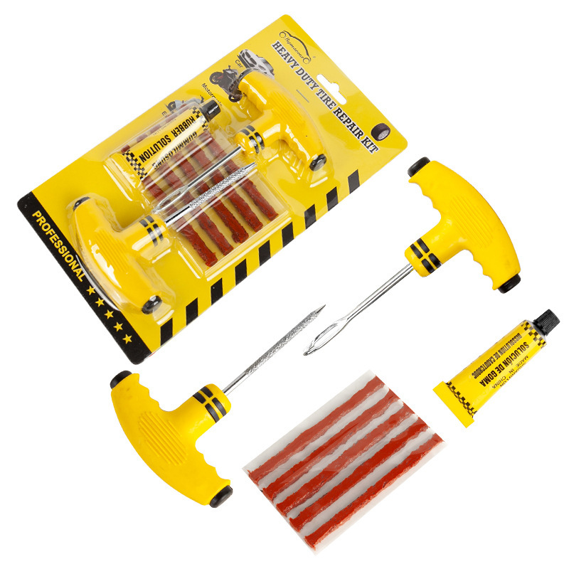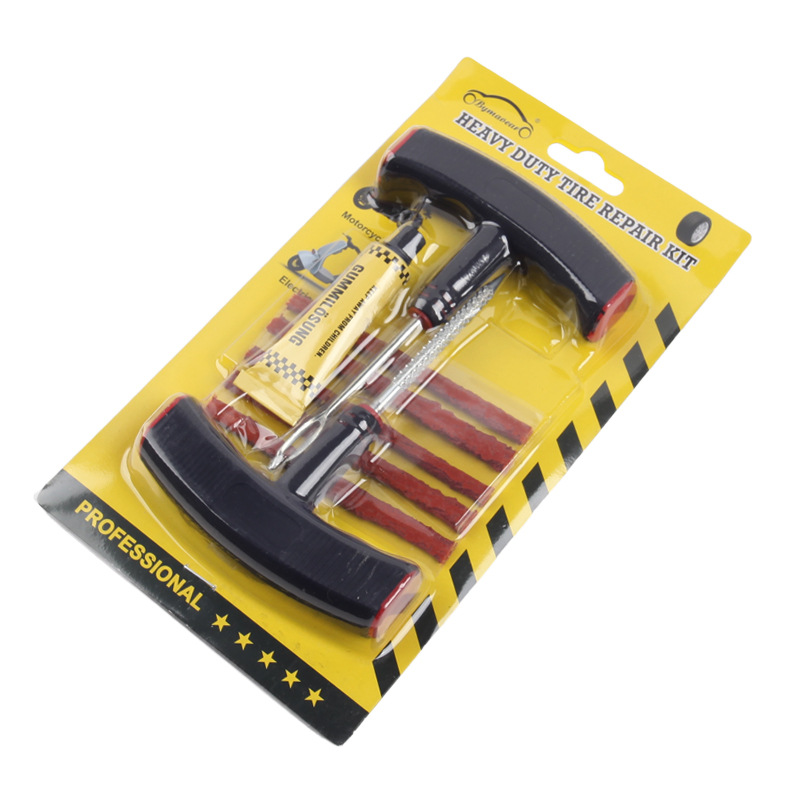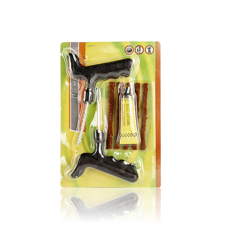 套装标配:1个螺纹钻,1个叉口钻,5根补胎胶条,1个胶水。