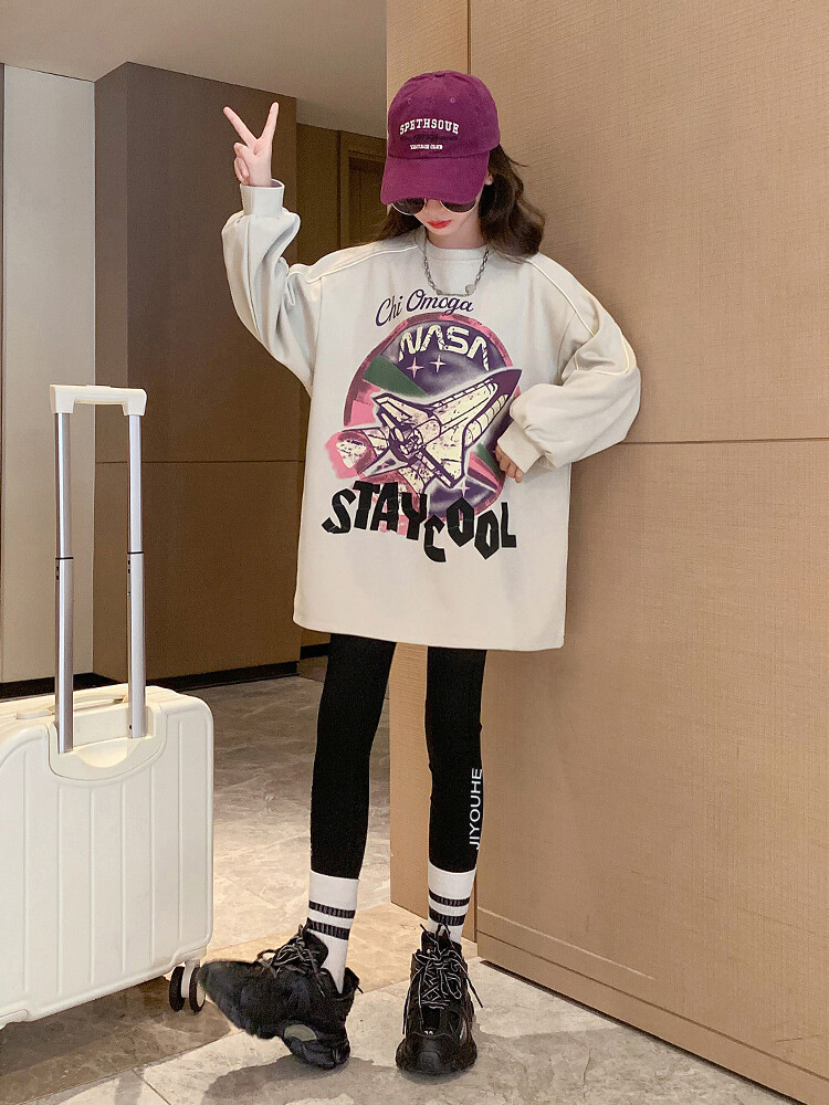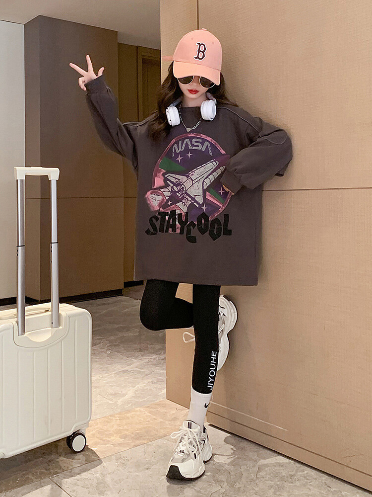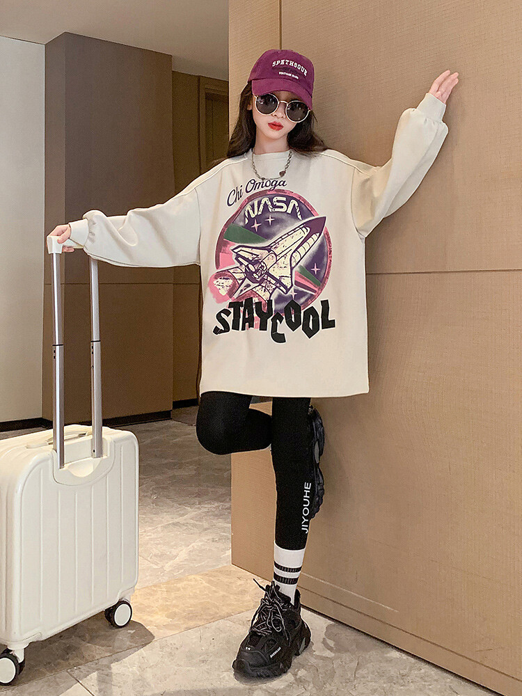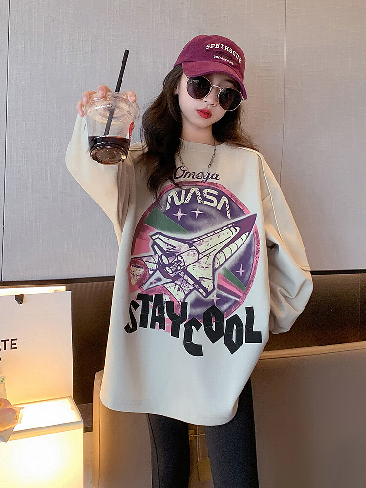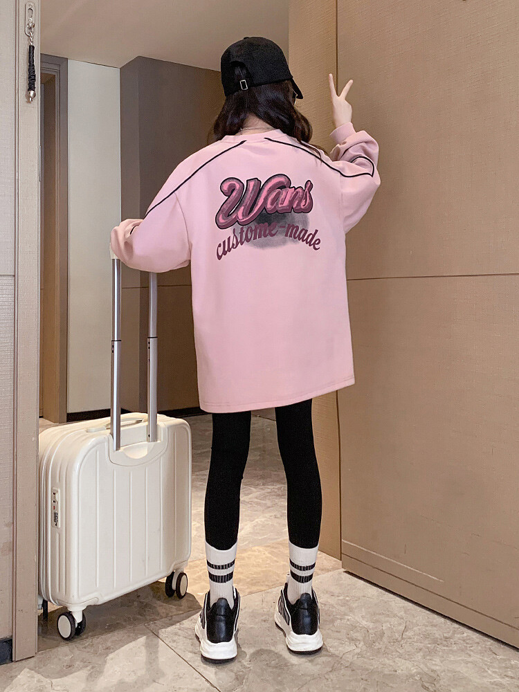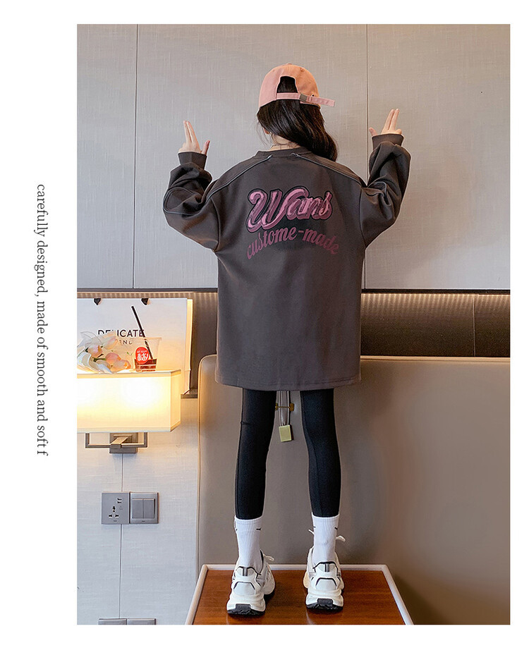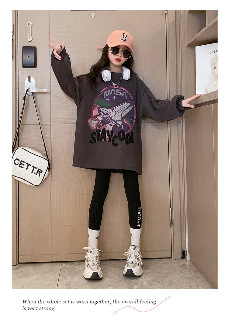 여아 한국식 스웨트 원피스 2023 봄 가을 어린이 중간 길이 루즈한 캐주얼 티셔츠 인터넷 연예인 큰 아동복