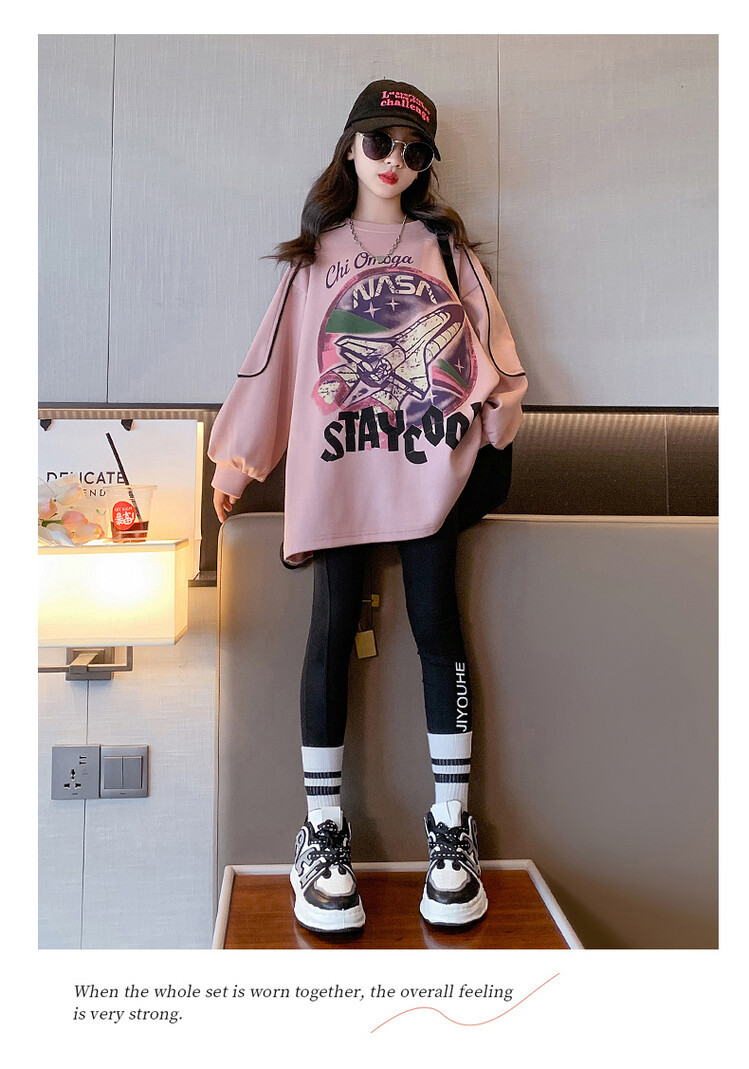 여아 한국식 스웨트 원피스 2023 봄 가을 어린이 중간 길이 루즈한 캐주얼 티셔츠 인터넷 연예인 큰 아동복스토어 가기