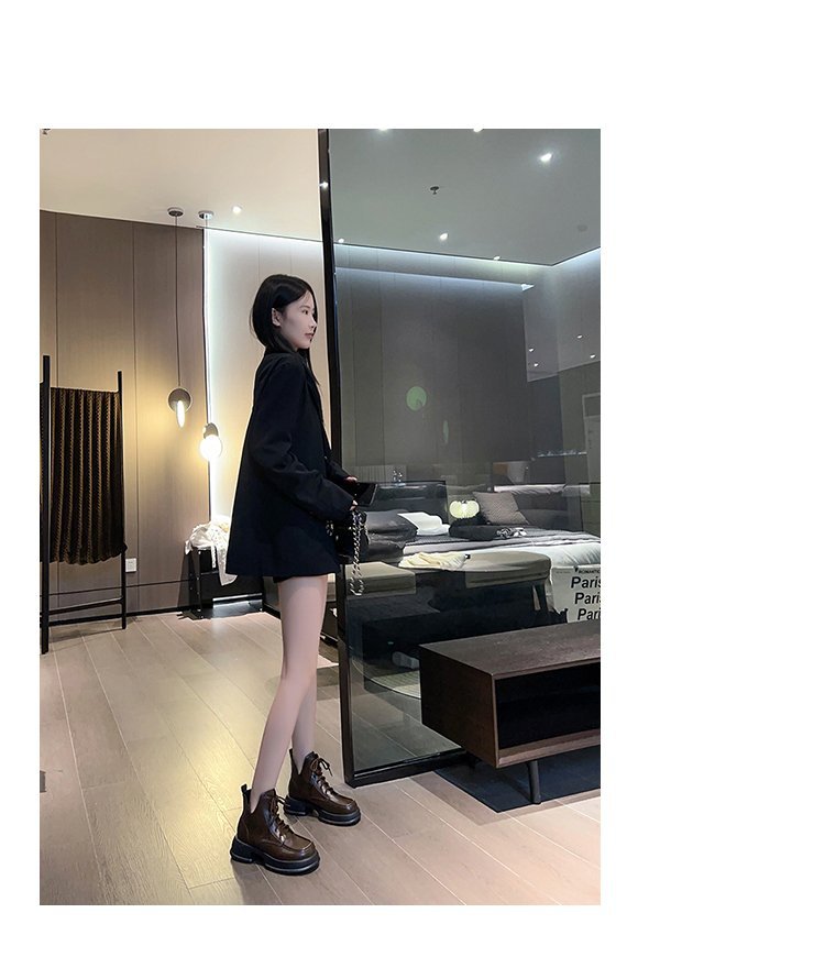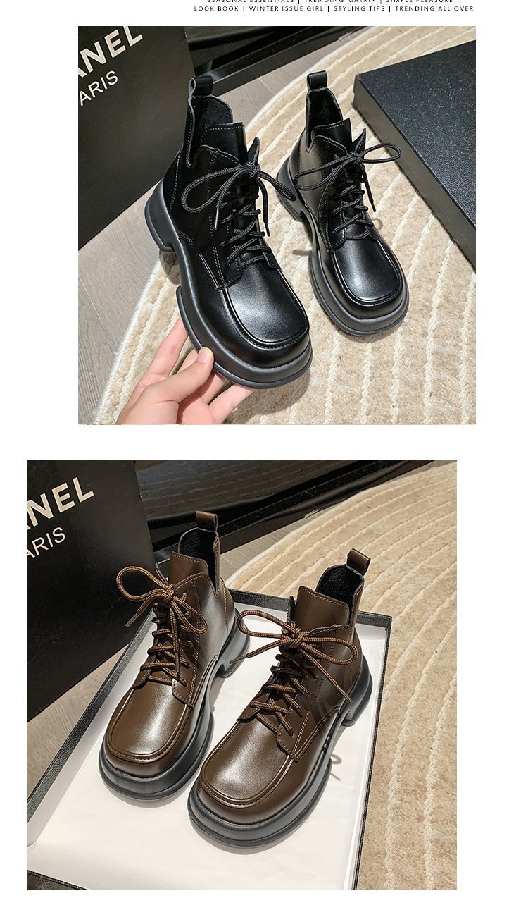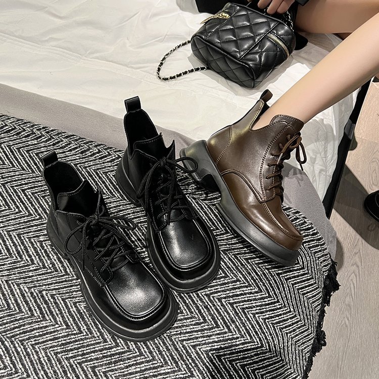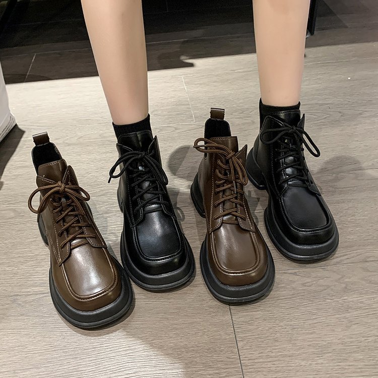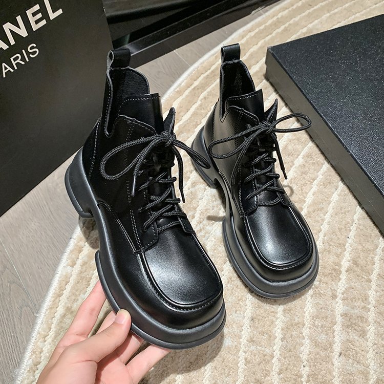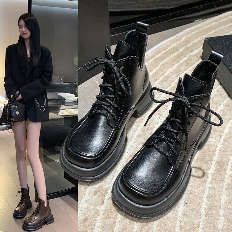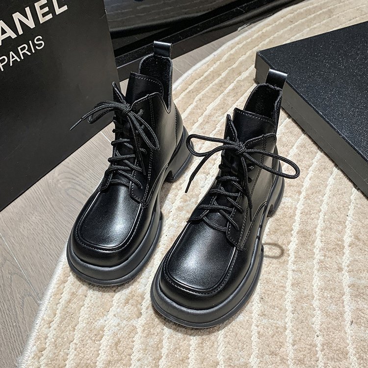 빅 헤드 마틴 부츠 여성의 영국 스타일 2023 가을/겨울 새로운 플러스 사이즈 V-입 낮은 두꺼운 굽 레이스 업 부츠 여성 부츠스토어 가기