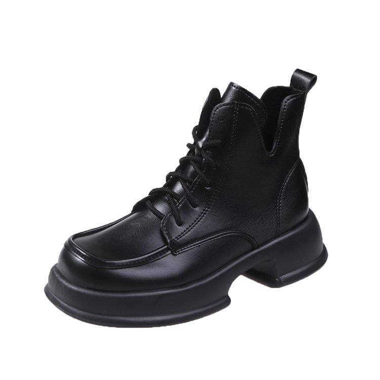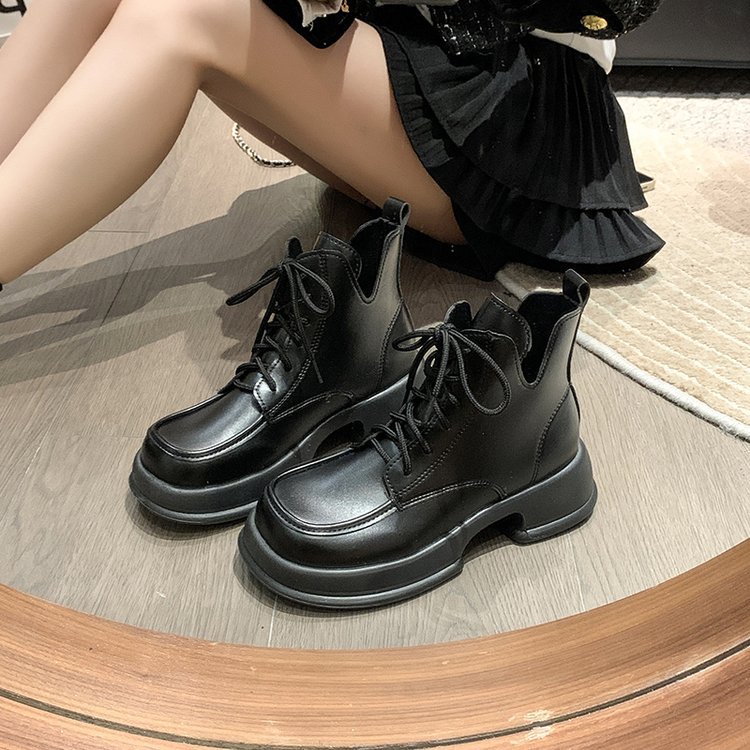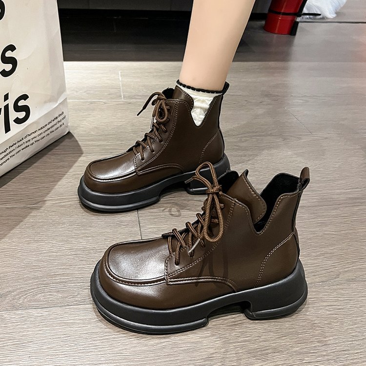 빅 헤드 마틴 부츠 여성의 영국 스타일 2023 가을/겨울 새로운 플러스 사이즈 V-입 낮은 두꺼운 굽 레이스 업 부츠 여성 부츠