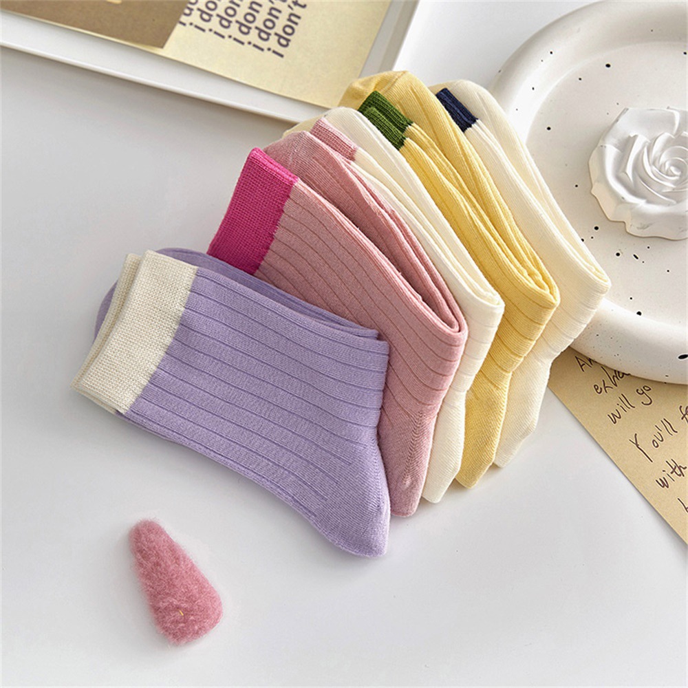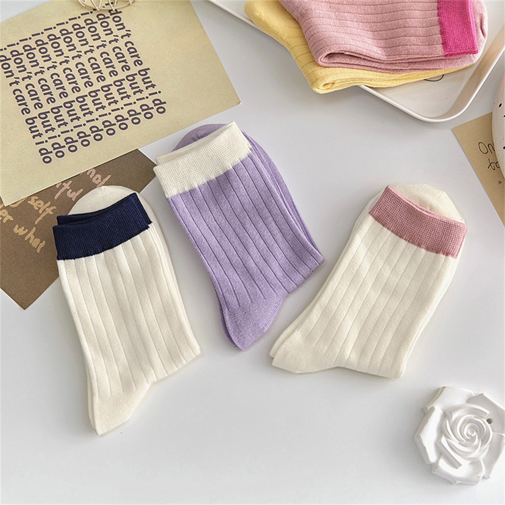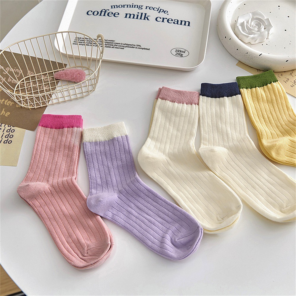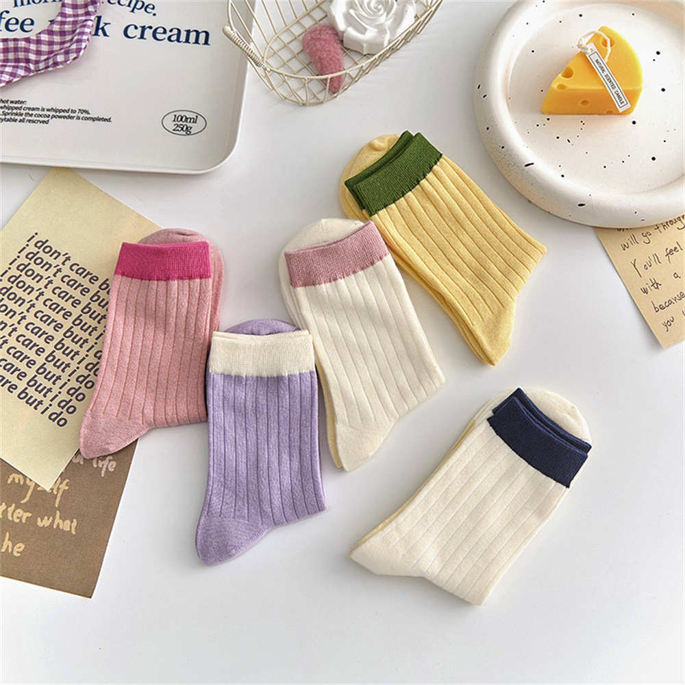 多巴胺袜子女中筒袜早秋新款抽条拼色女袜糖果色ins潮撞色堆堆袜