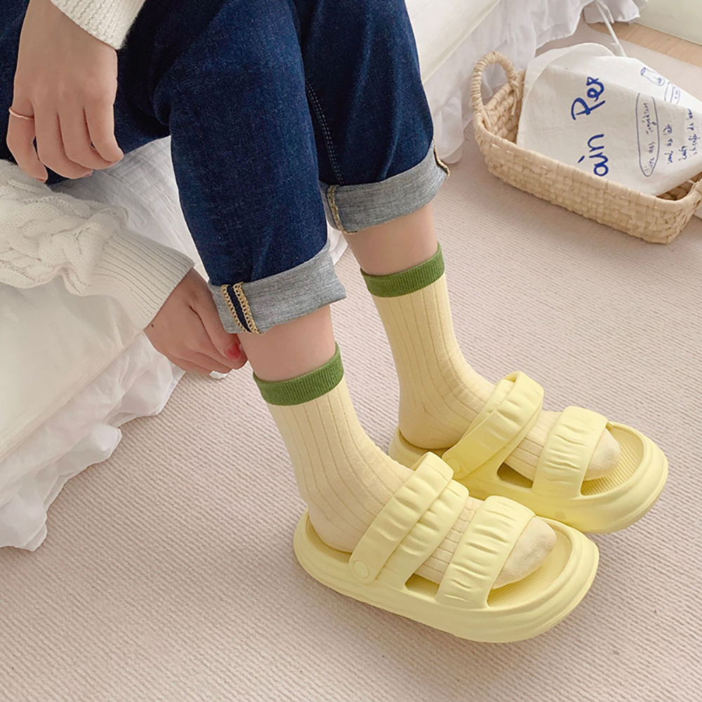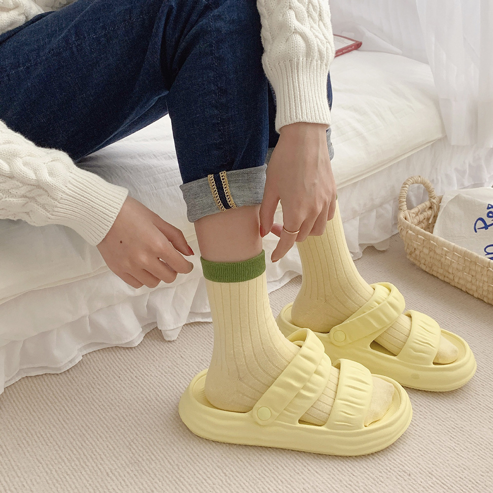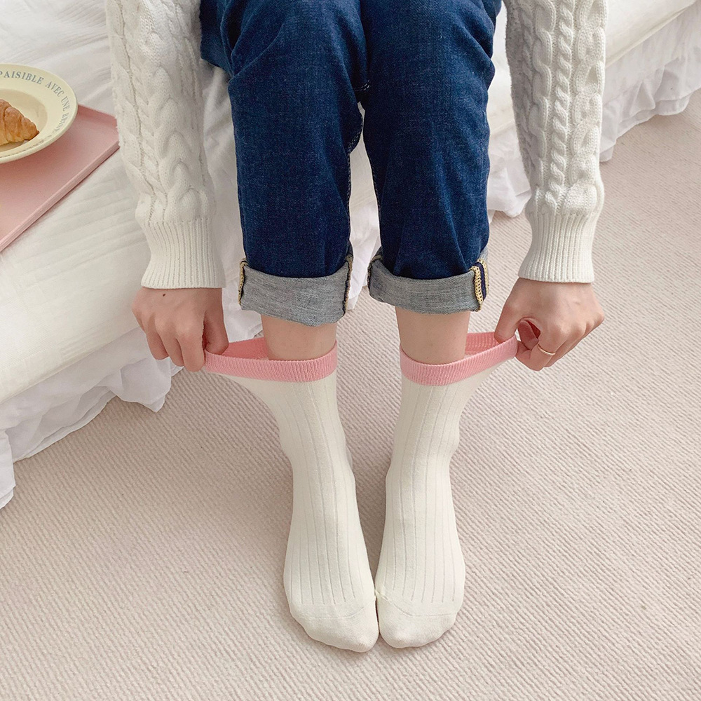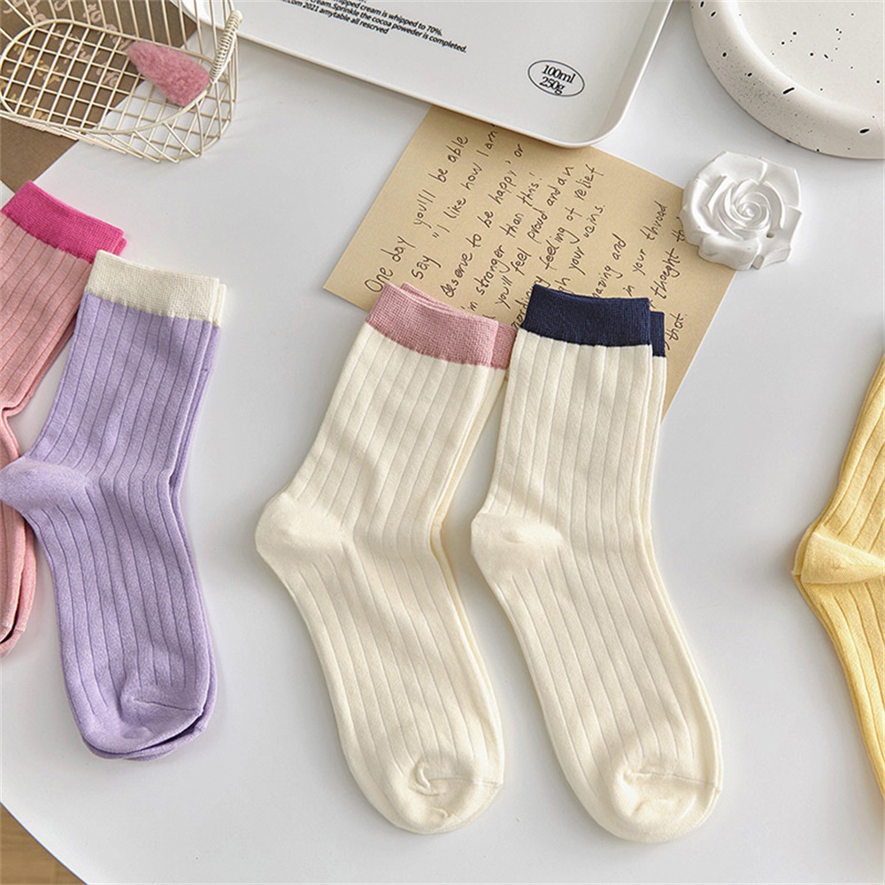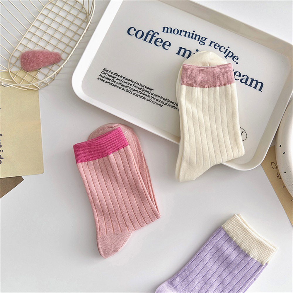 多巴胺袜子女中筒袜早秋新款抽条拼色女袜糖果色ins潮撞色堆堆袜