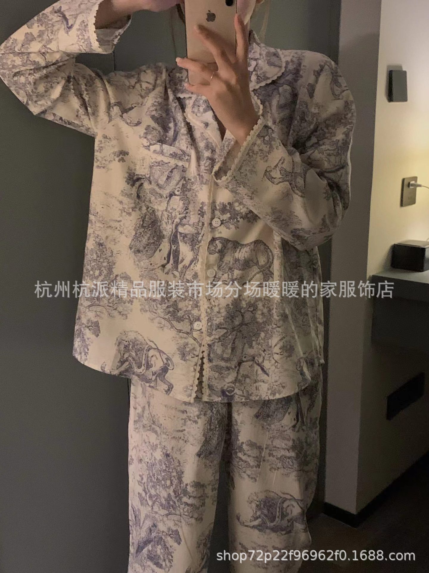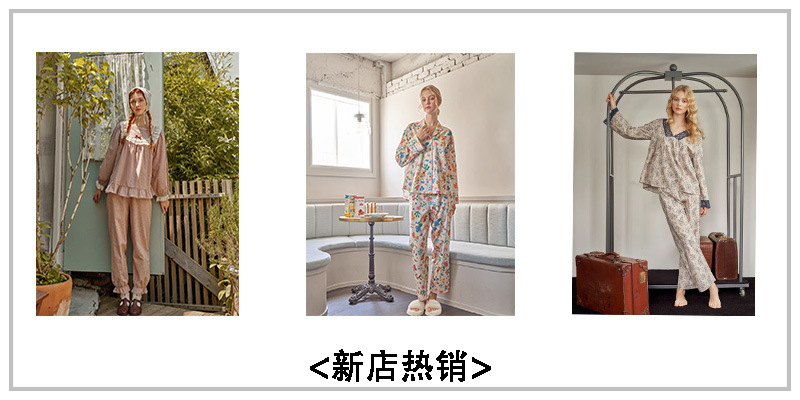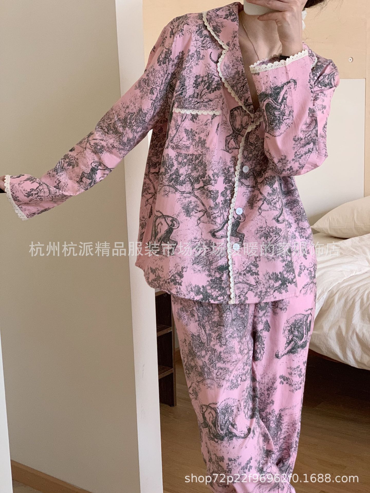 한국 스타일 여성용 면 잠옷, 달콤한 긴팔 면마 고급 여성용 카라 홈웨어 세트, 순면 봄 가을 외출복스토어 가기