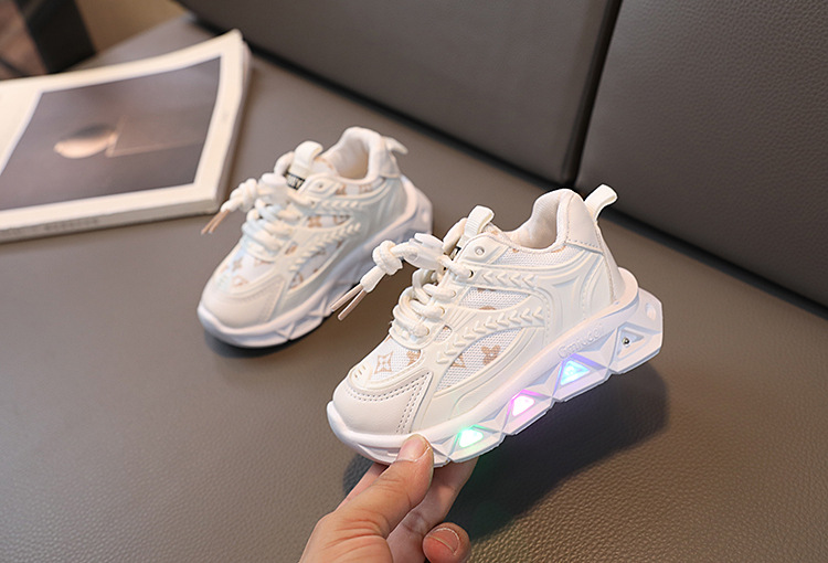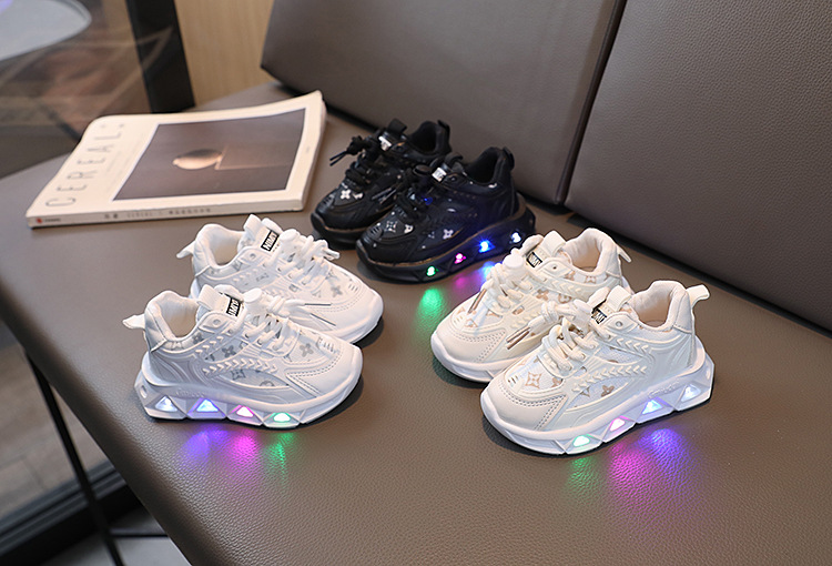 2023 유행 Led 가벼운 신발 어린이 편지 리본 메쉬 통기성 어린이 1-6 세 발광 신발 캐주얼 운동화스토어 가기