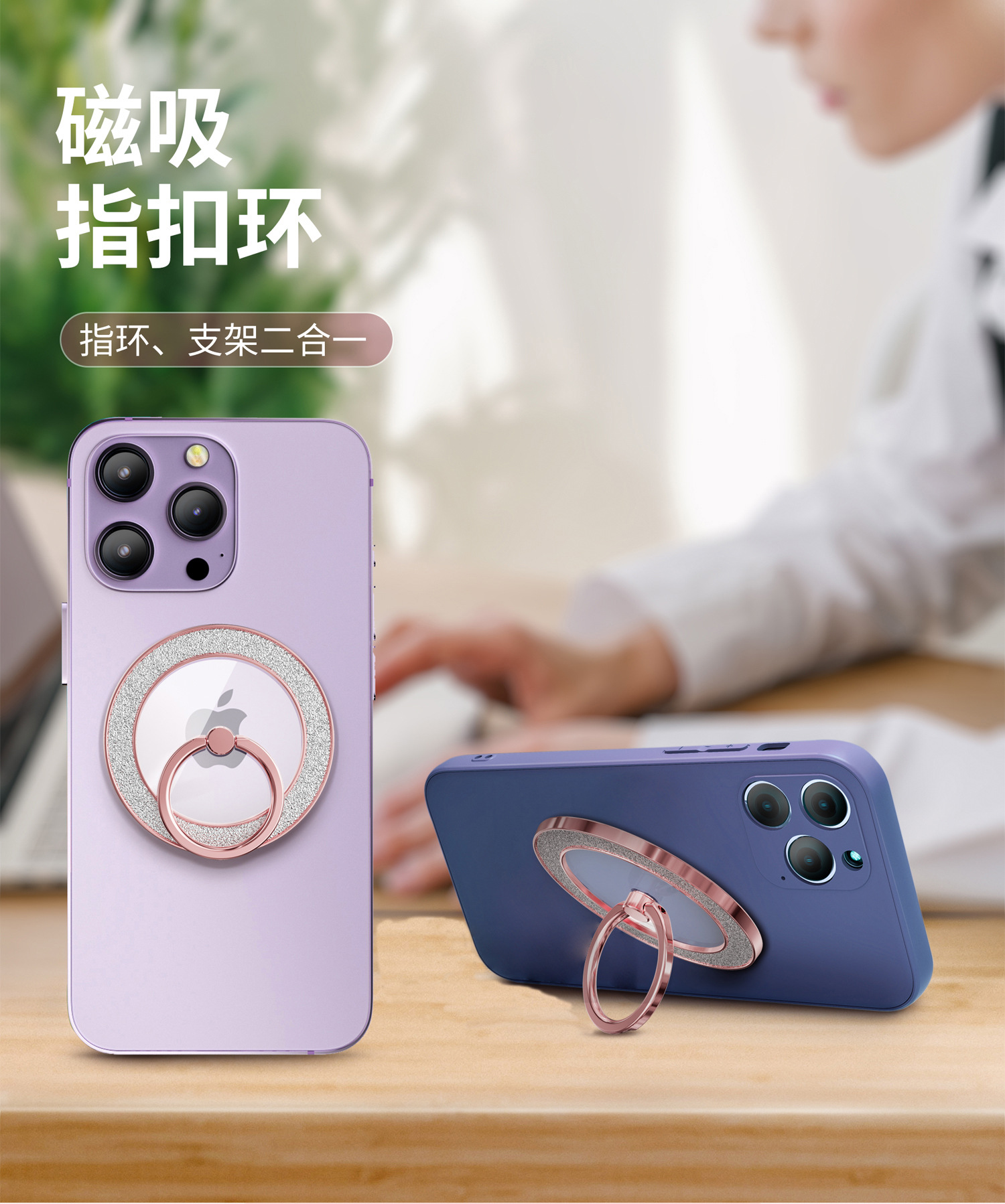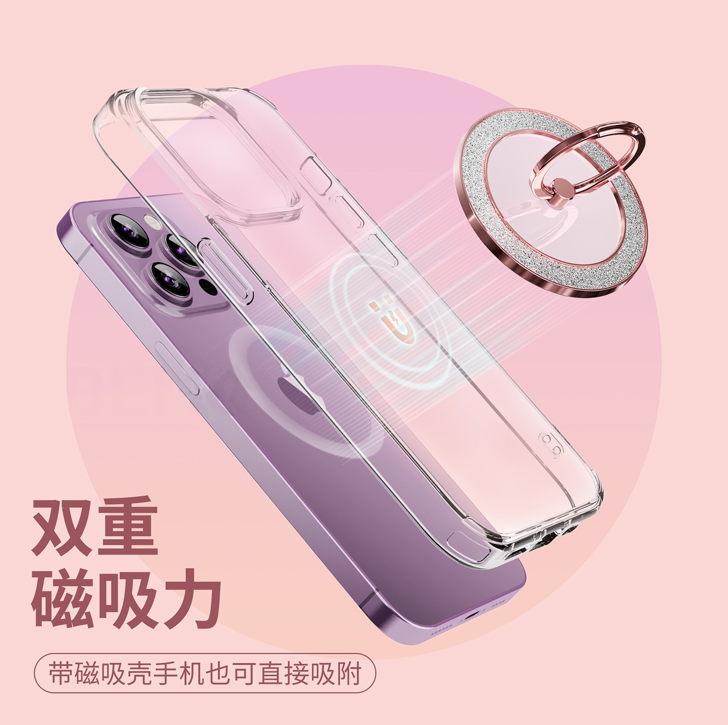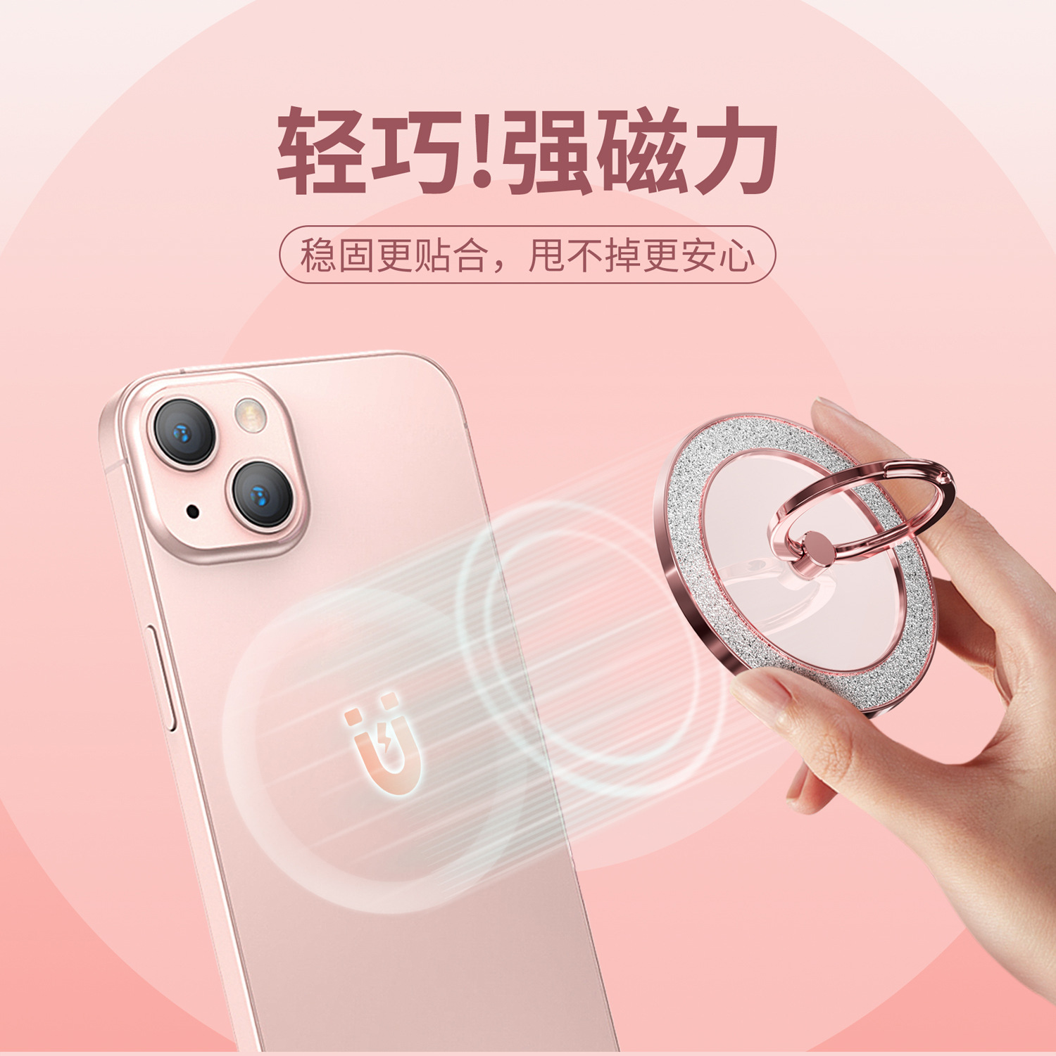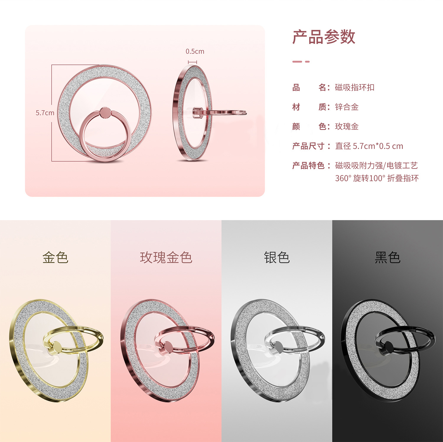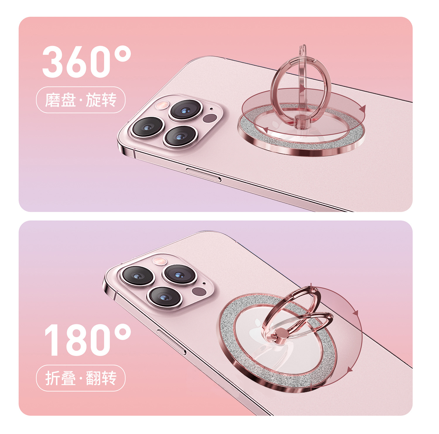 Magsafe 강한 자기 흡입 금속 360 도 회전 플래시 다이아몬드 분말 휴대 전화 링 버클 남성과 여성의 브래킷 과일 안드로이드 유니버설