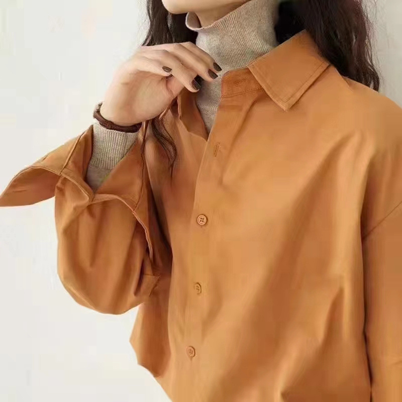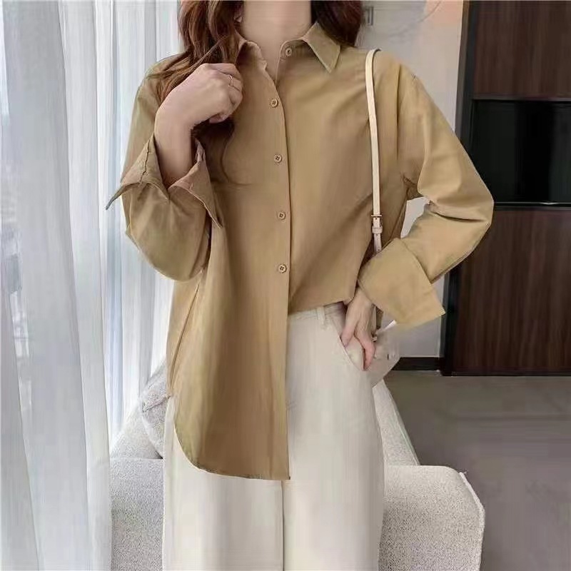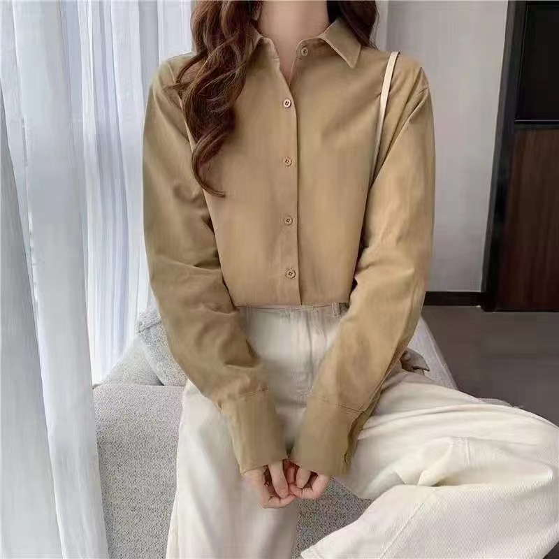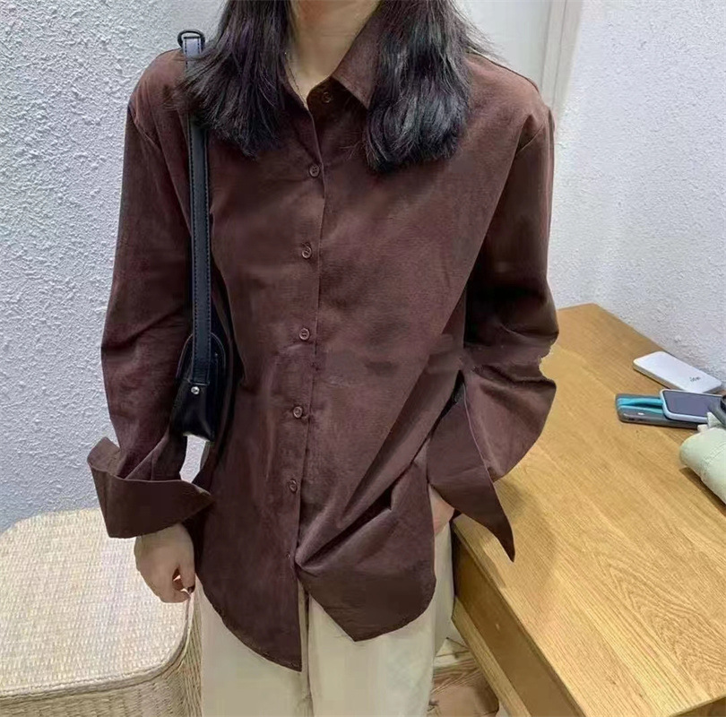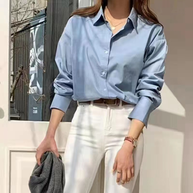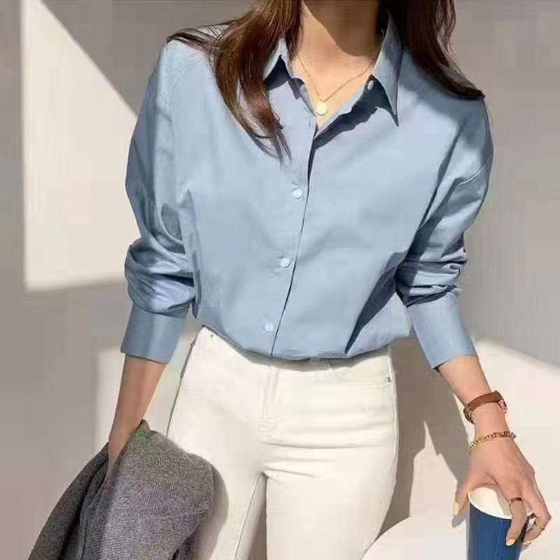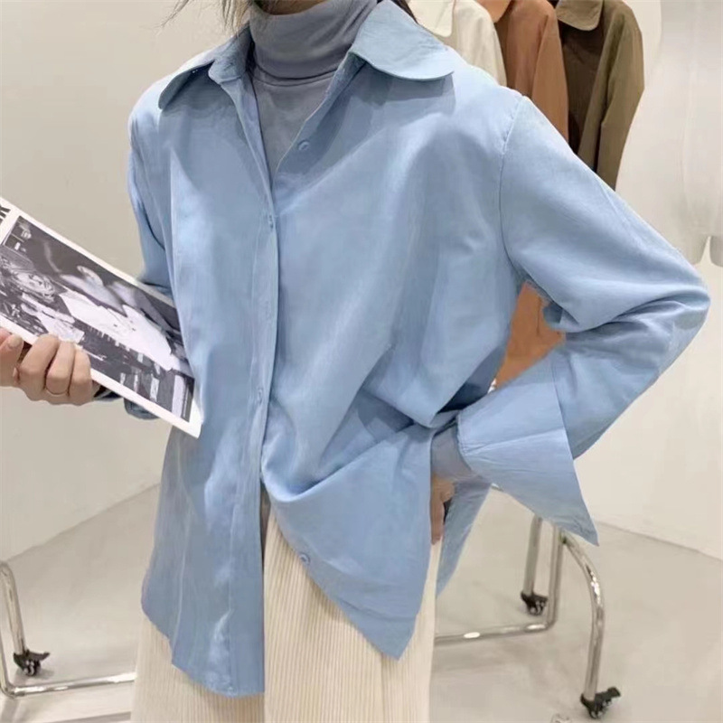 재고 2023 가을 새로운 한국 스타일 우아한 모든 일치 단색 드레이핑 셔츠 여성의 한국 긴 소매 셔츠