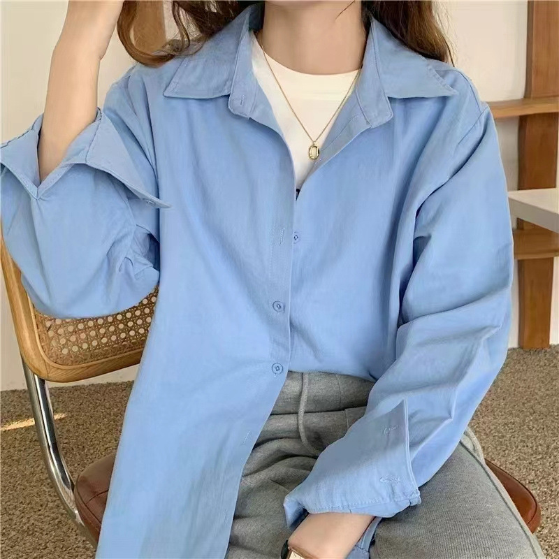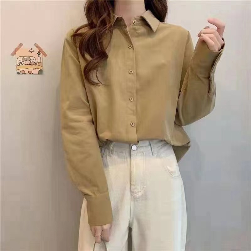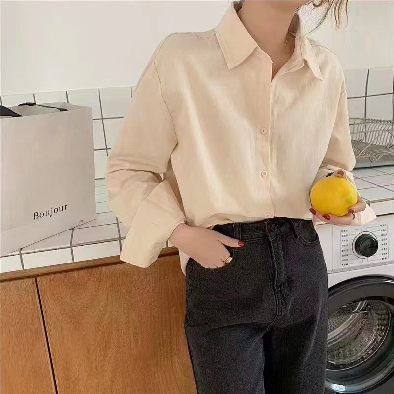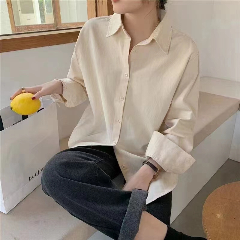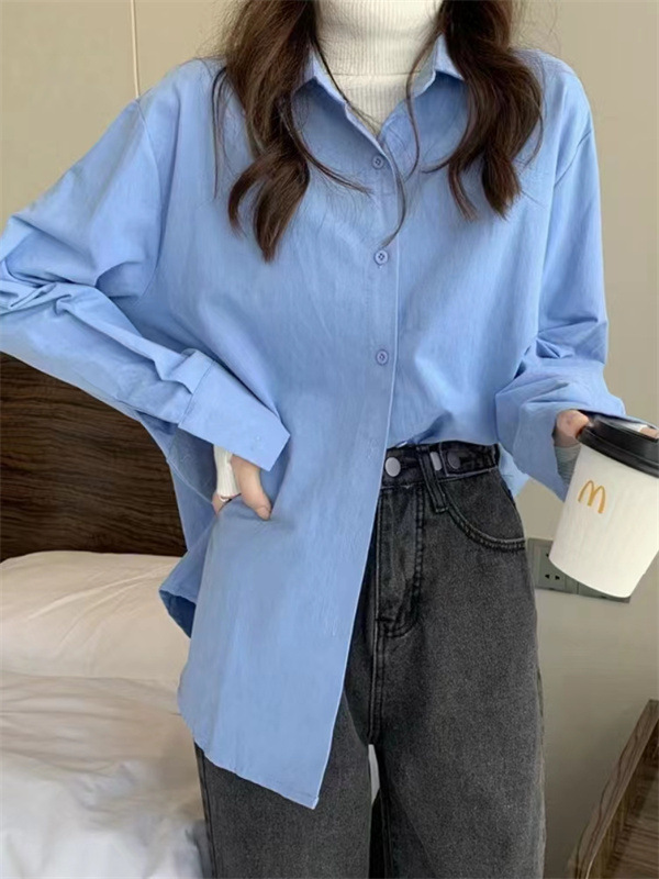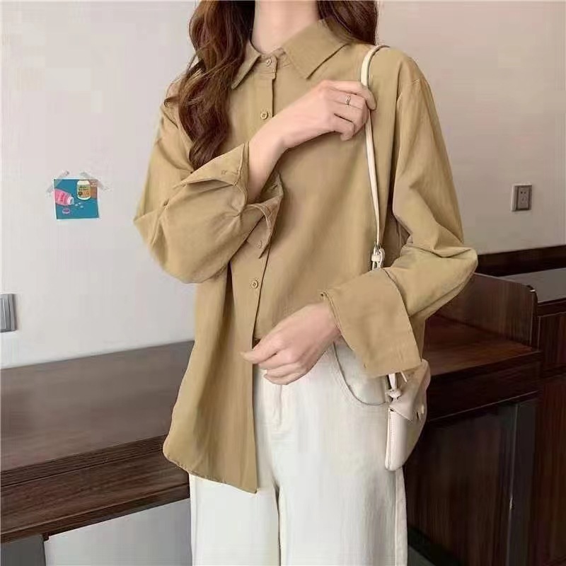 재고 2023 가을 새로운 한국 스타일 우아한 모든 일치 단색 드레이핑 셔츠 여성의 한국 긴 소매 셔츠