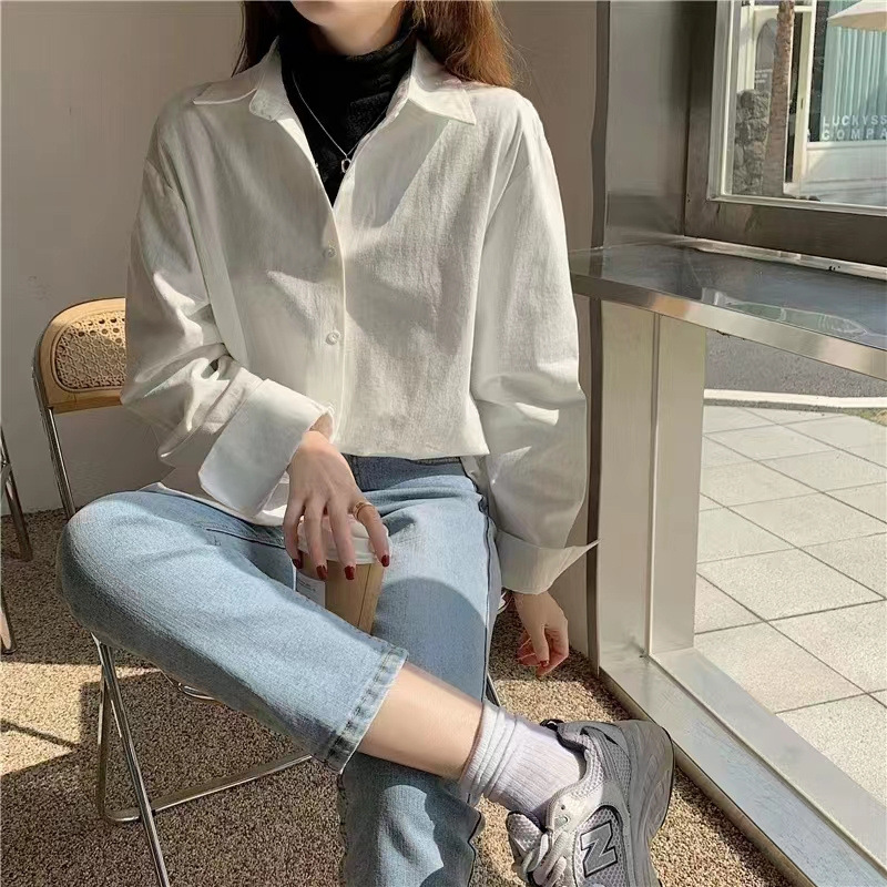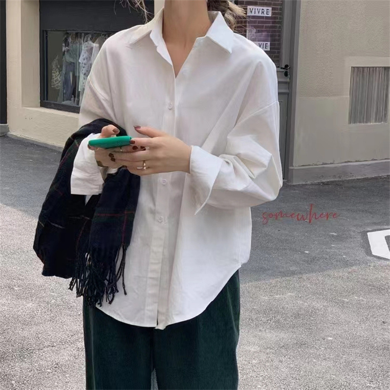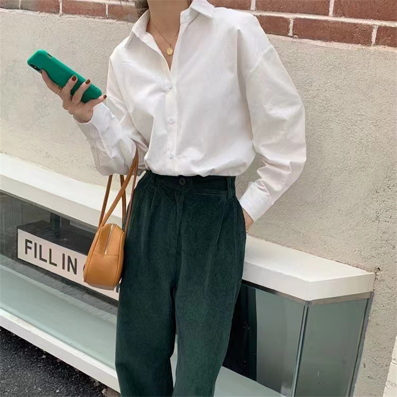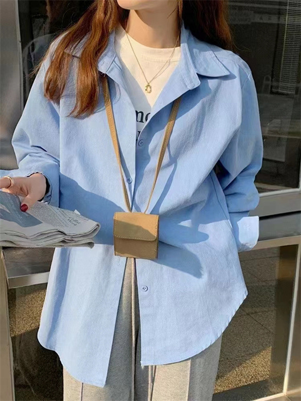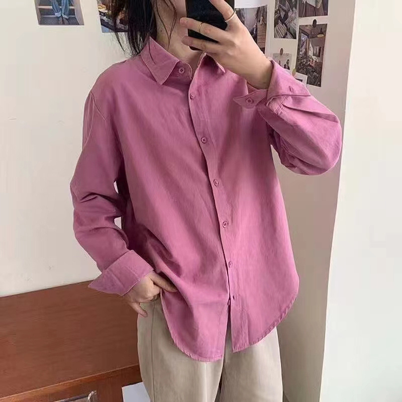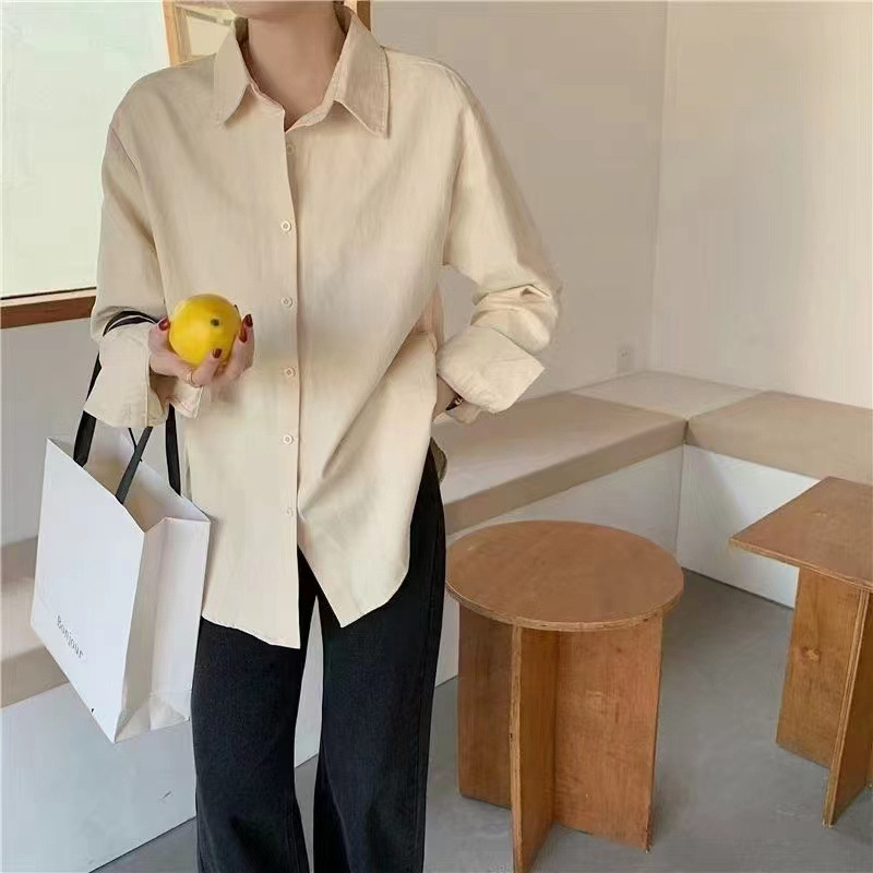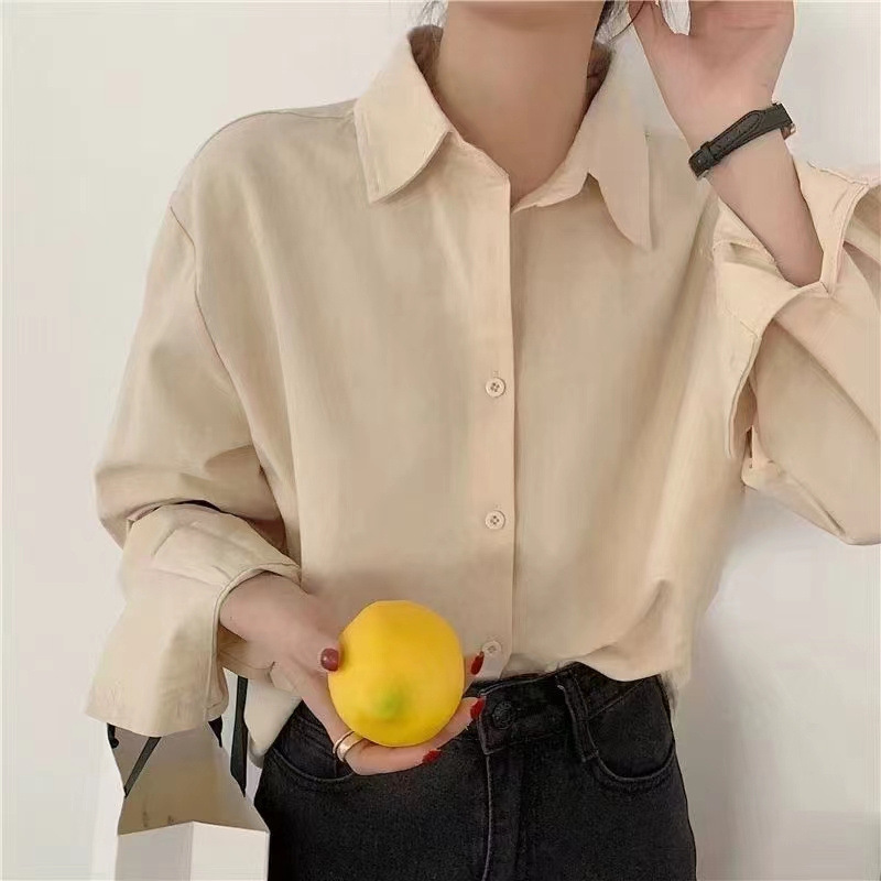 재고 2023 가을 새로운 한국 스타일 우아한 모든 일치 단색 드레이핑 셔츠 여성의 한국 긴 소매 셔츠