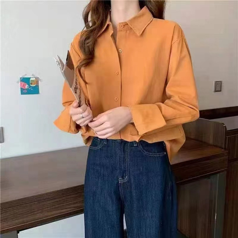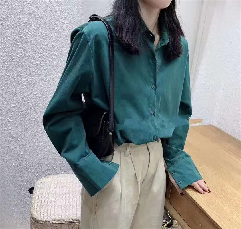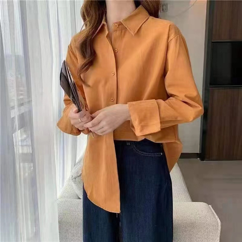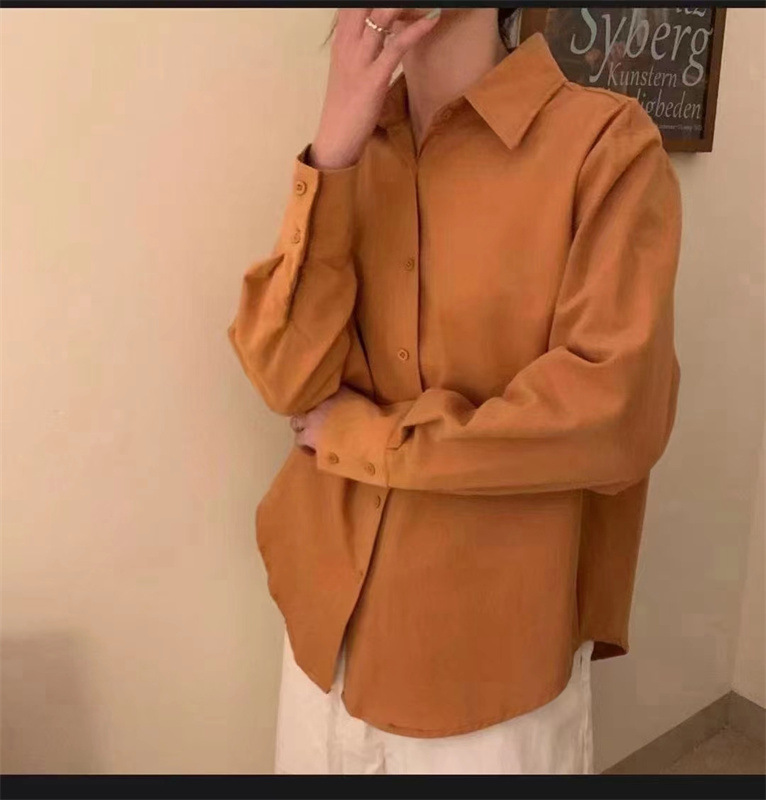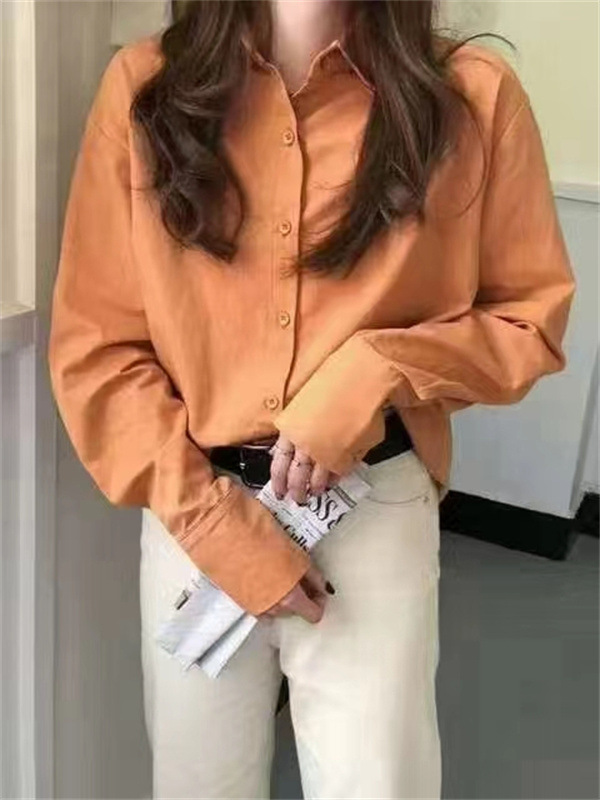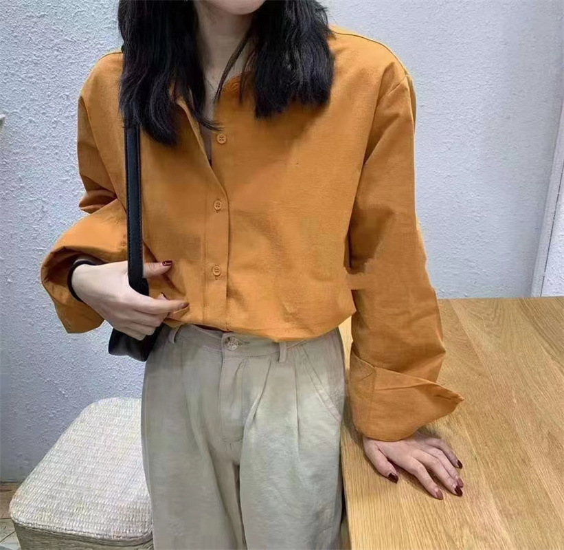 재고 2023 가을 새로운 한국 스타일 우아한 모든 일치 단색 드레이핑 셔츠 여성의 한국 긴 소매 셔츠스토어 가기