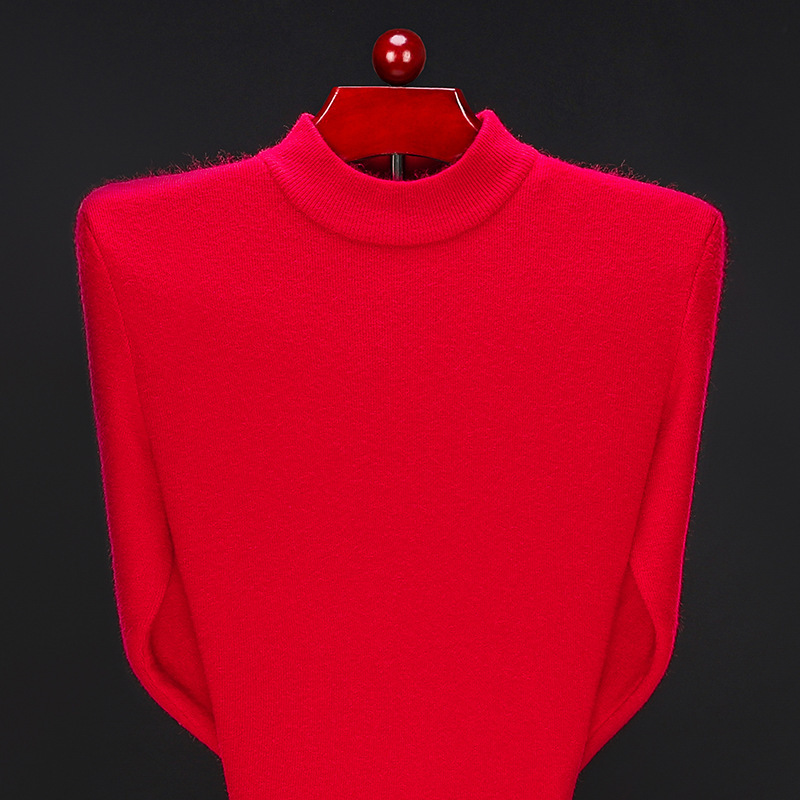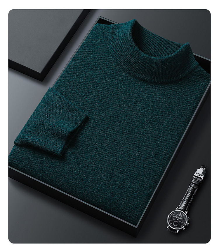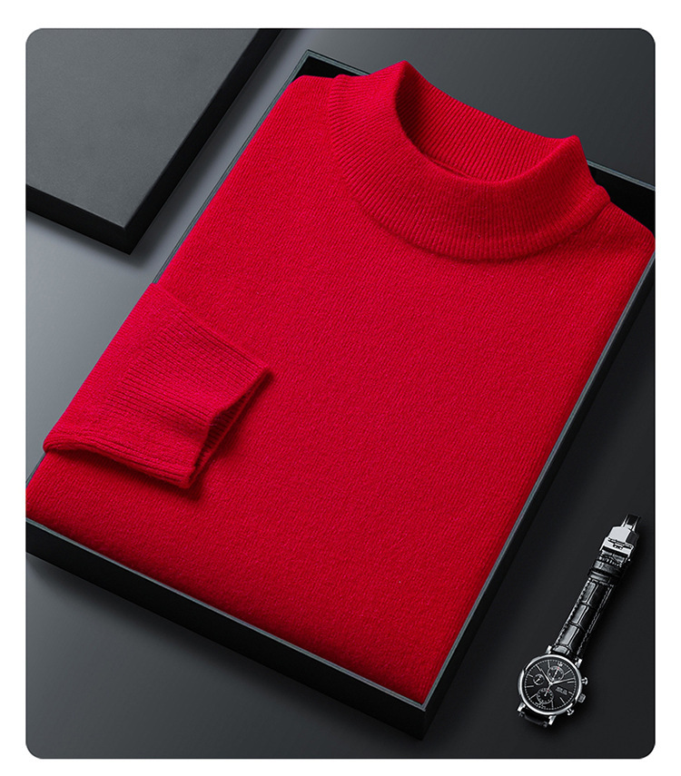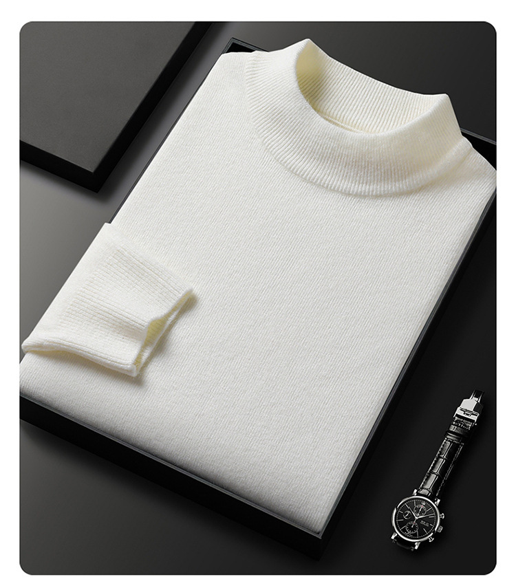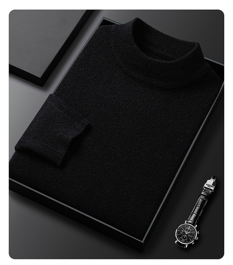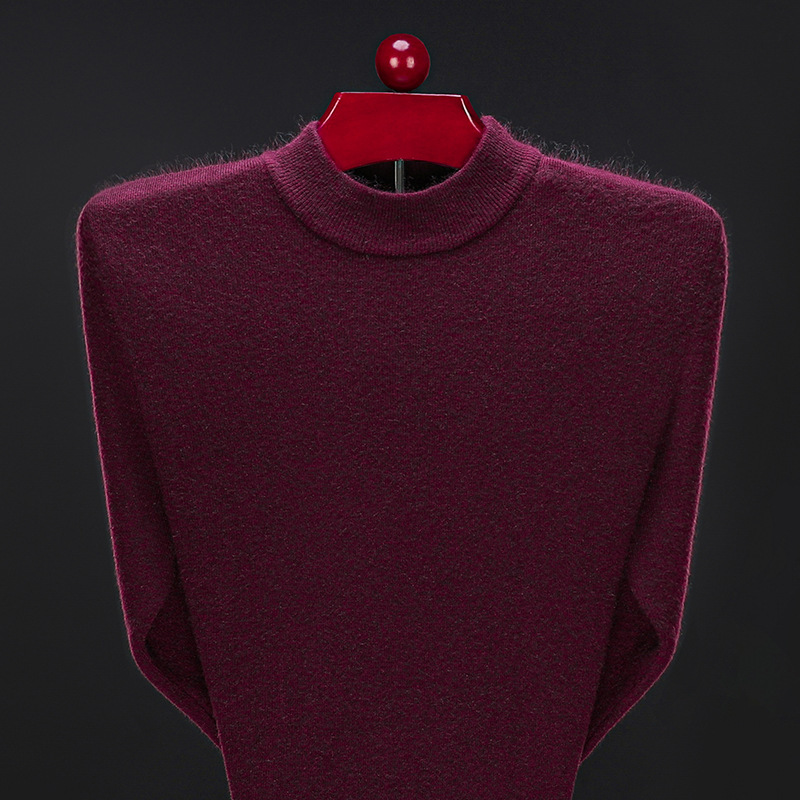 새로운 가을과 겨울 니트 스웨터베이스 셔츠 남성용 중년 및 젊은 단색 하이 넥 남성용 아빠 긴 소매