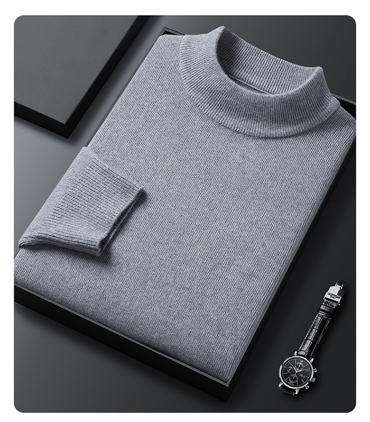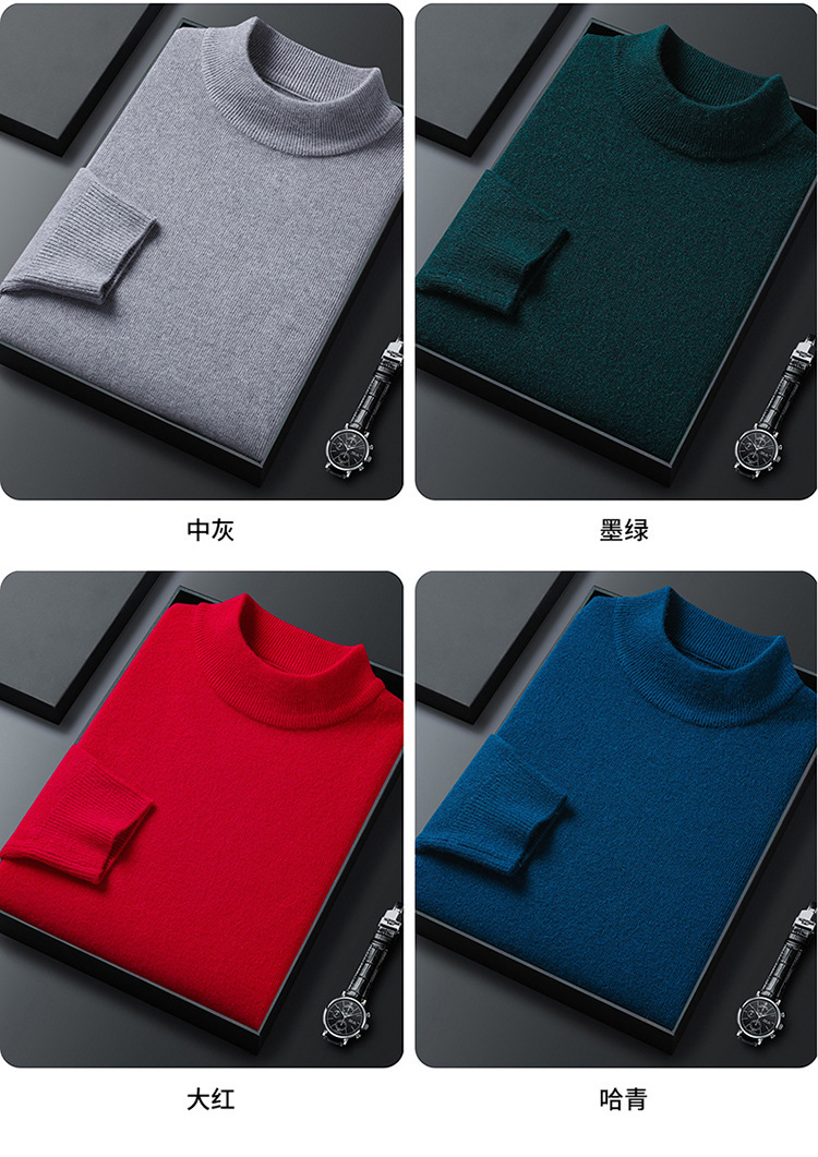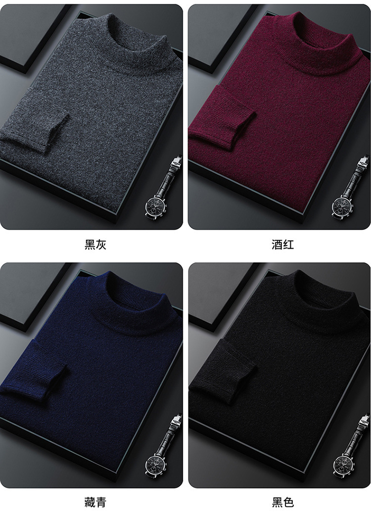 새로운 가을과 겨울 니트 스웨터베이스 셔츠 남성용 중년 및 젊은 단색 하이 넥 남성용 아빠 긴 소매스토어 가기