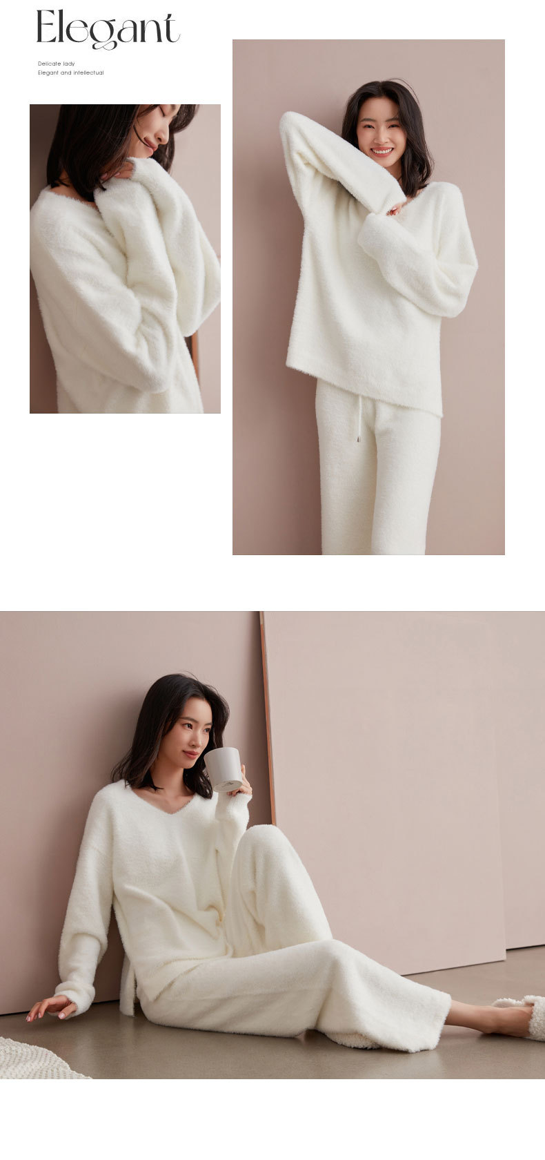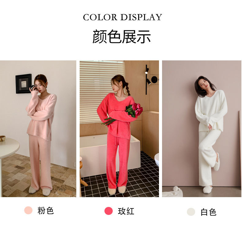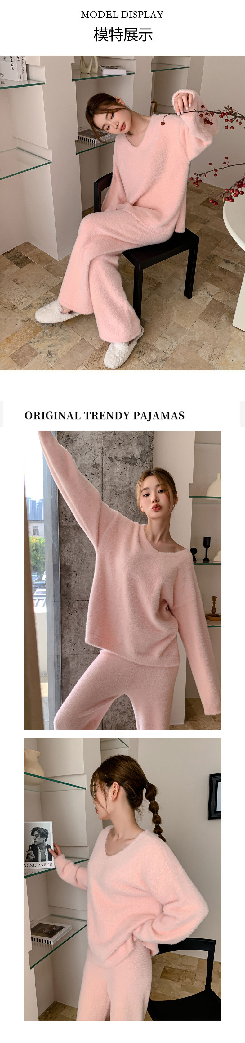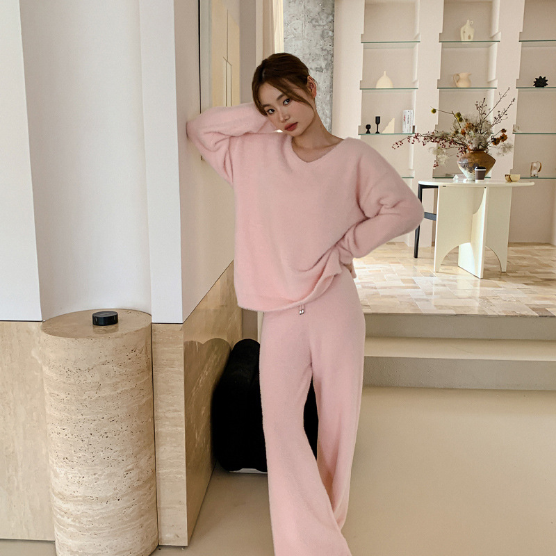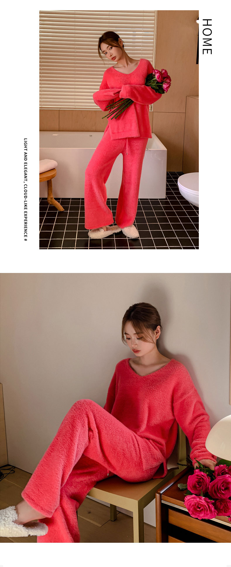 세트 부드럽고 따뜻한 가정복 여성의 새로운 모조 밍크 벨벳 잠옷 가을과 겨울 두꺼운 V-넥 겉옷 가을과 겨울