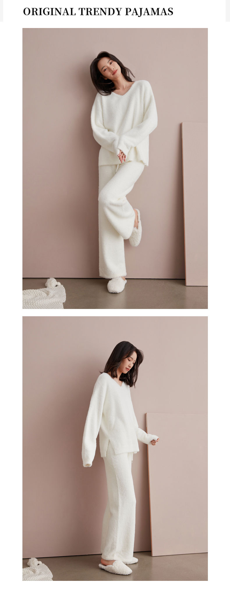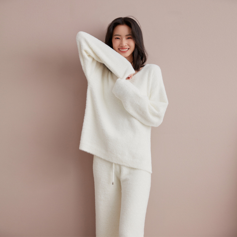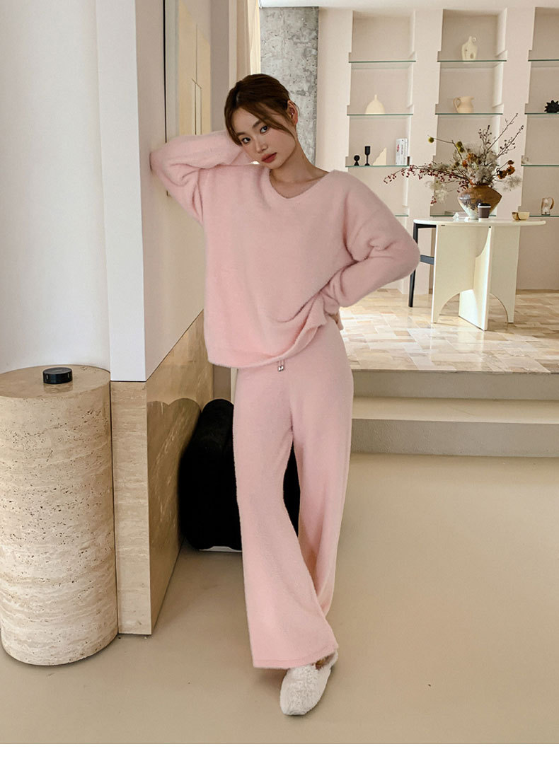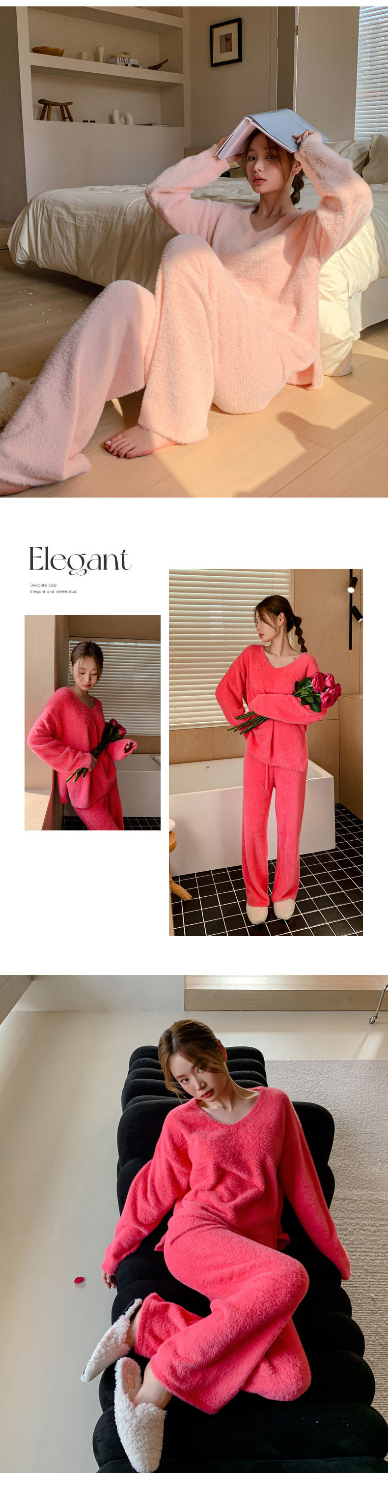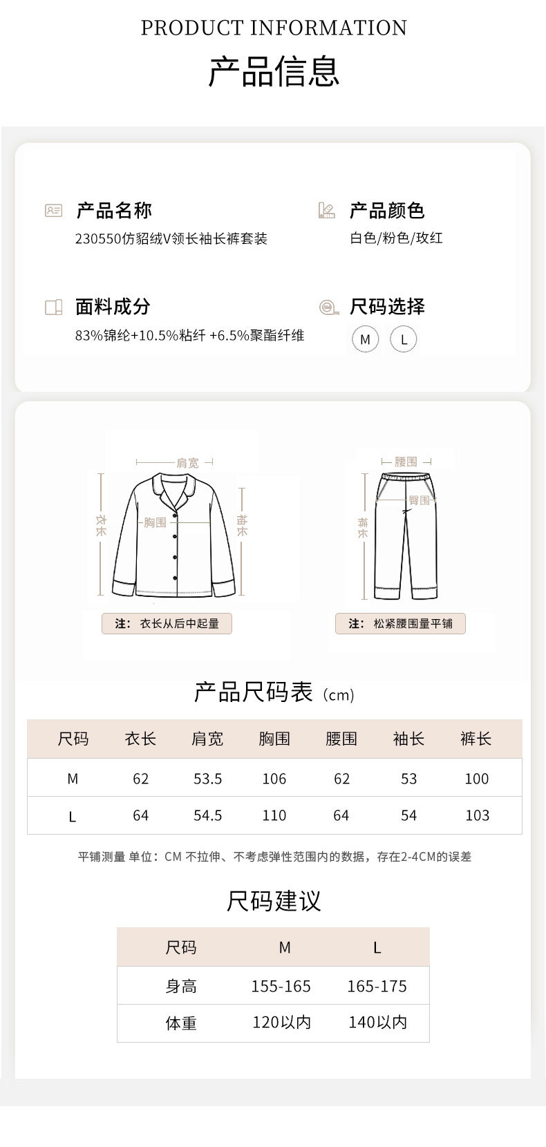 세트 부드럽고 따뜻한 가정복 여성의 새로운 모조 밍크 벨벳 잠옷 가을과 겨울 두꺼운 V-넥 겉옷 가을과 겨울