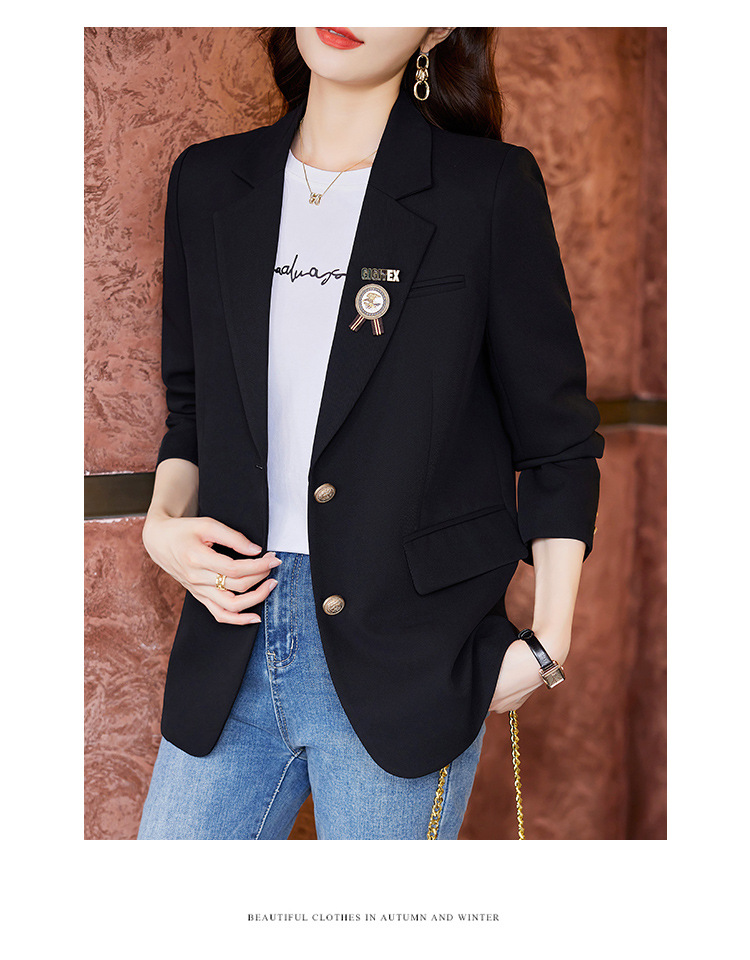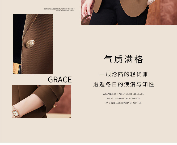 카키 스몰 세트 재킷 여성의 봄과 가을 2023 새로운 스타일 작은 우아한 캐주얼 슬림 핏 슬림 핏 세트 탑