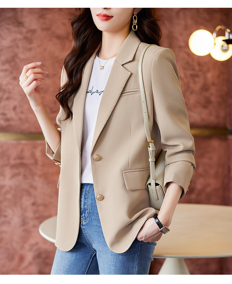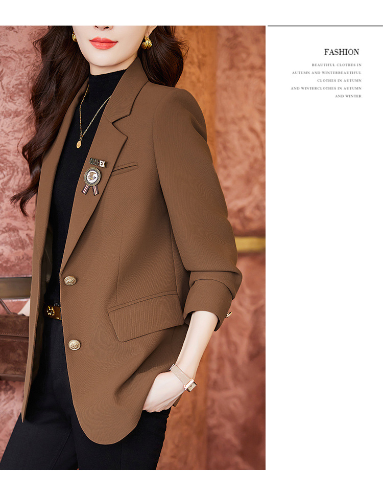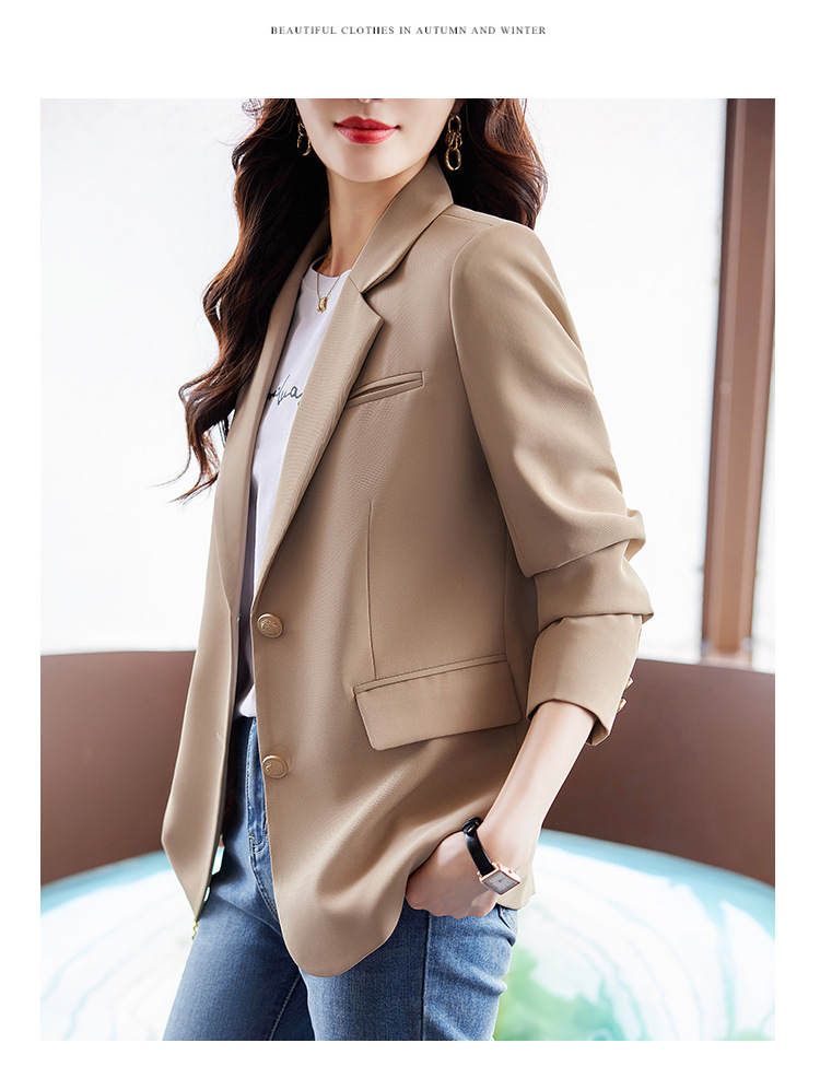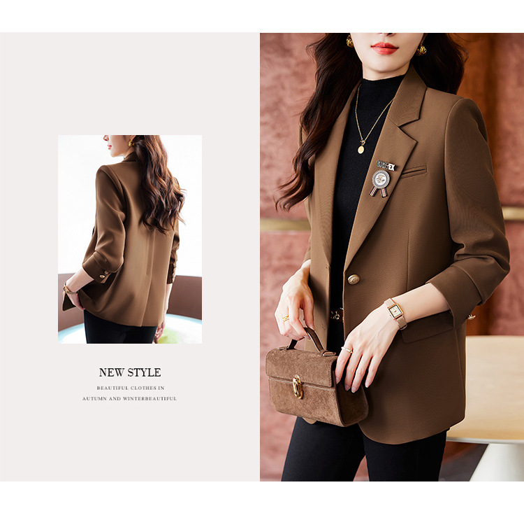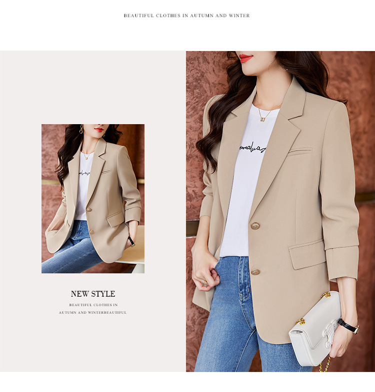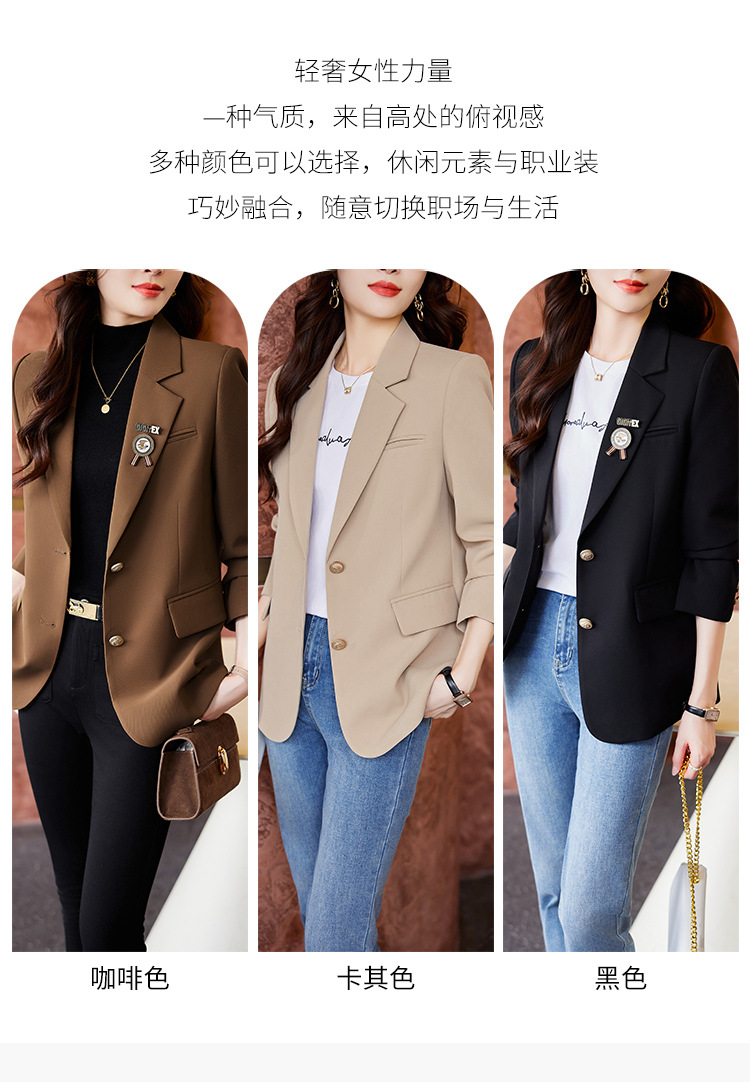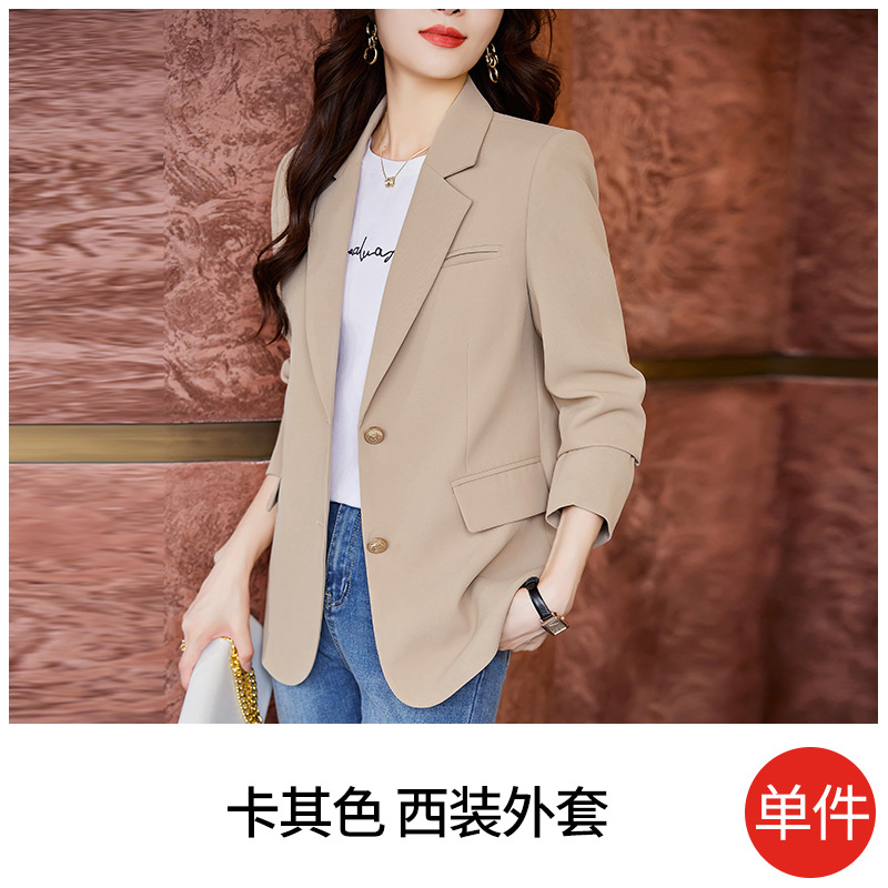 카키 스몰 세트 재킷 여성의 봄과 가을 2023 새로운 스타일 작은 우아한 캐주얼 슬림 핏 슬림 핏 세트 탑스토어 가기