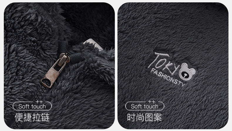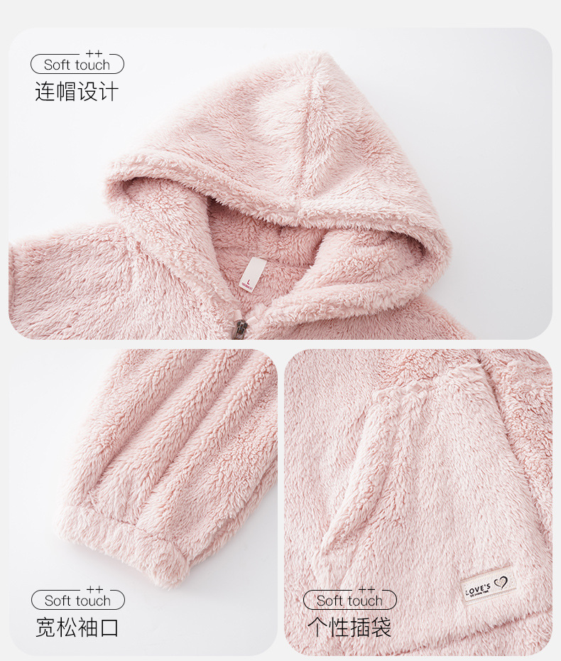 긴털 커플 잠옷 여성용 겨울용 플러스 벨벳 두꺼운 세트 캐주얼 지퍼 후드 외출 가능 남성용 홈웨어 세트스토어 가기