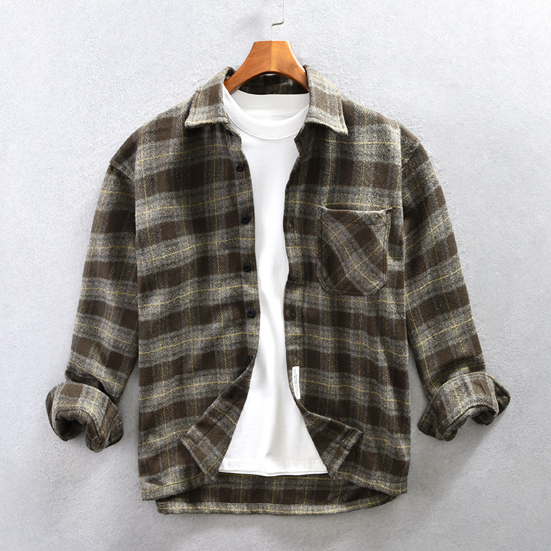 Z956 남성 격자 무늬 캐주얼 셔츠 코트 머리카락 세대