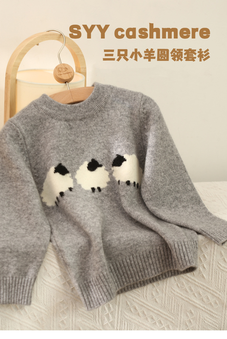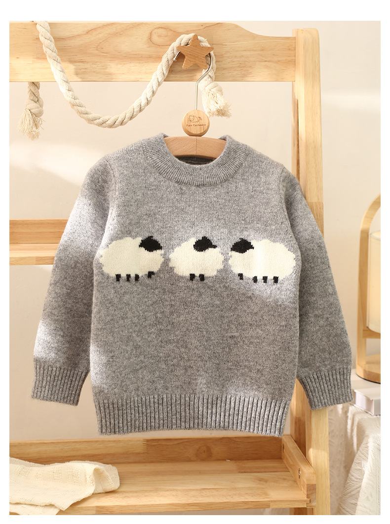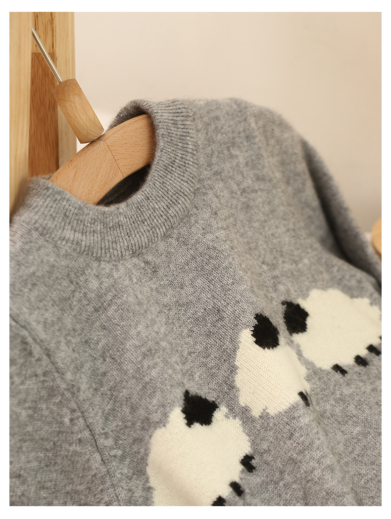 양과 양을 세는 세 마리의 어린 양 만화 자카드 어린이 캐시미어 스웨터 소년 가을과 겨울 스웨터 외국 스타일스토어 가기