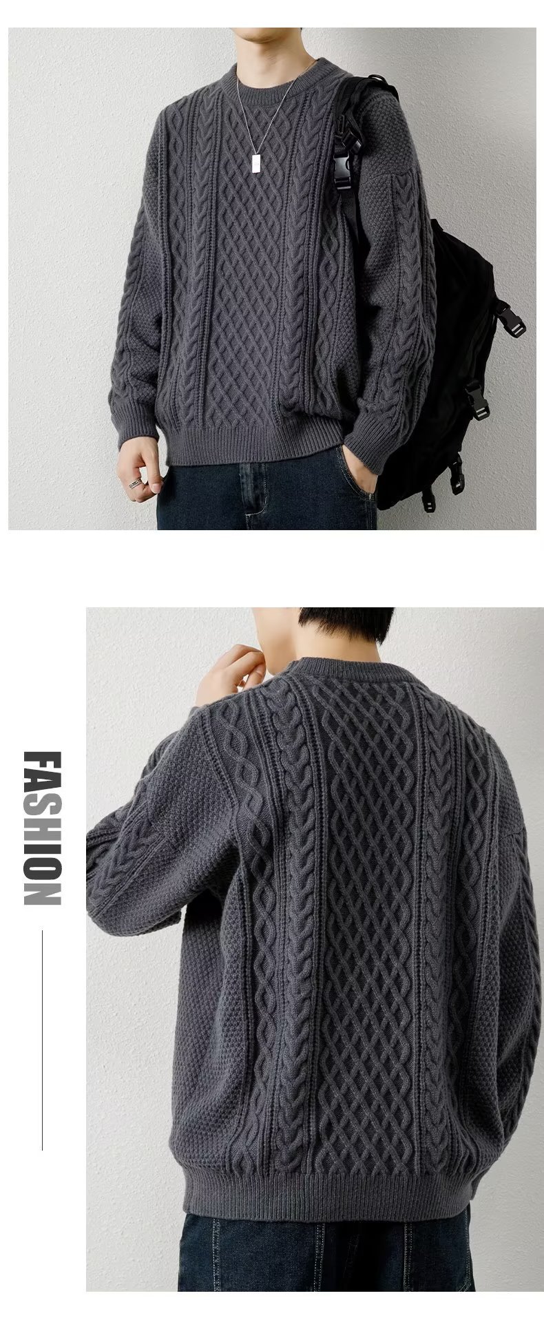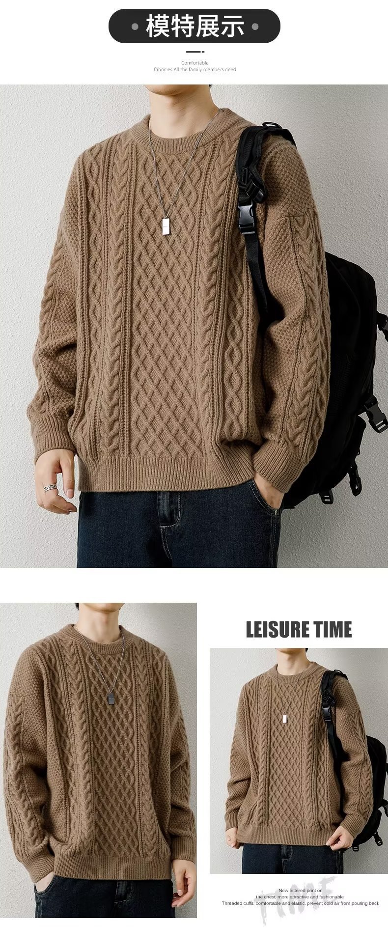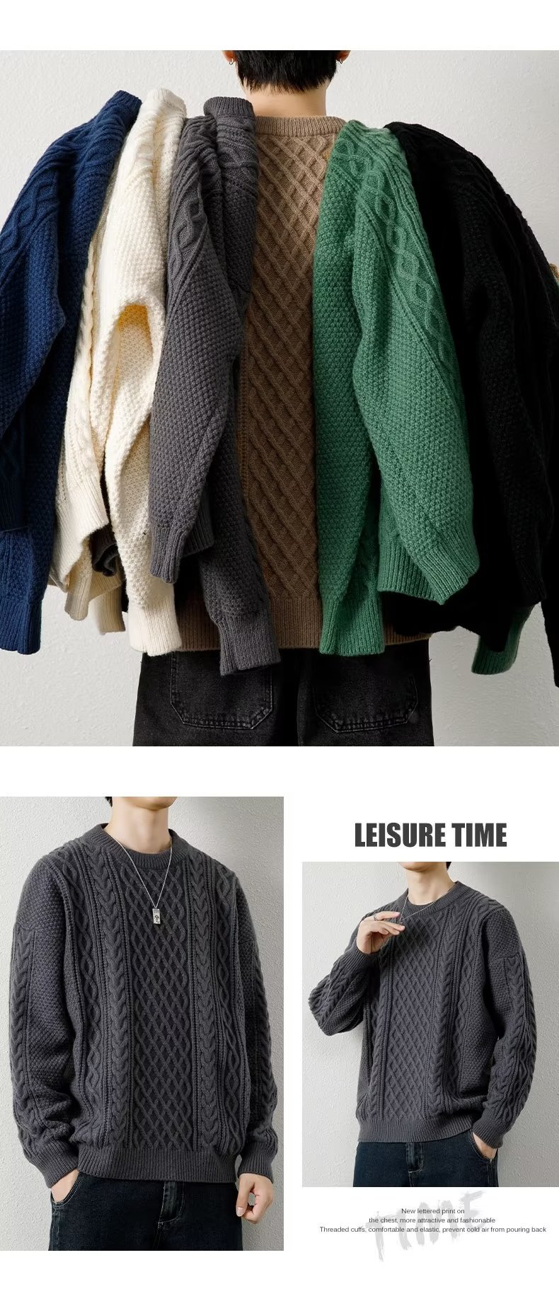 트위스트 스웨터 남성용 라운드 넥 느슨한 패션 브랜드 가을과 겨울 빈티지 스웨터 청소년을위한 중학교 스웨터스토어 가기