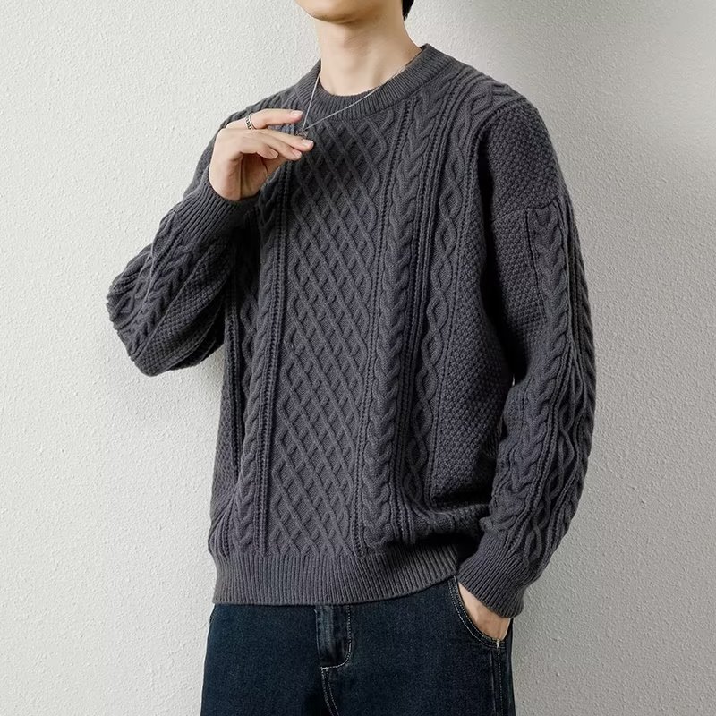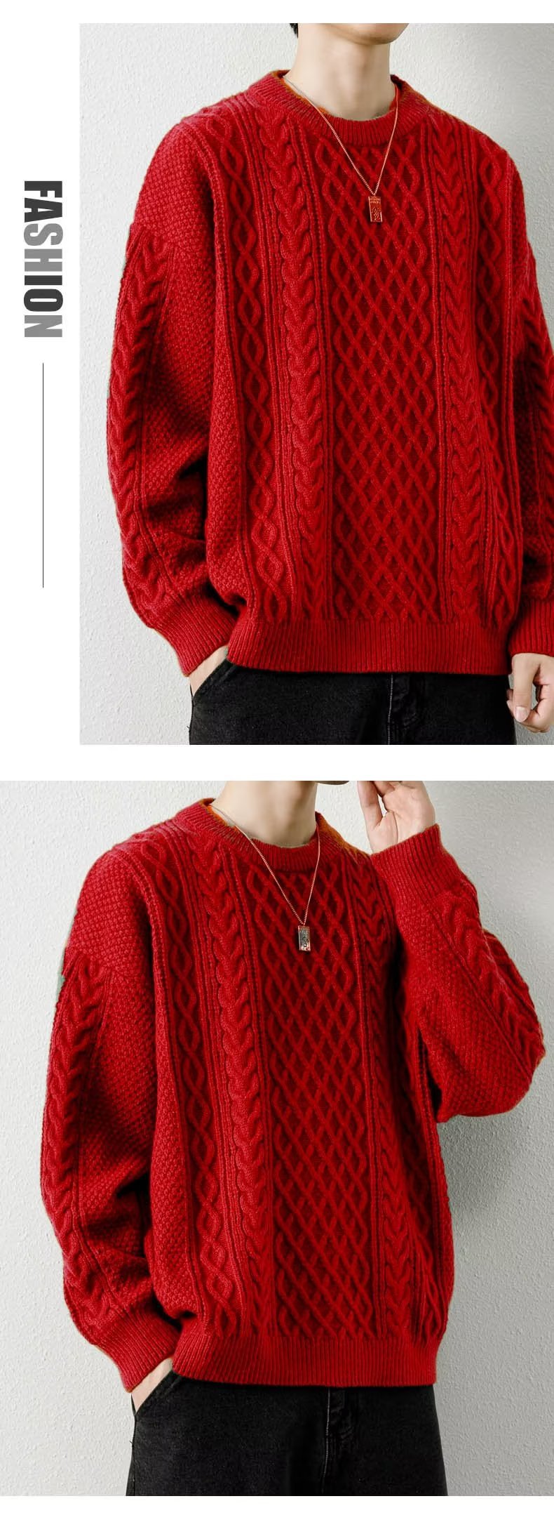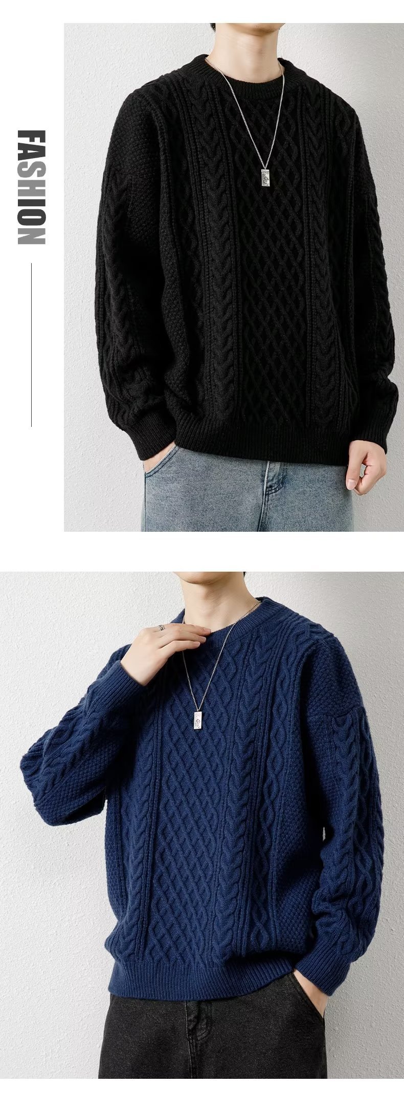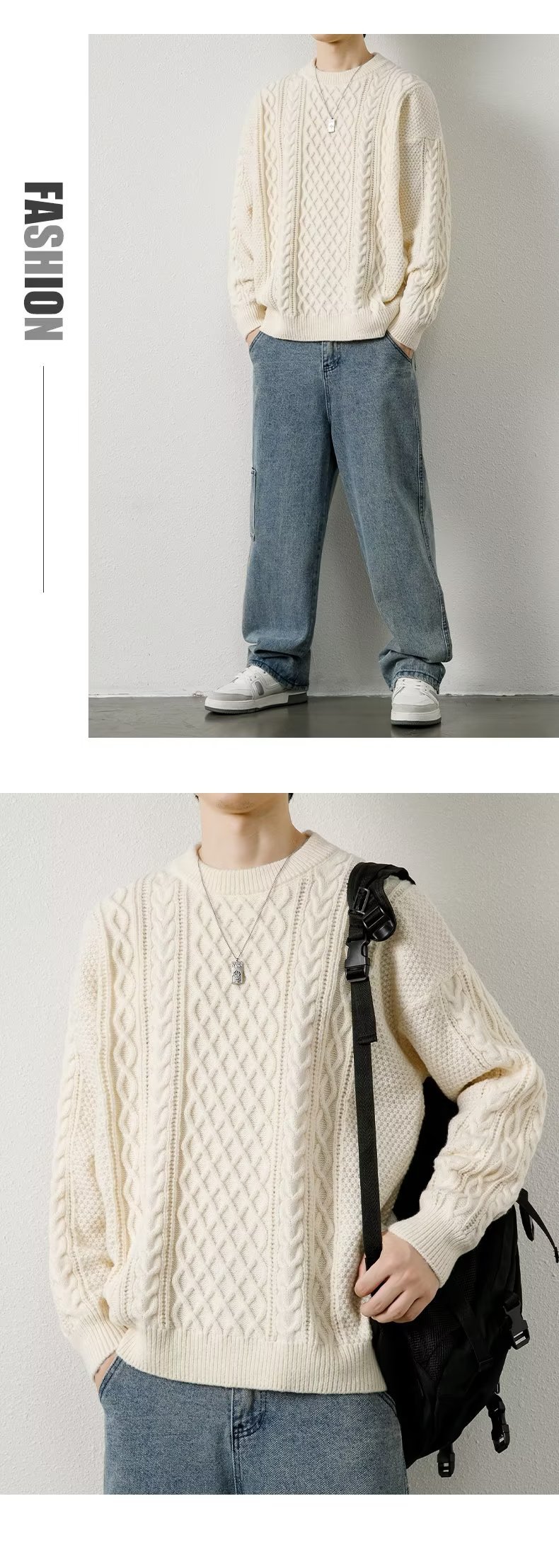 트위스트 스웨터 남성용 라운드 넥 느슨한 패션 브랜드 가을과 겨울 빈티지 스웨터 청소년을위한 중학교 스웨터스토어 가기