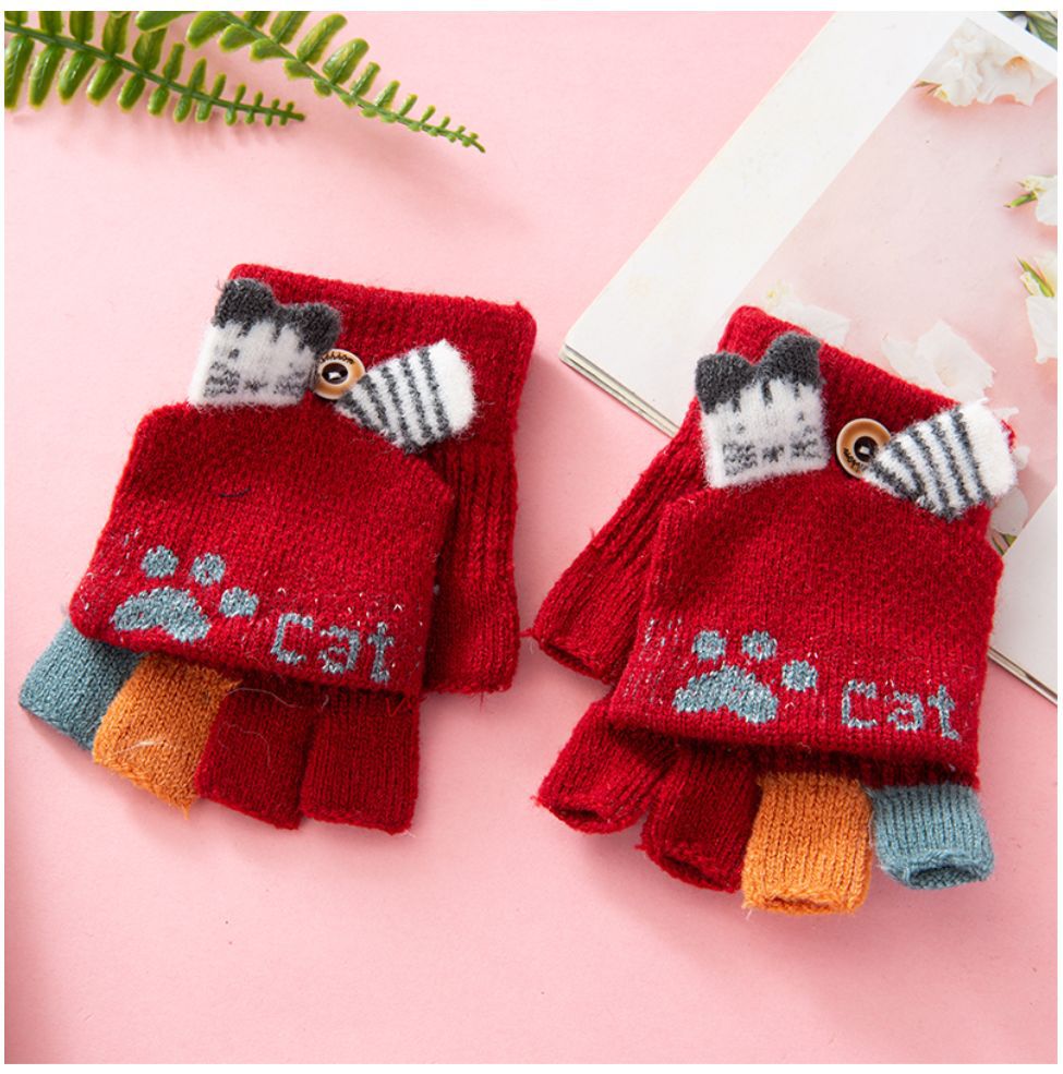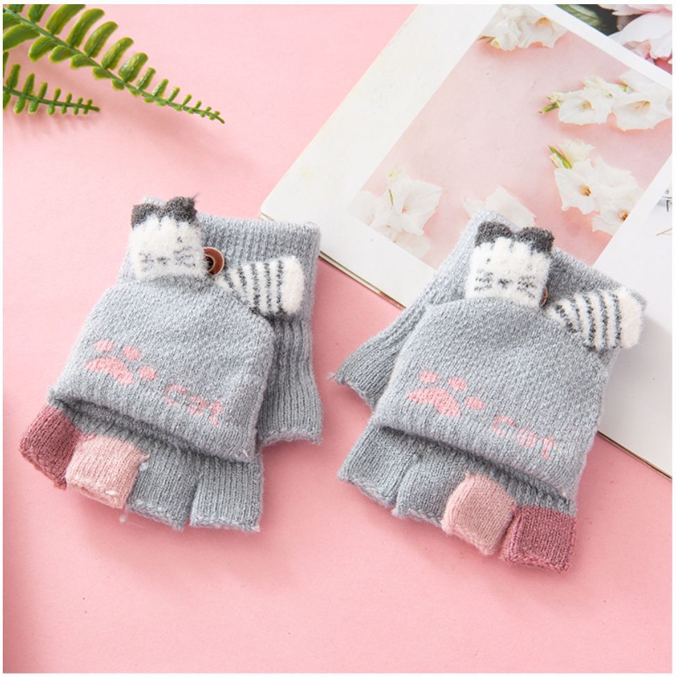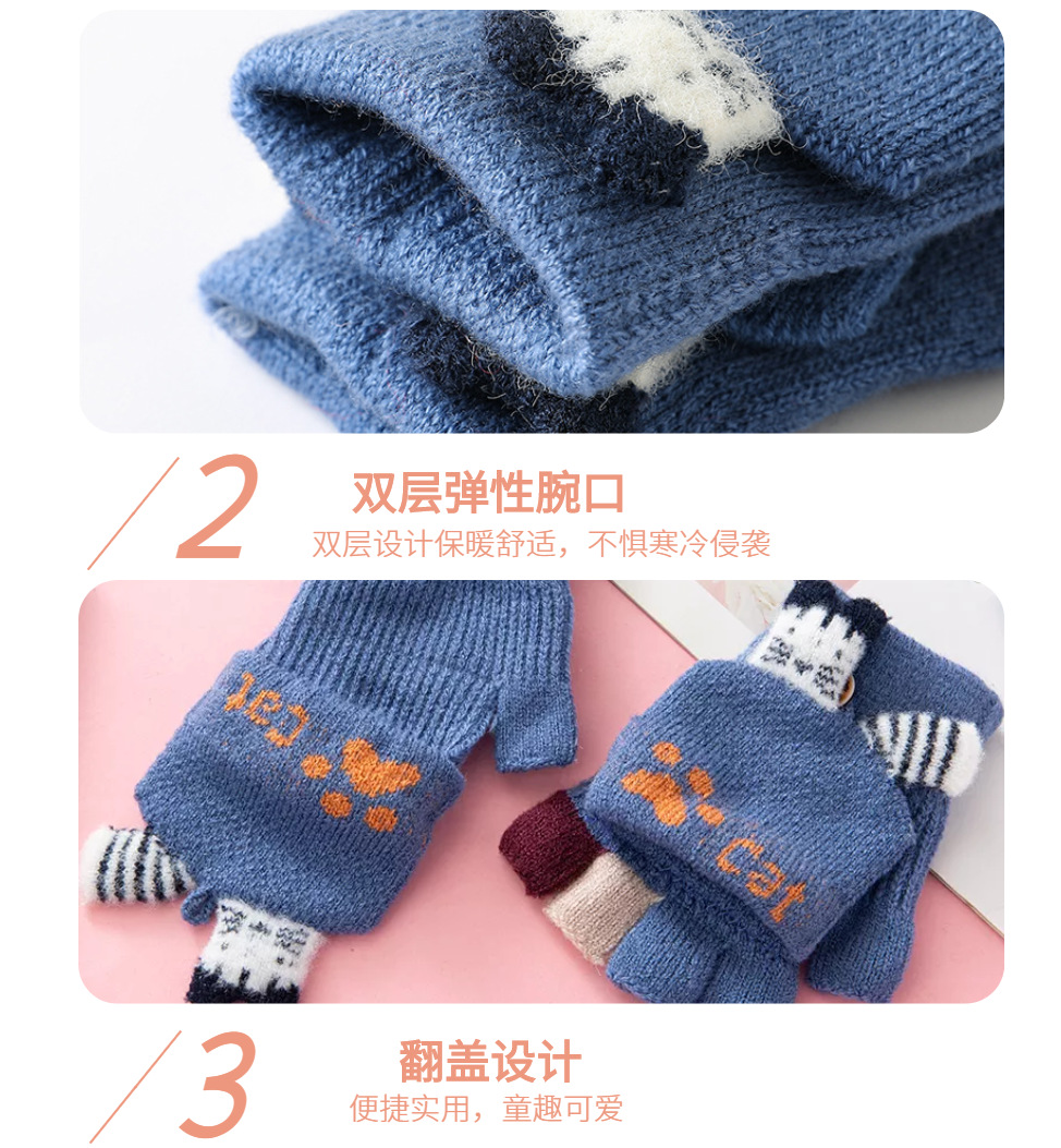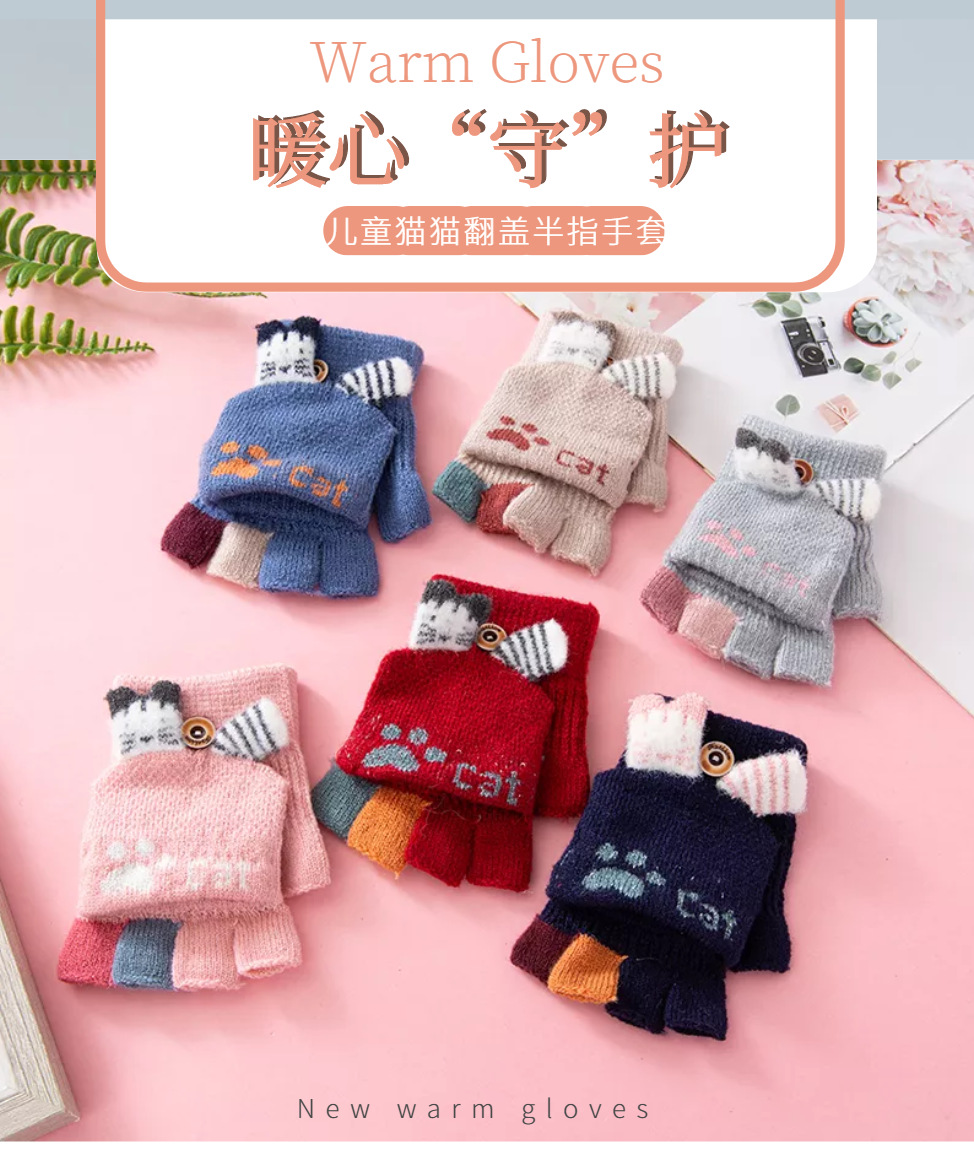 어린이 장갑 여성용 겨울 방한 따뜻한 플립 온 반 손가락 장갑 만화 귀여운 초등학생 쓰기 니트 장갑스토어 가기