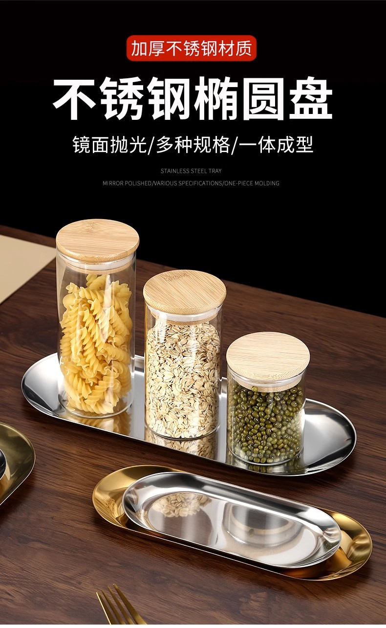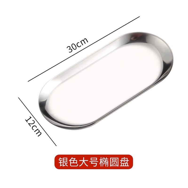 타원형 한국식 스테인리스 접시 바베큐 접시 스낵 접시 데니어 모양의 트레이 접시 한국 요리 식기스토어 가기