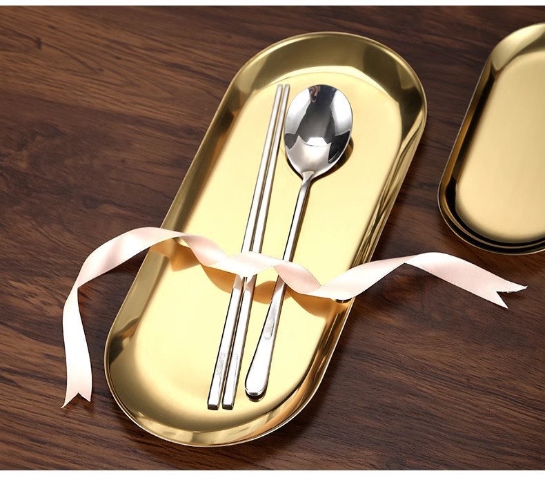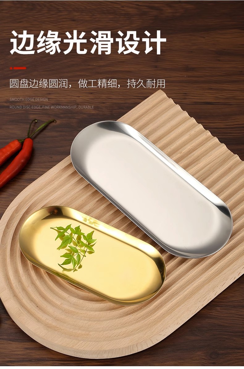 타원형 한국식 스테인리스 접시 바베큐 접시 스낵 접시 데니어 모양의 트레이 접시 한국 요리 식기