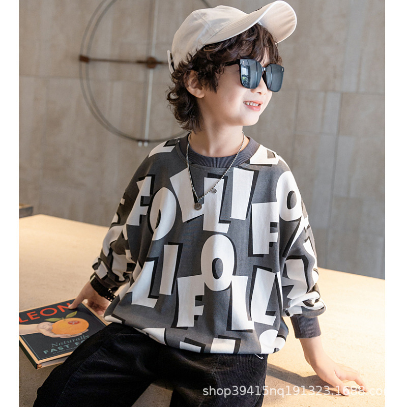 2022 어린이 소년 가을 원피스 스웨터 어린이 서양식 라운드 넥 풀오버 캐주얼 모든 매치 탑 봄과 가을 새로운 패션스토어 가기