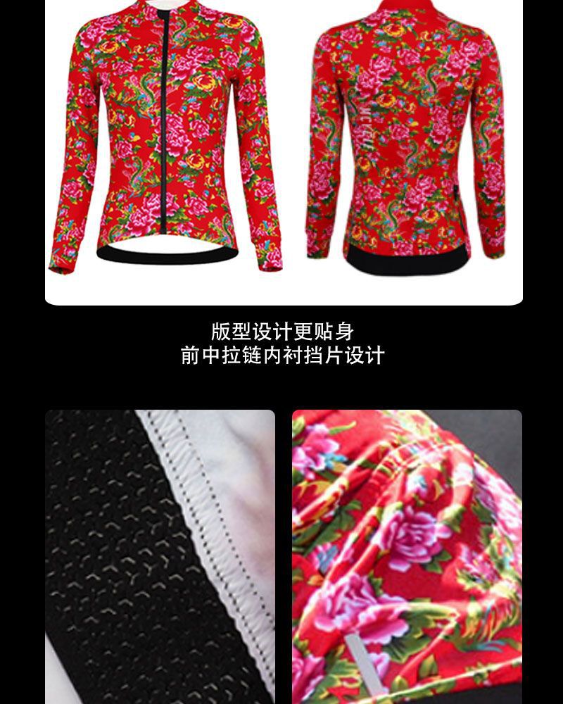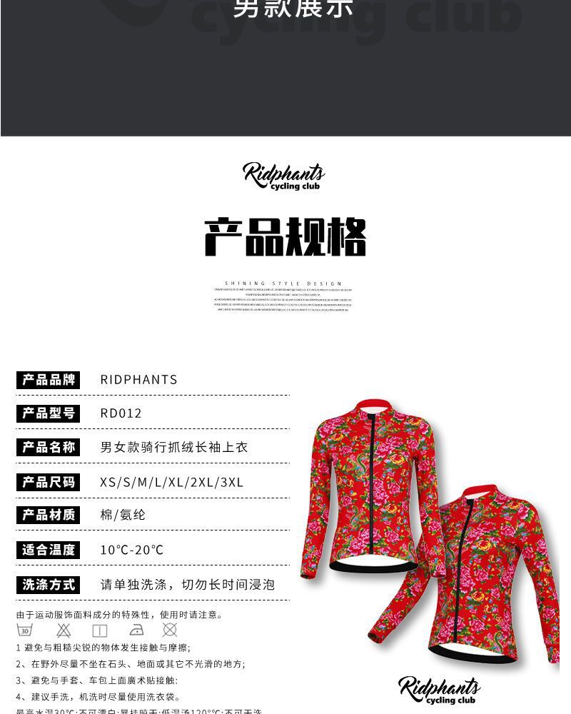 Ridphants 양털 사이클링 의류 긴팔 남녀 가을과 겨울 꽃 면 패딩 재킷 북동쪽 자전거 의류 자전거 보온