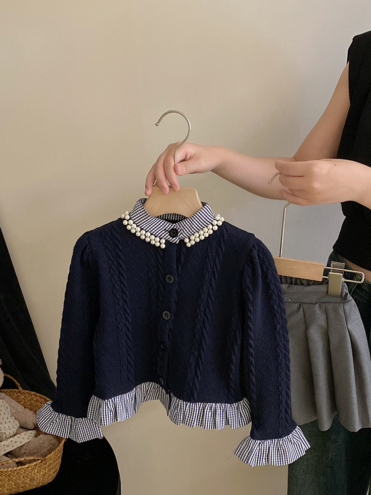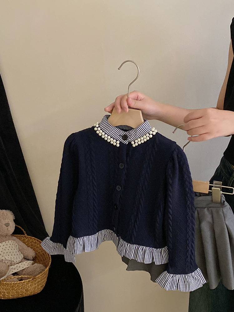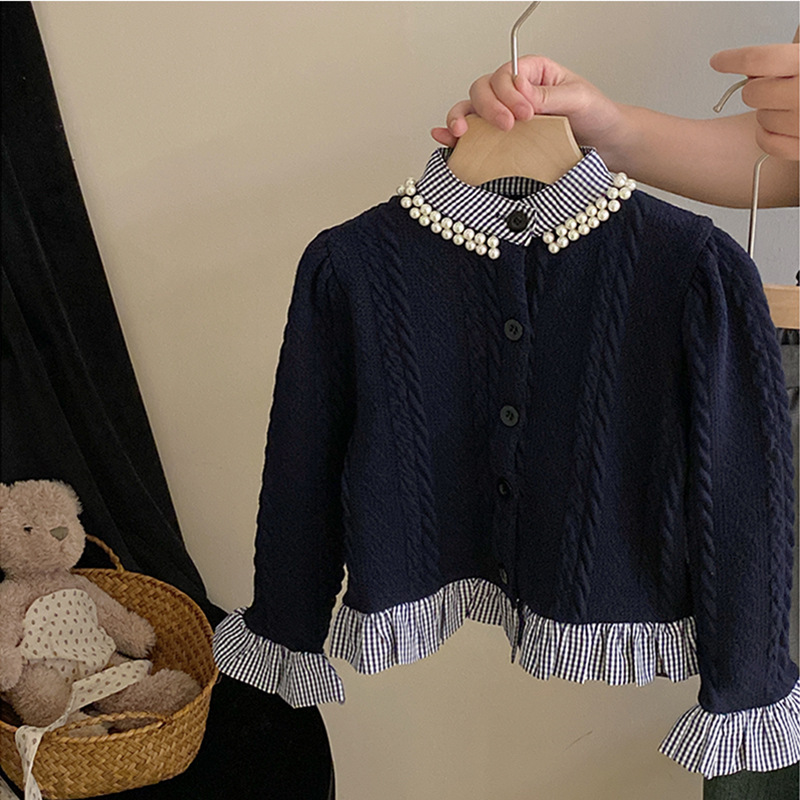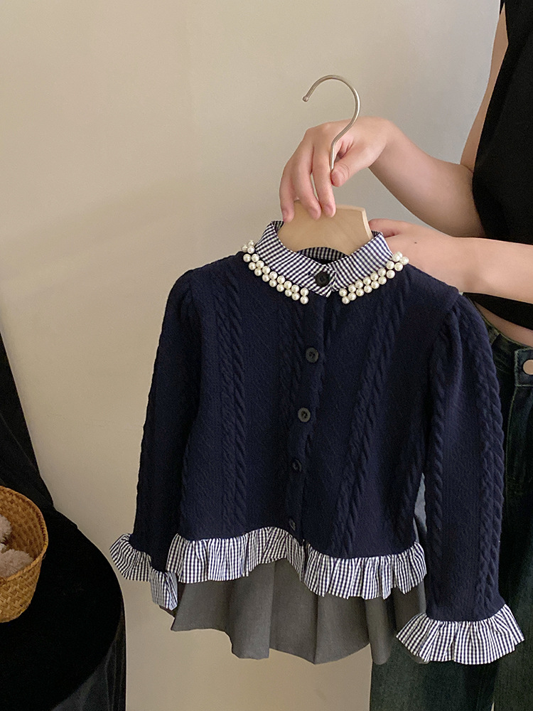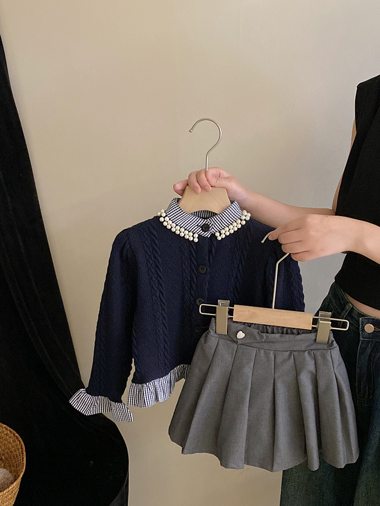 소녀 가을 카디건 스웨터 세트 2023 새로운 소녀 투피스 어린이 대학 스타일 주름 치마 아동 의류 유행스토어 가기