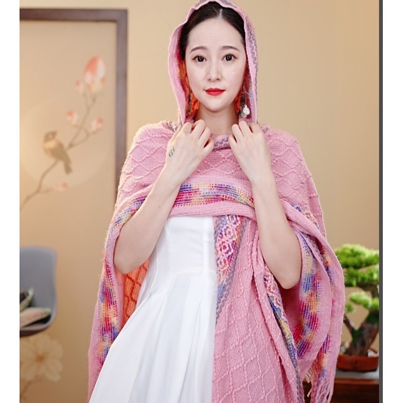 후드 에스닉 스타일 숄 다채로운 웨이브 니트웨어 티베트 윈난 여행 사진 망토 따뜻한 망토스토어 가기